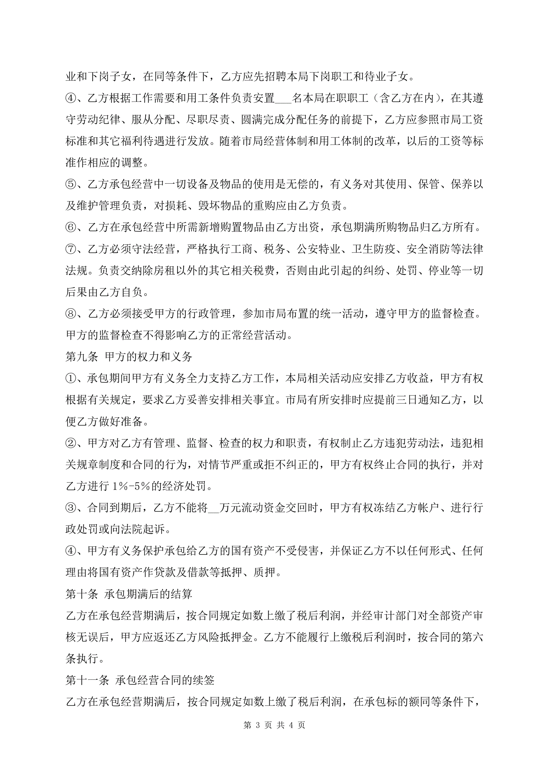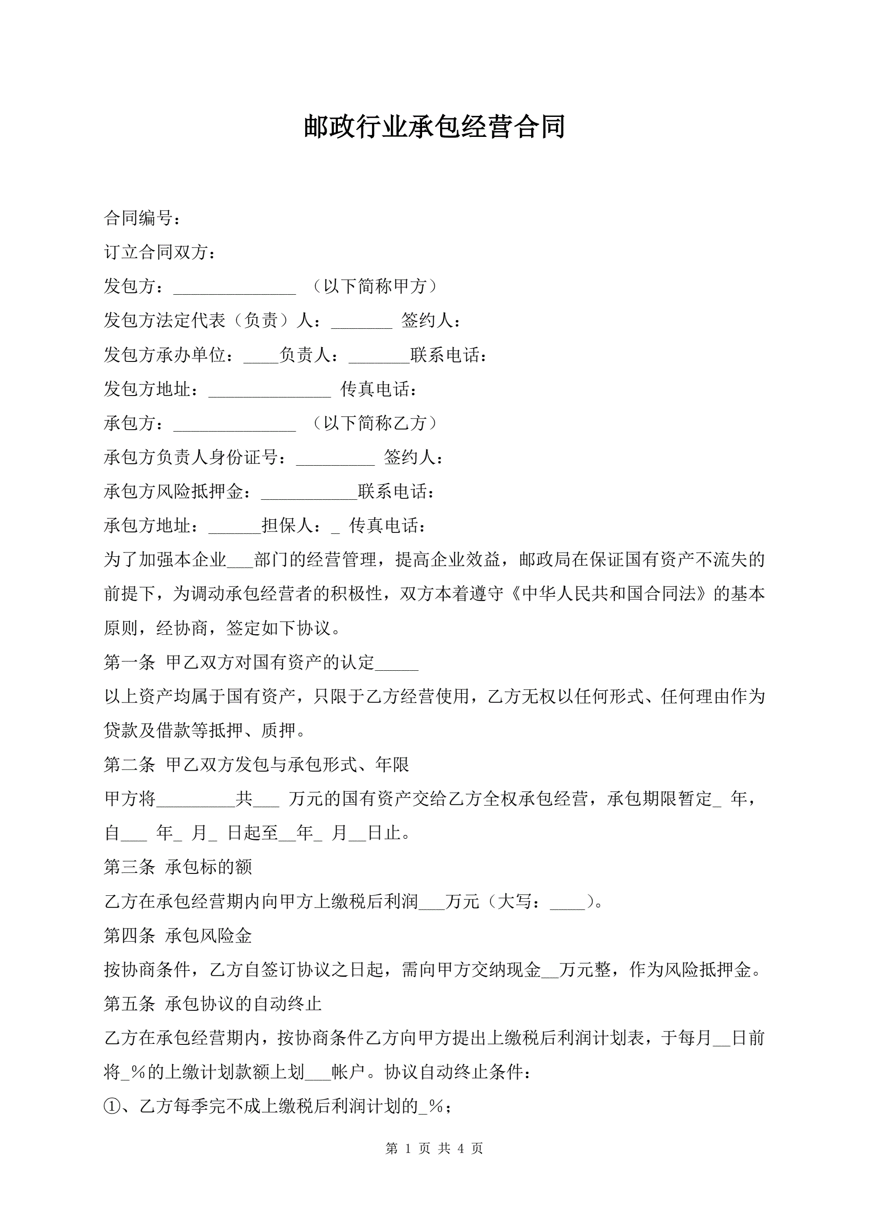 邮政行业承包经营合同