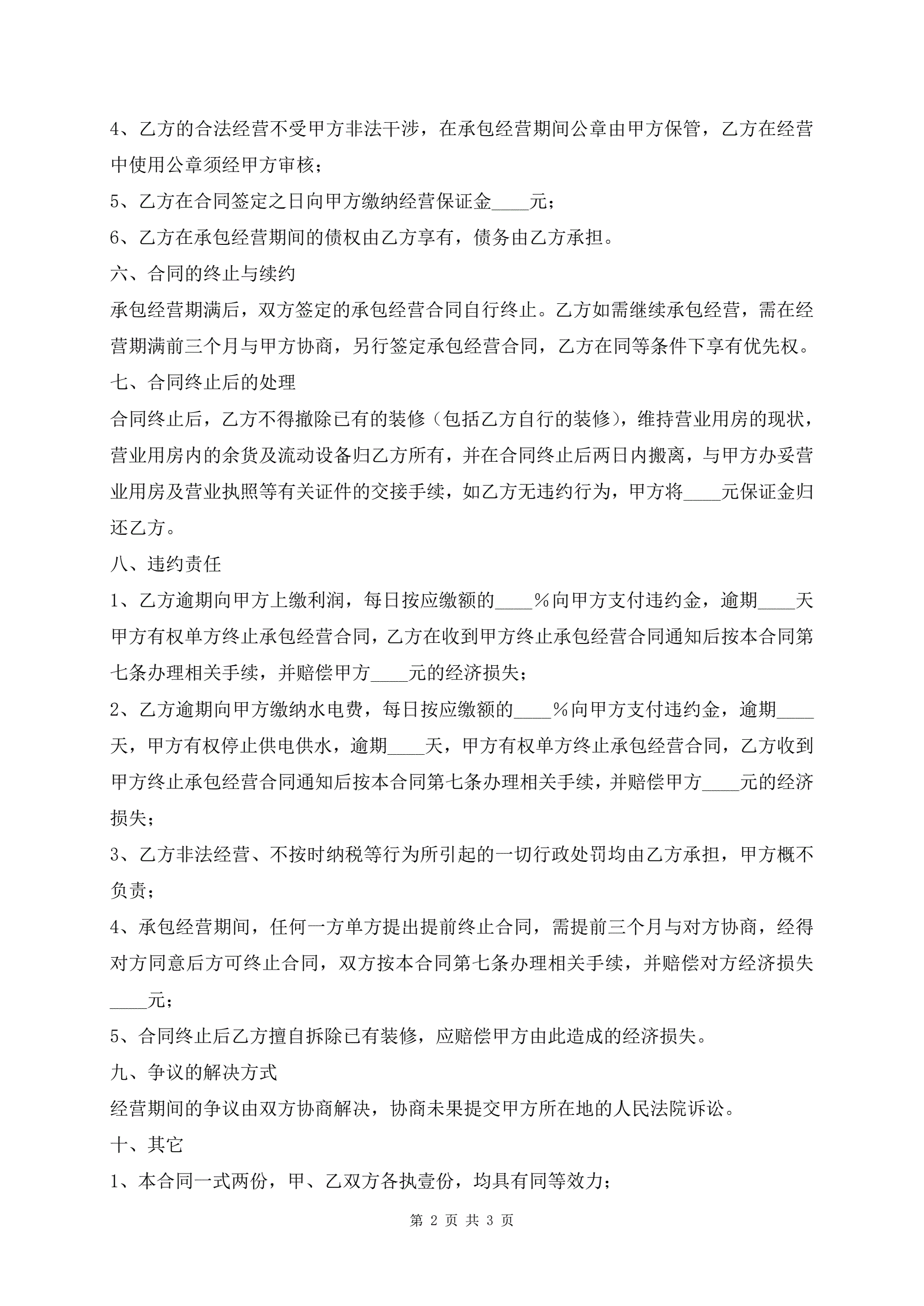 承包经营协议最新模板