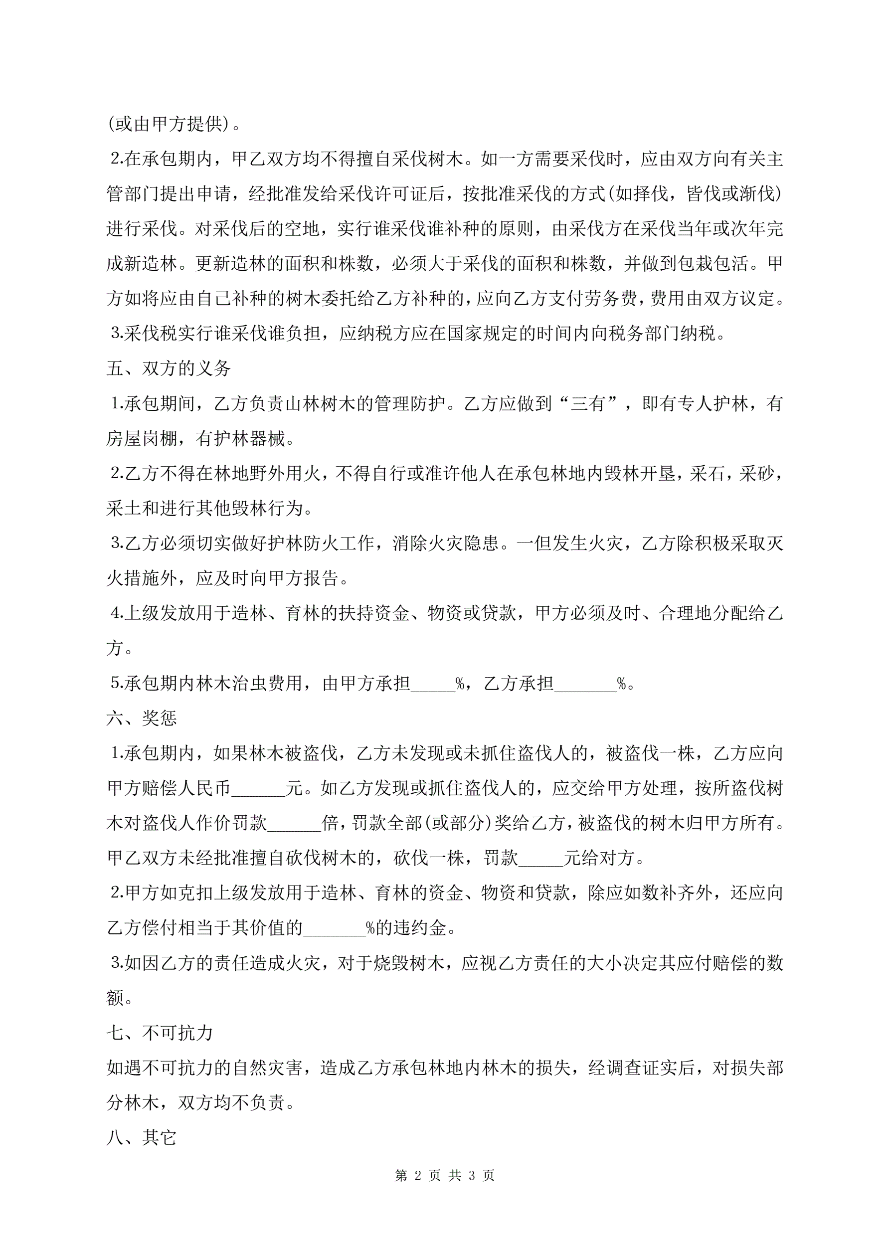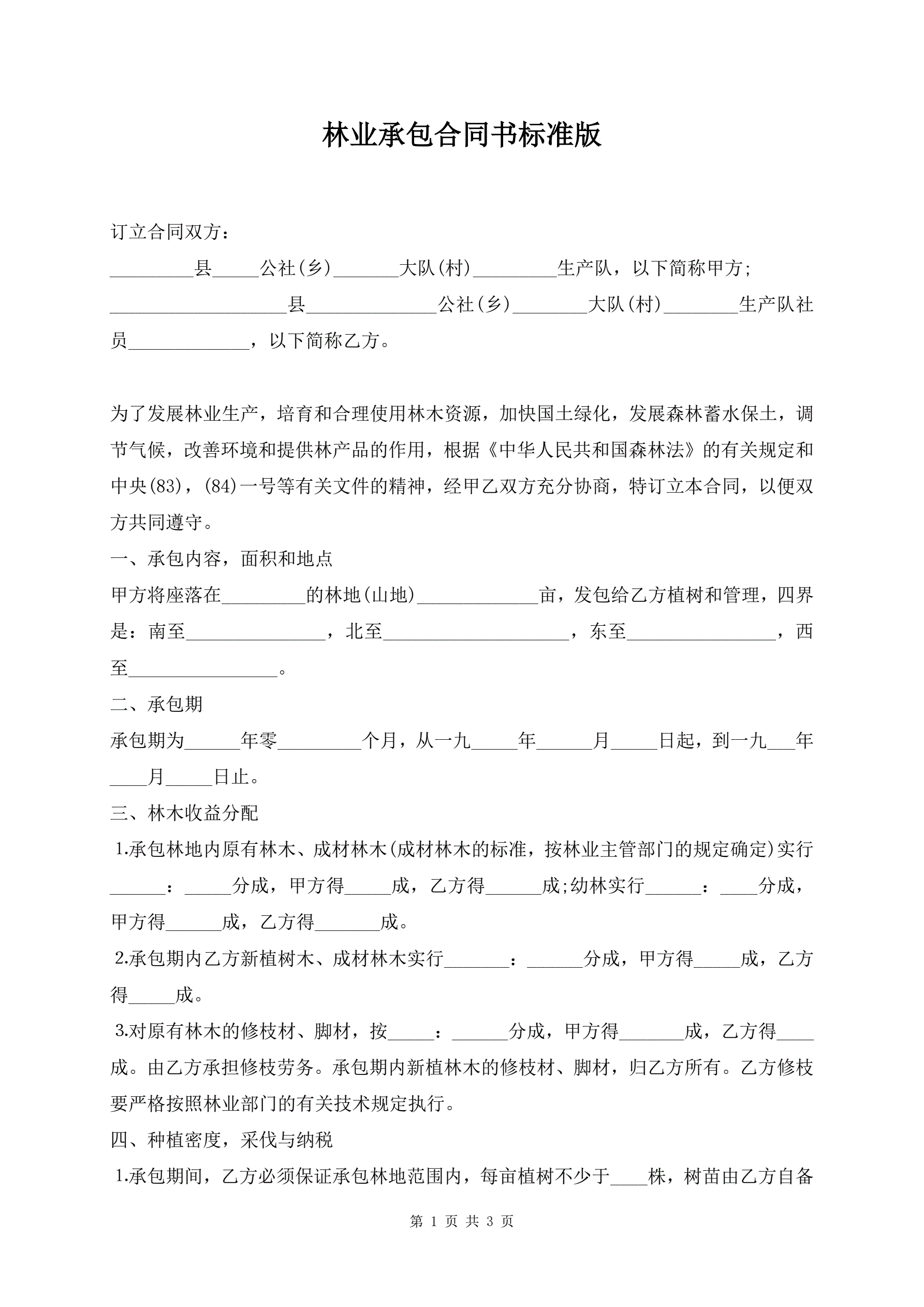 >林业承包合同书标准版