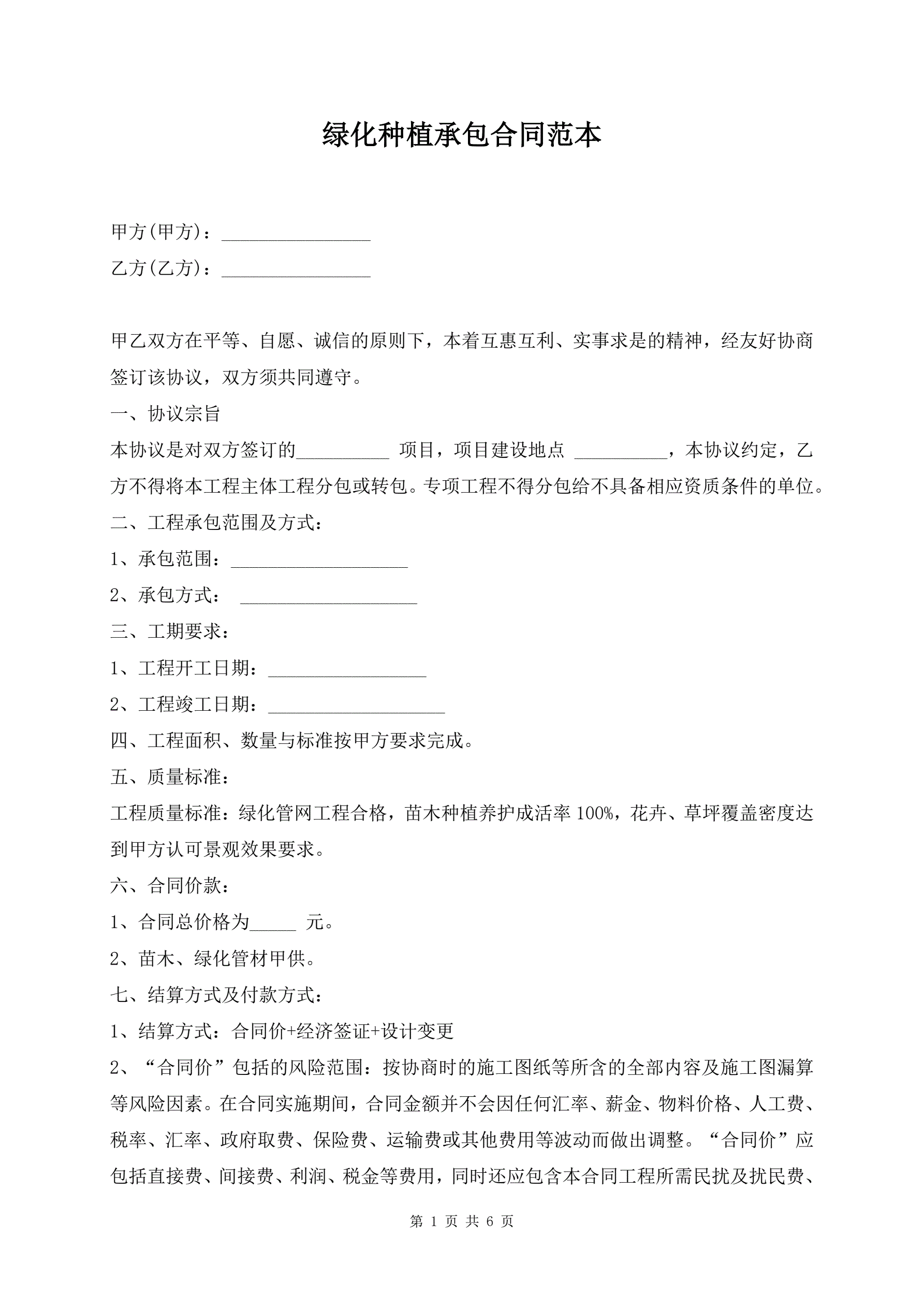 绿化种植承包合同范本
