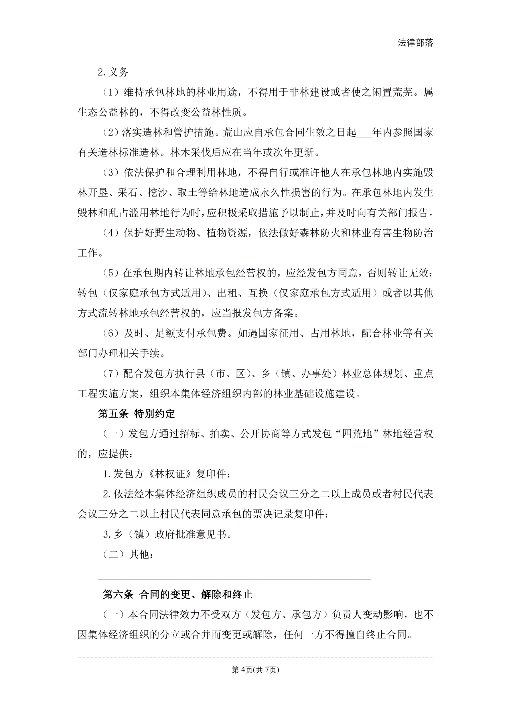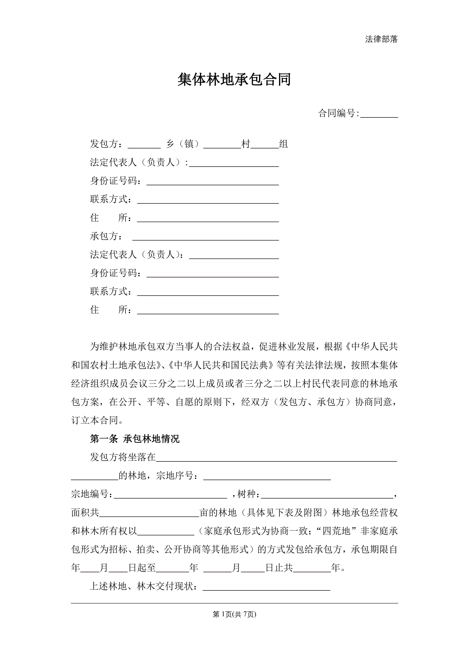 集体林地承包合同