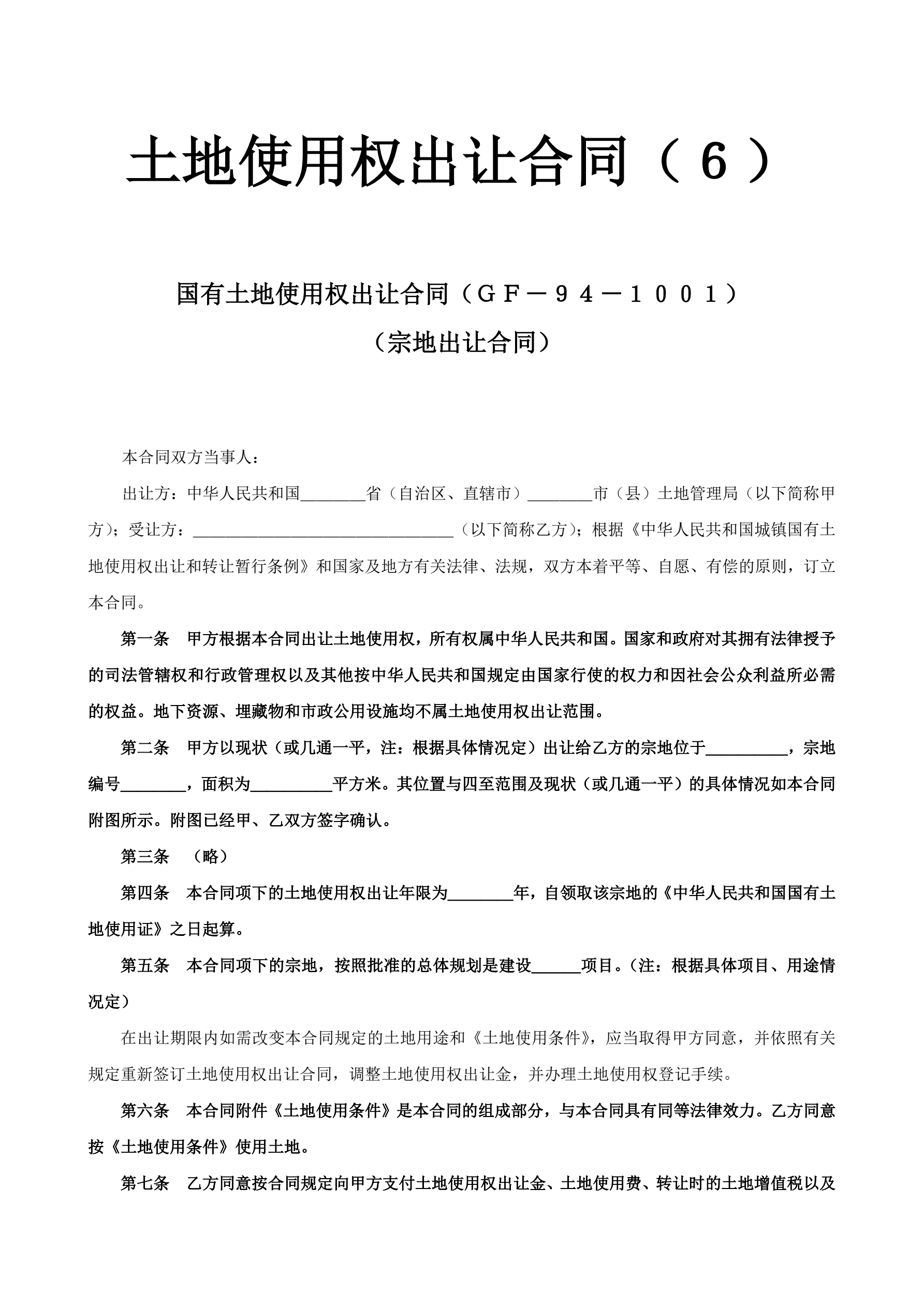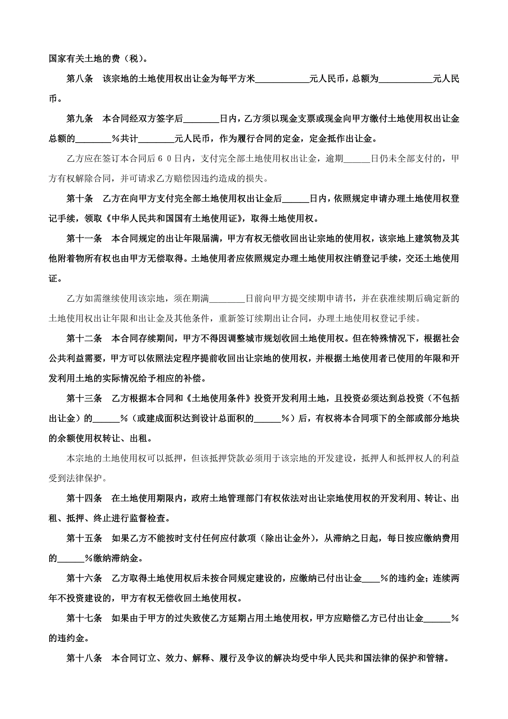 合同名称:土地使用权出让合同