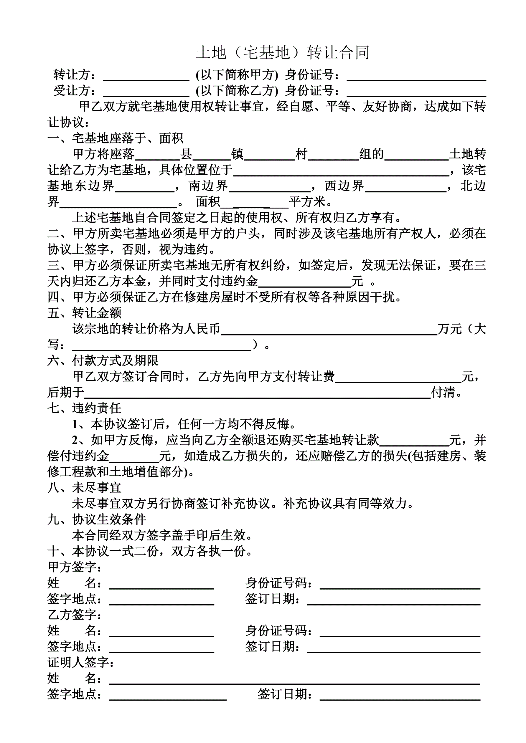 宅基地转让合同