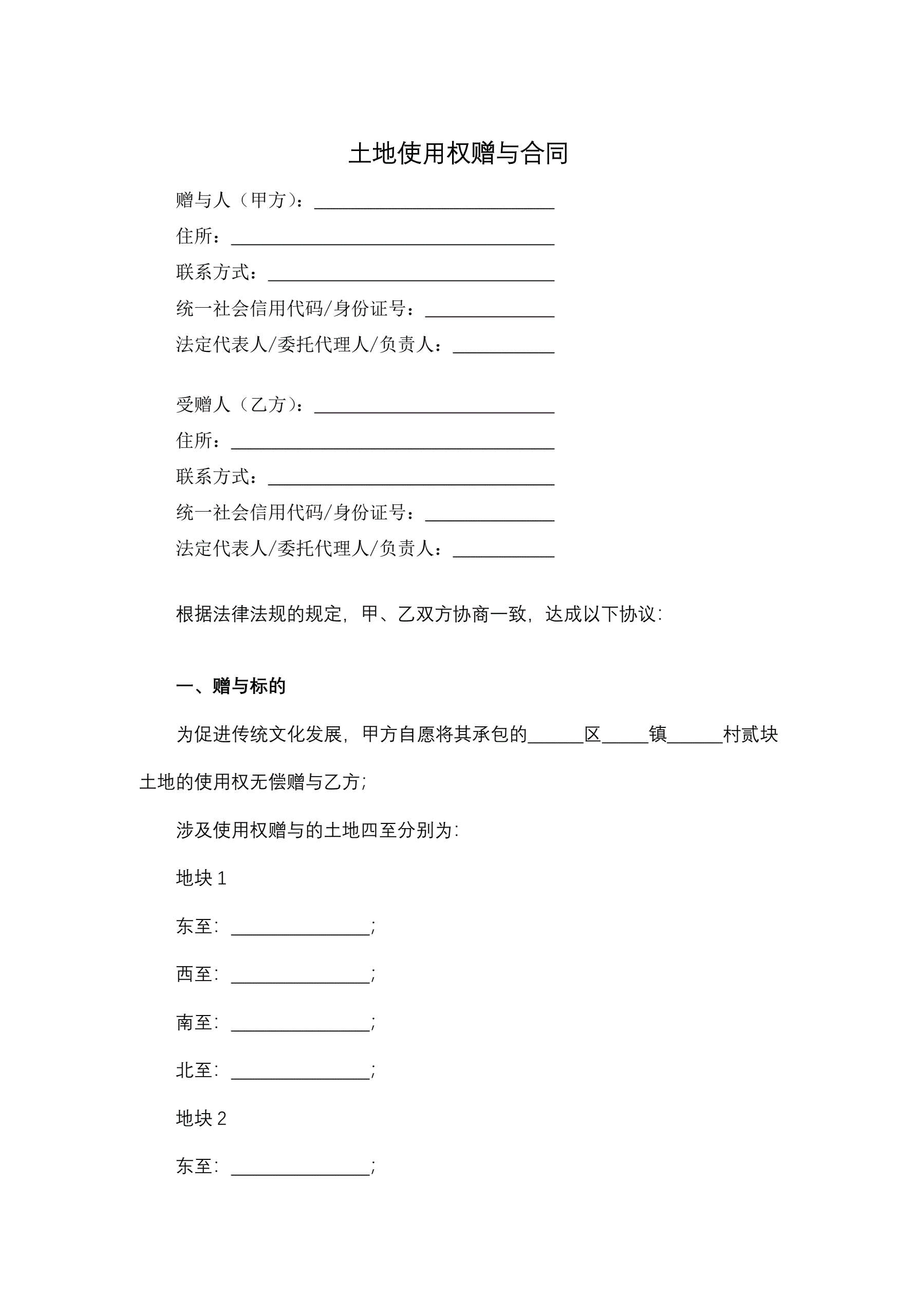 土地使用权赠与合同