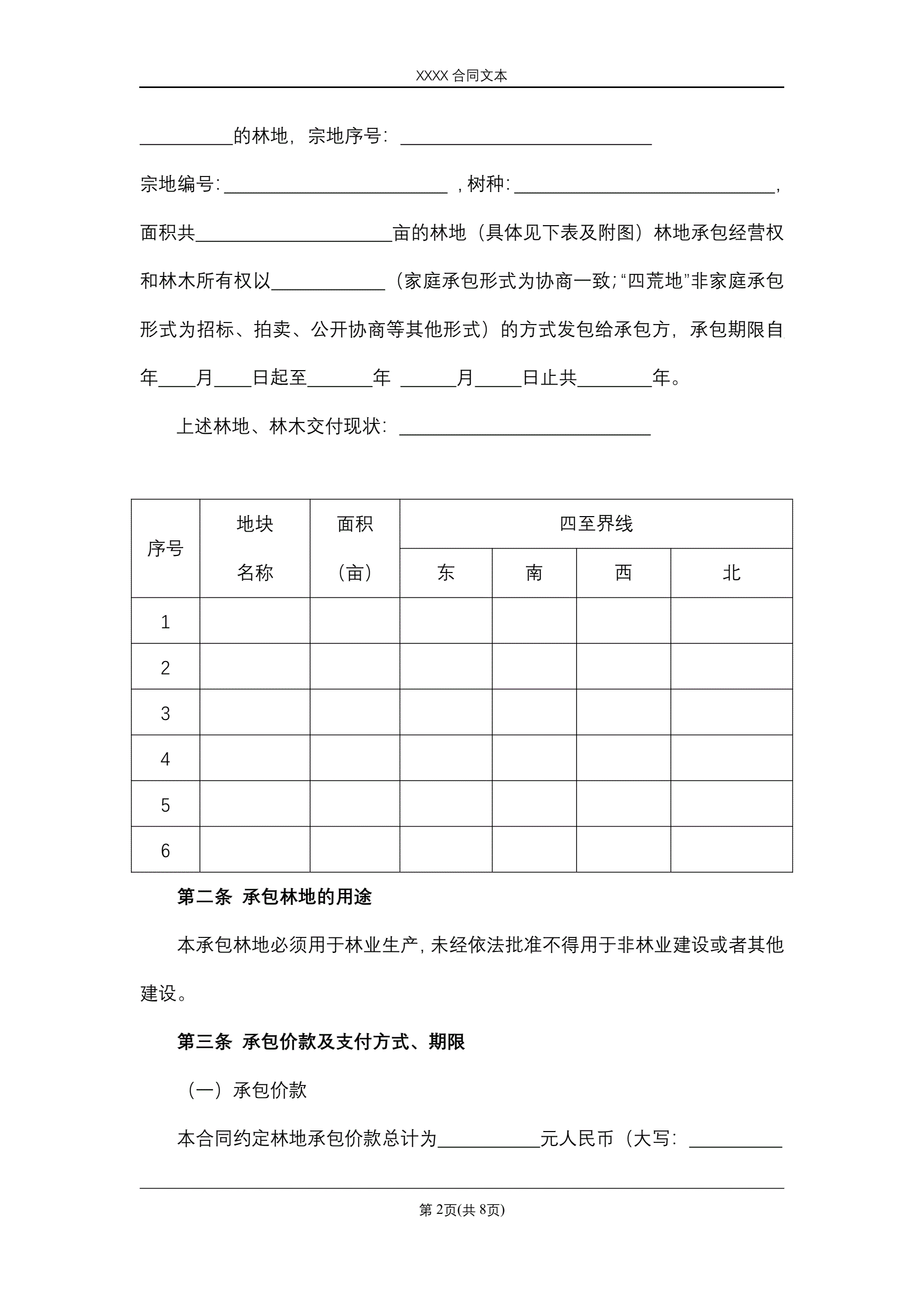 合同名称:集体林地承包合同
