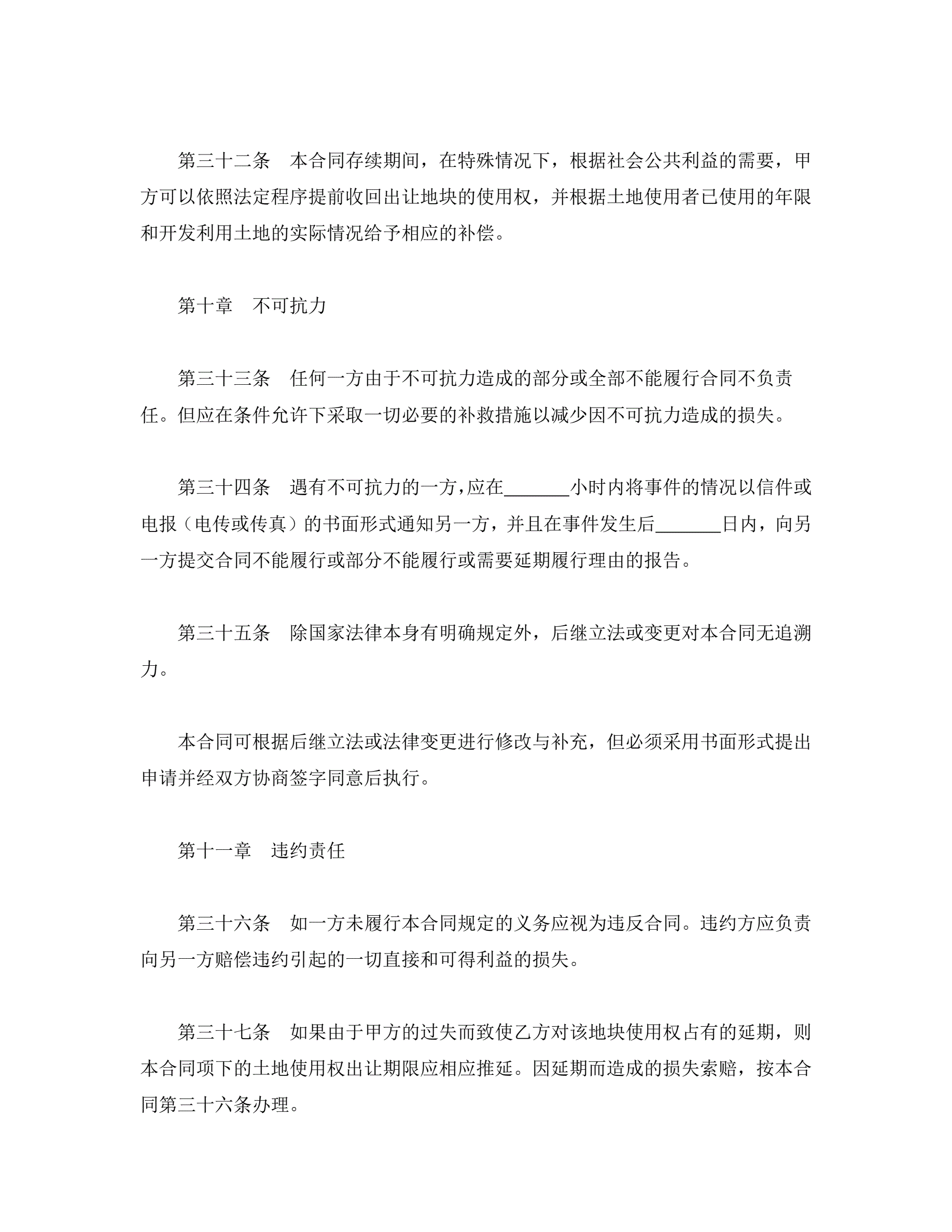 合同名称:土地使用权出让合同
