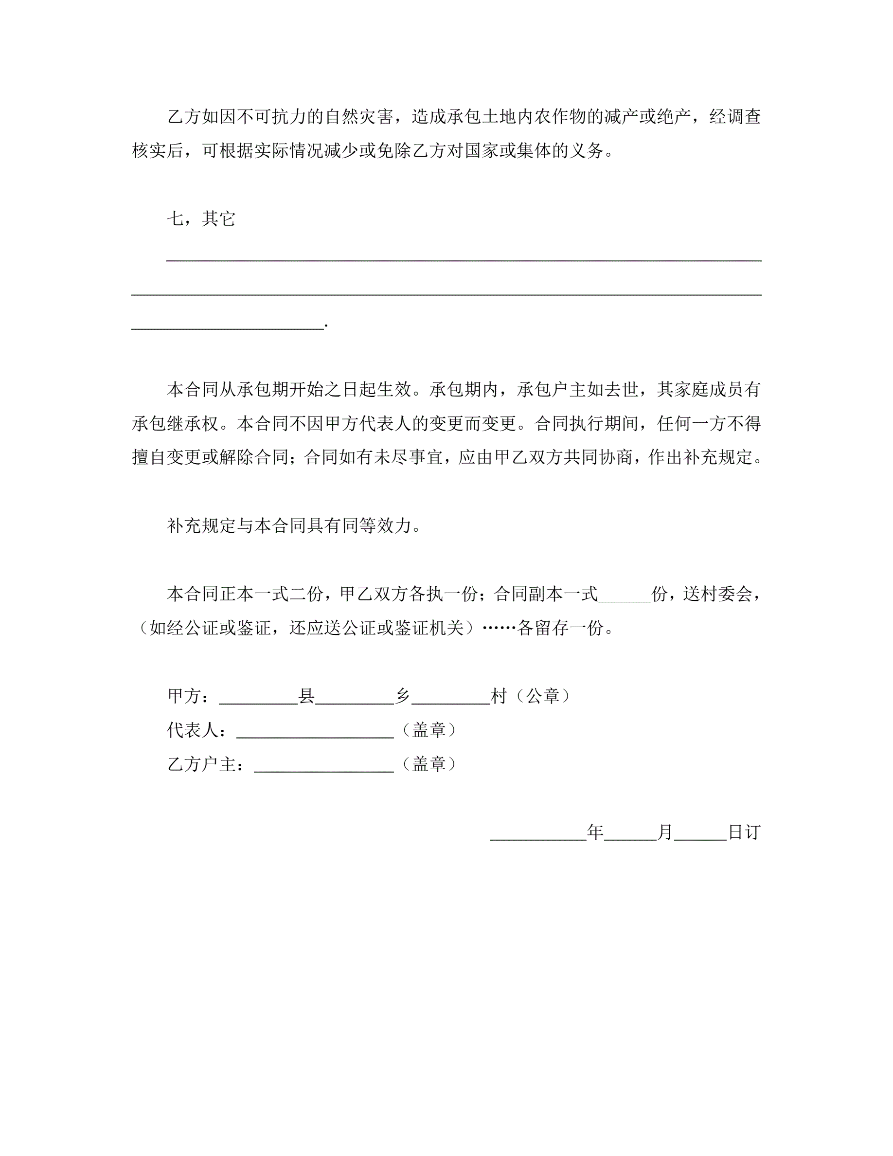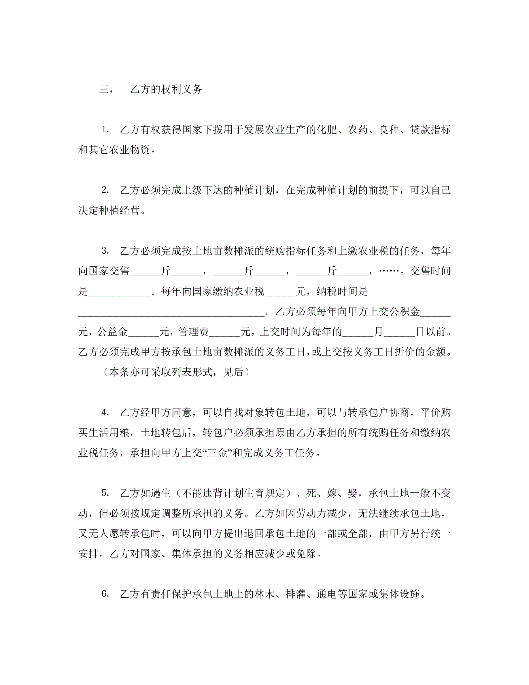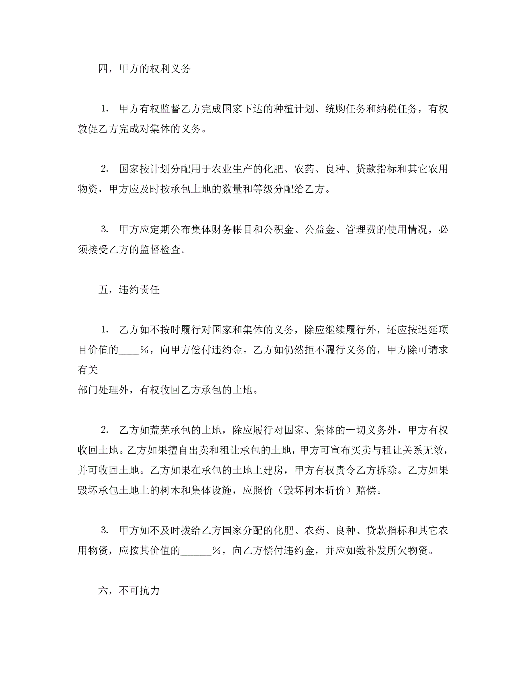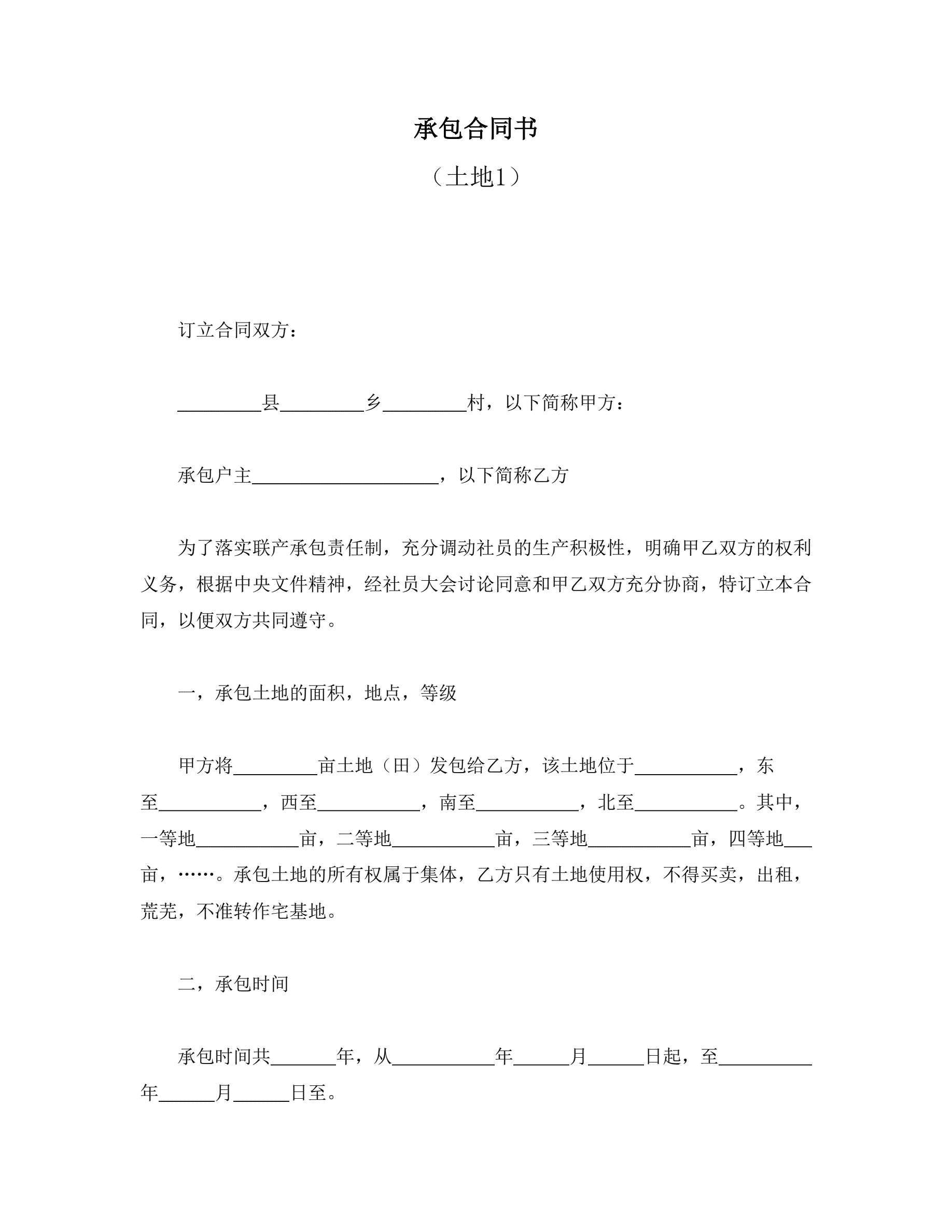 >承包合同书(土地1)