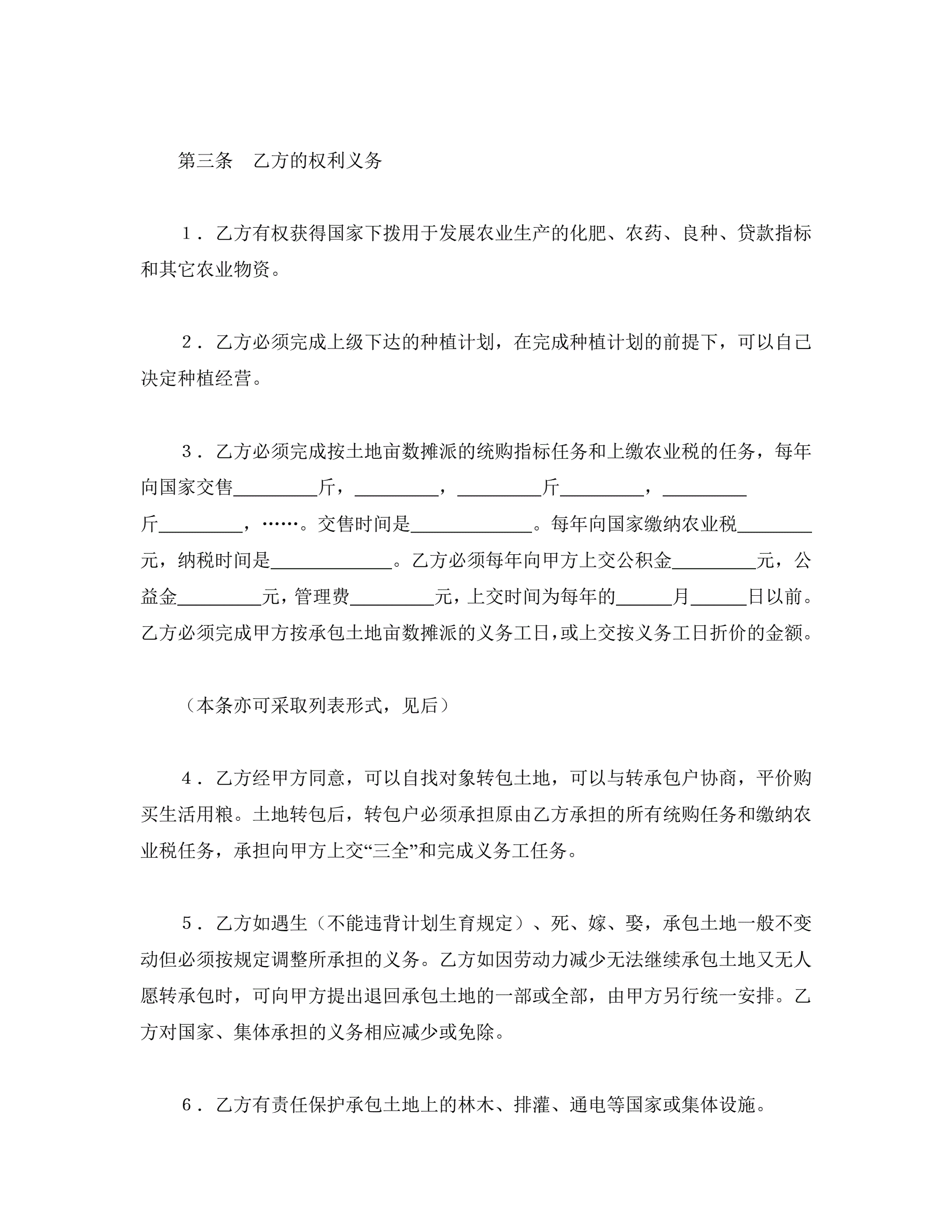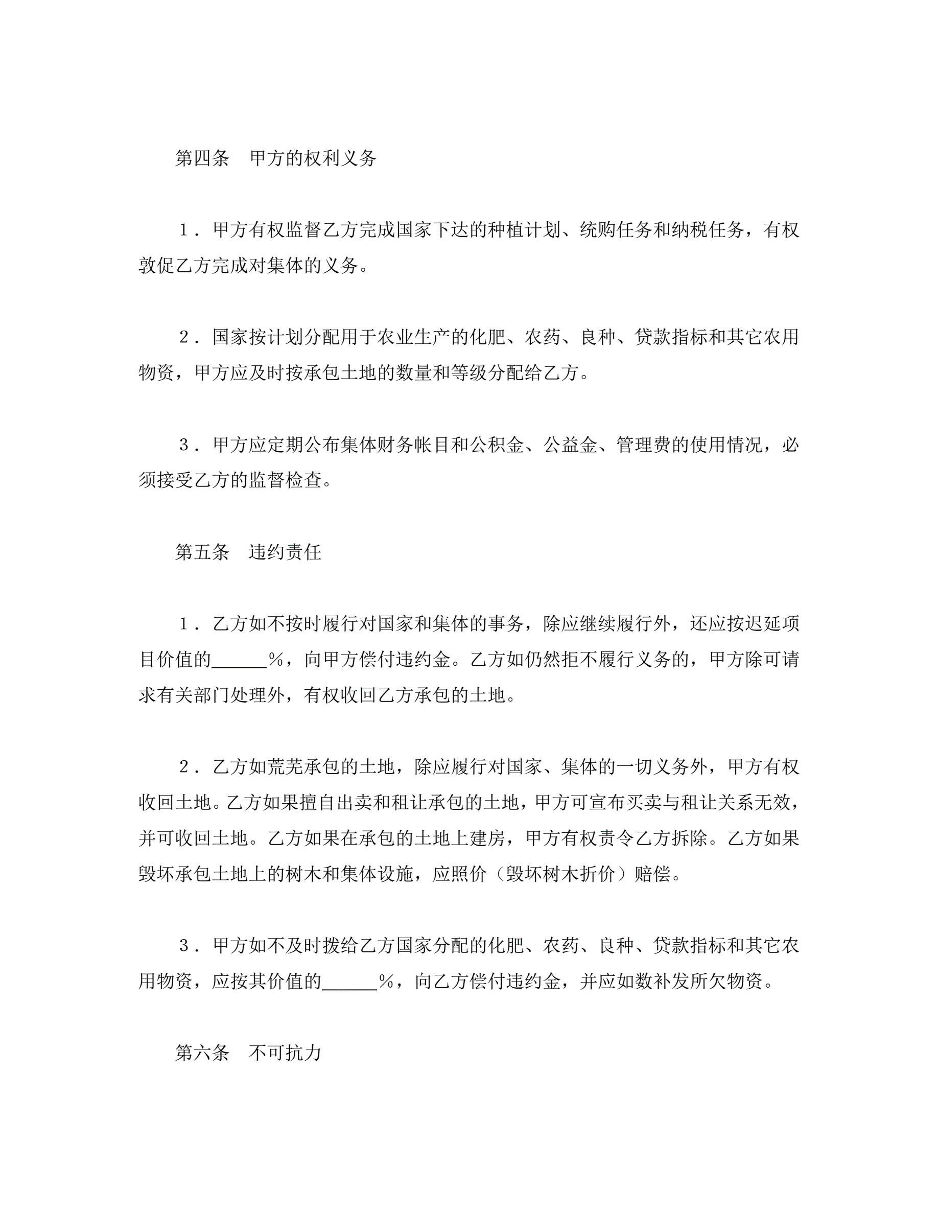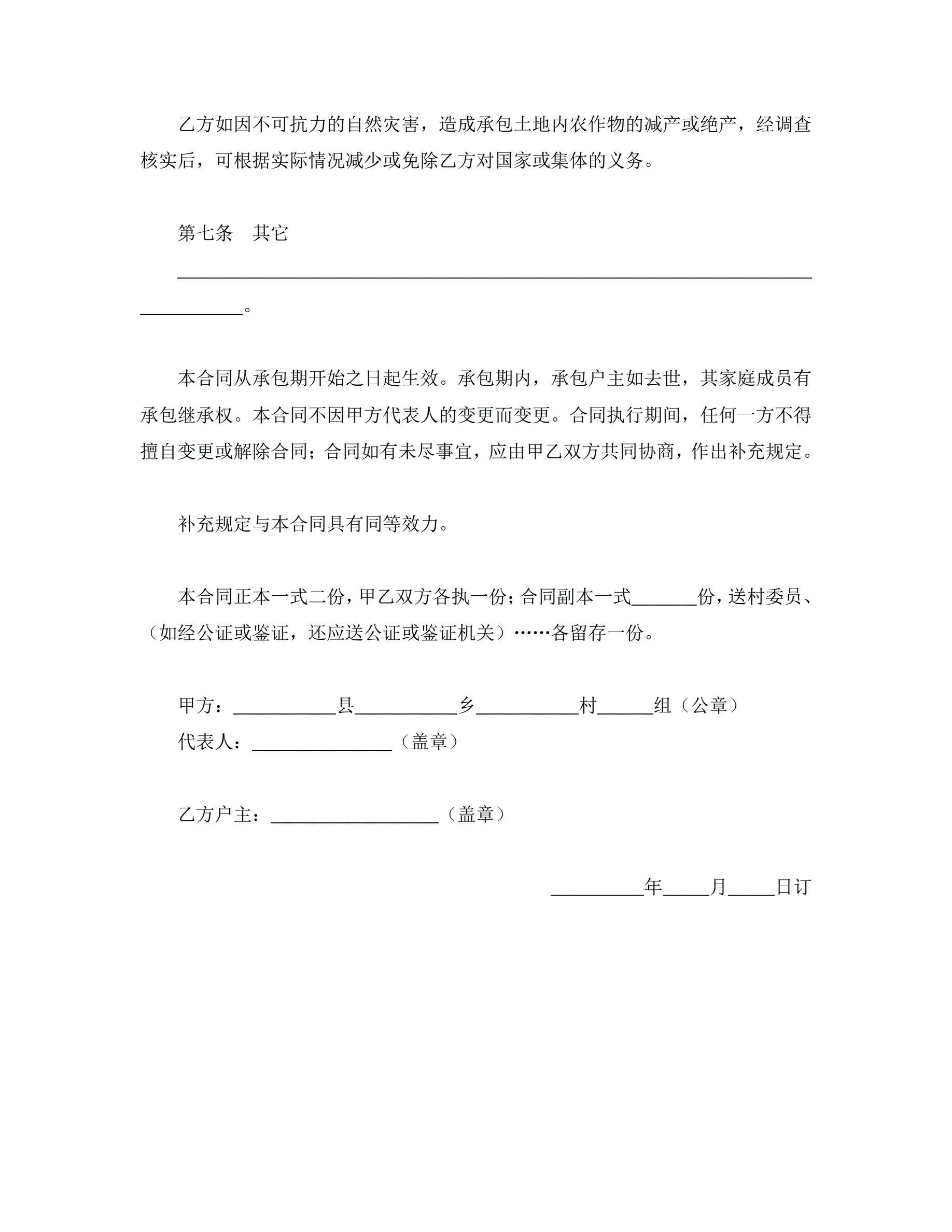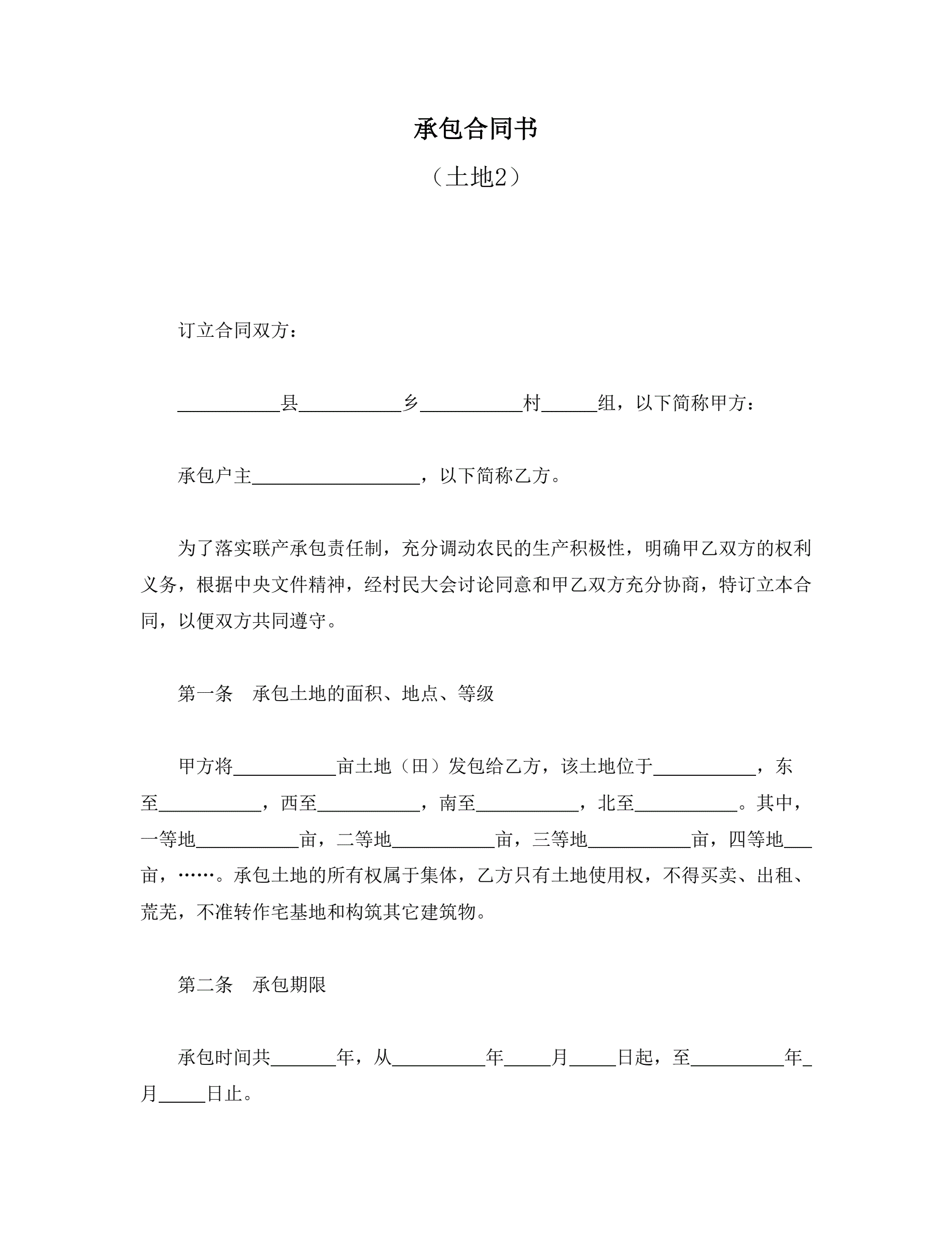 >承包合同书(土地