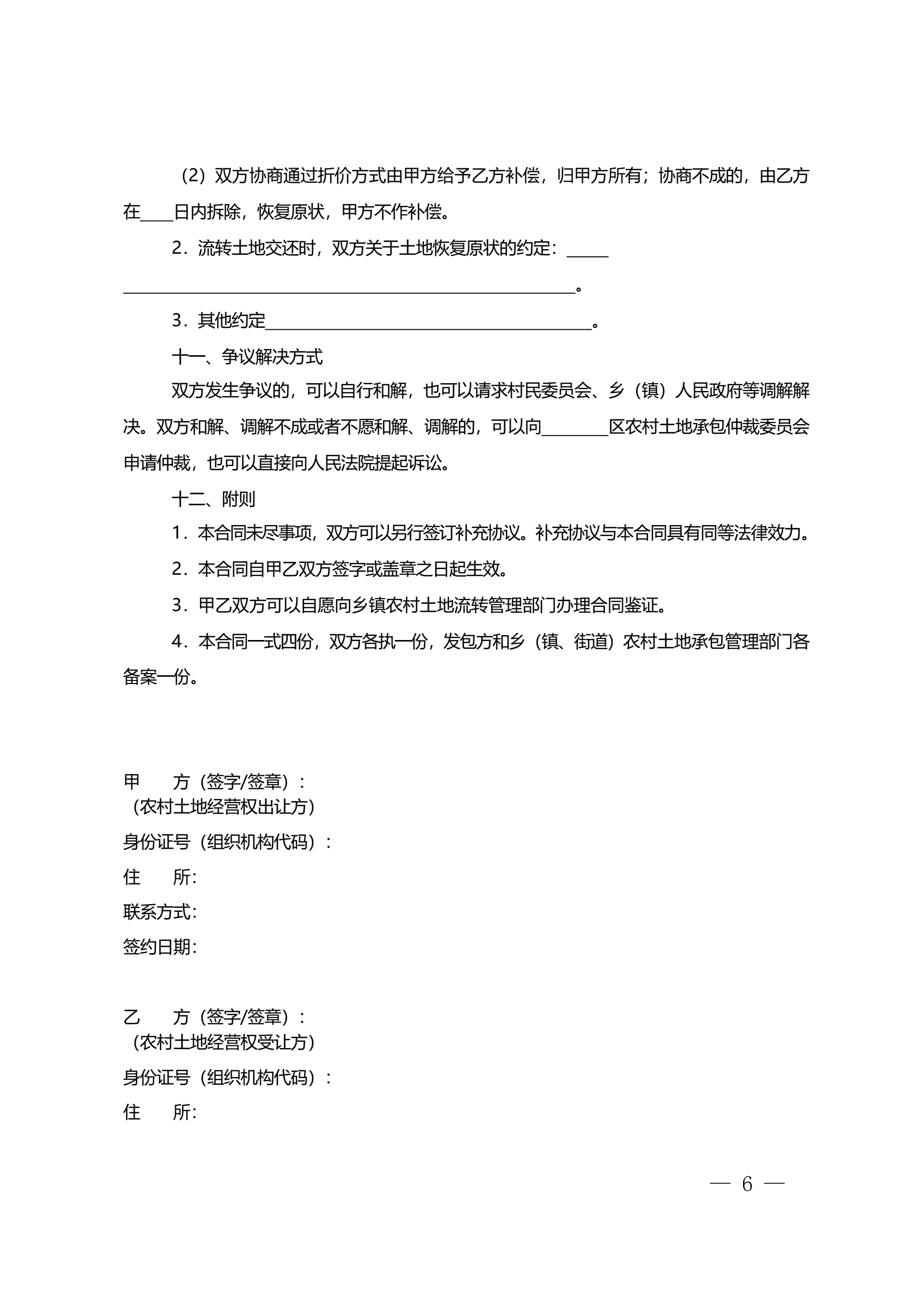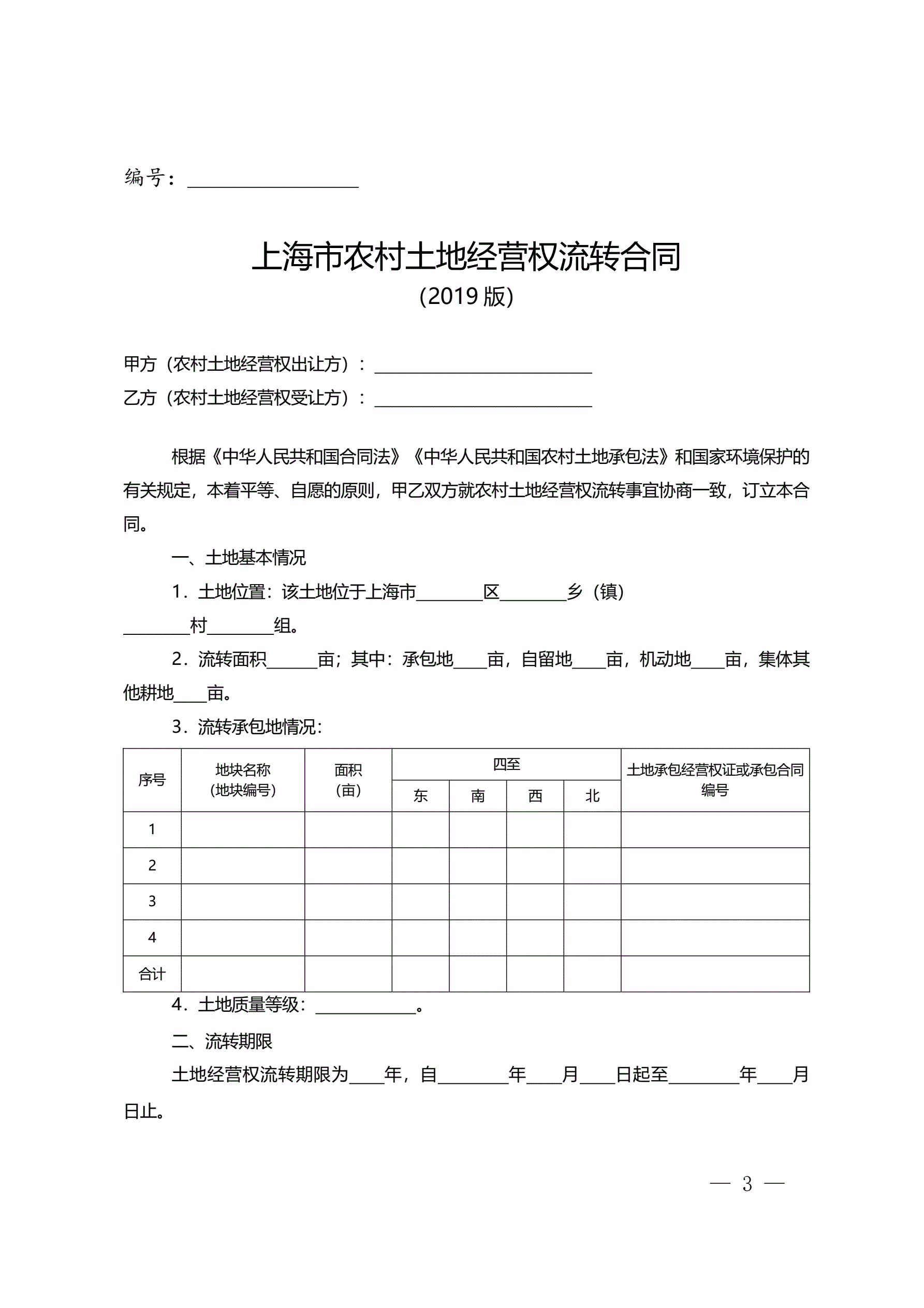 农村土地流转合同2019版