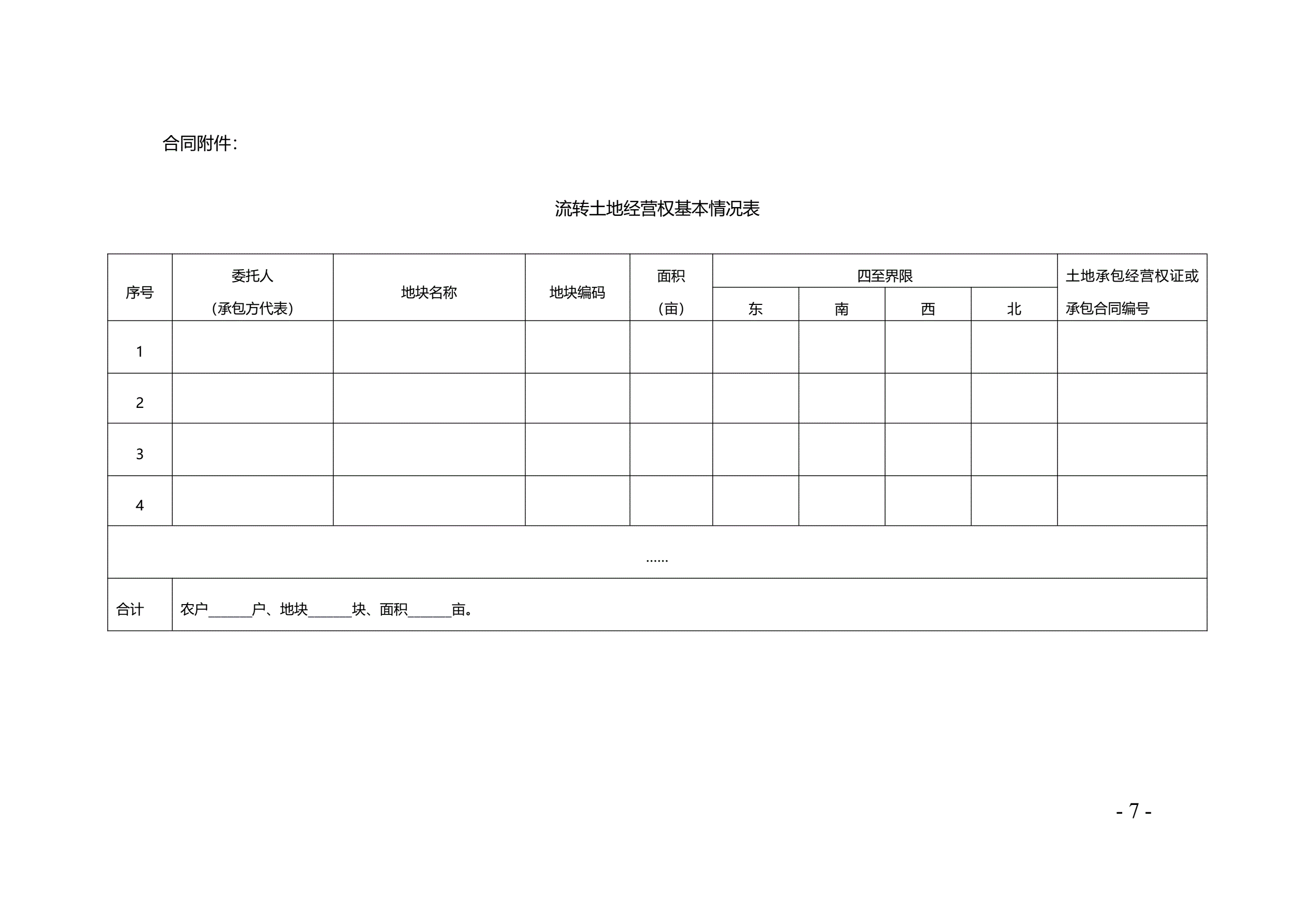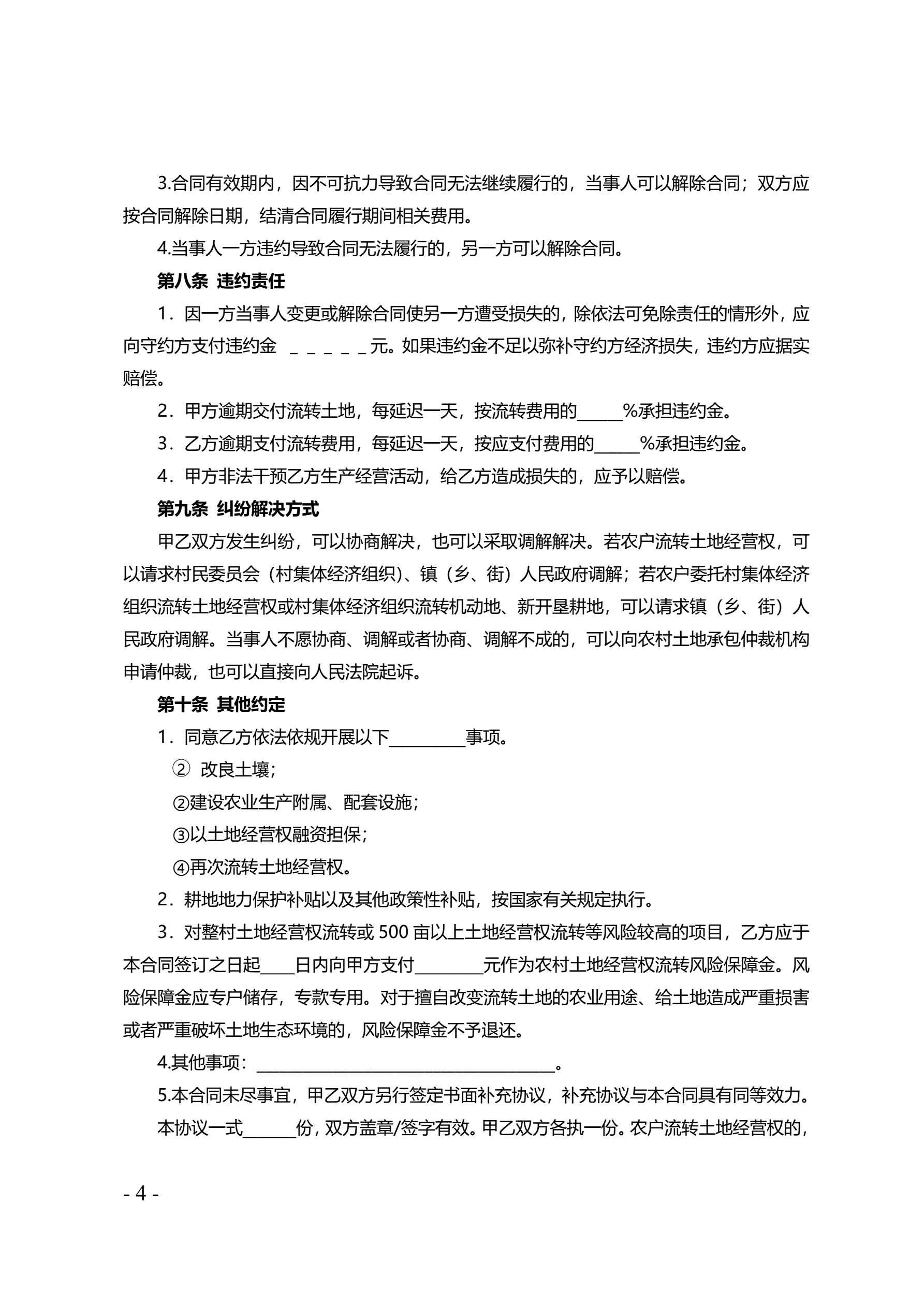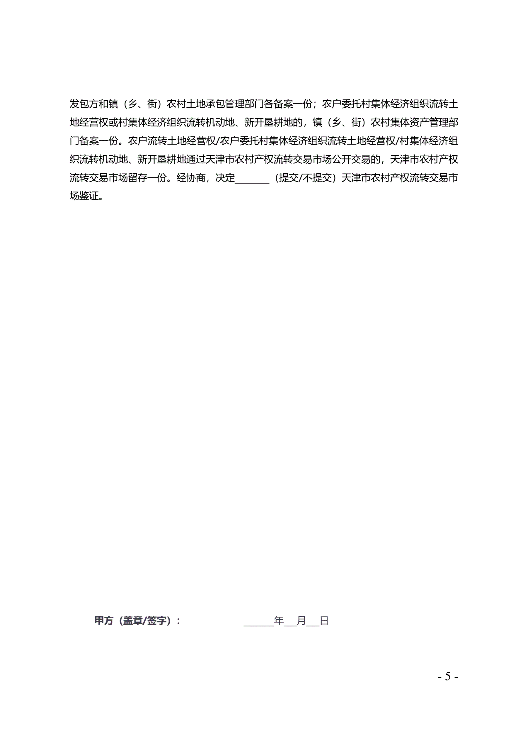 >天津市农村土地经营权流转合同