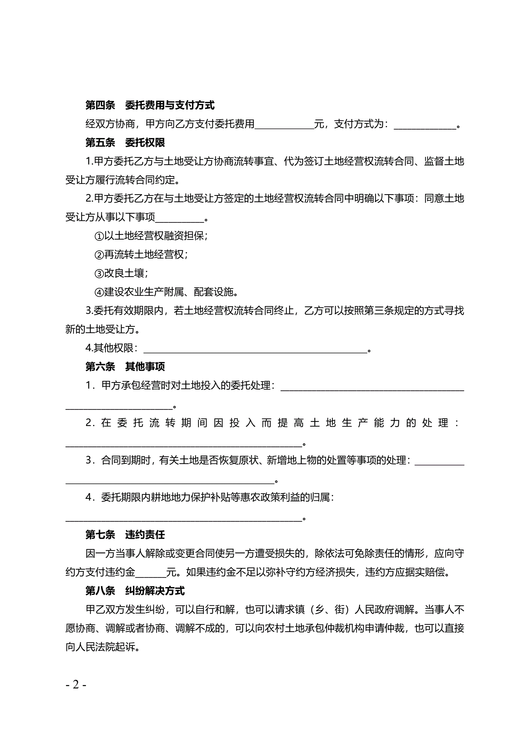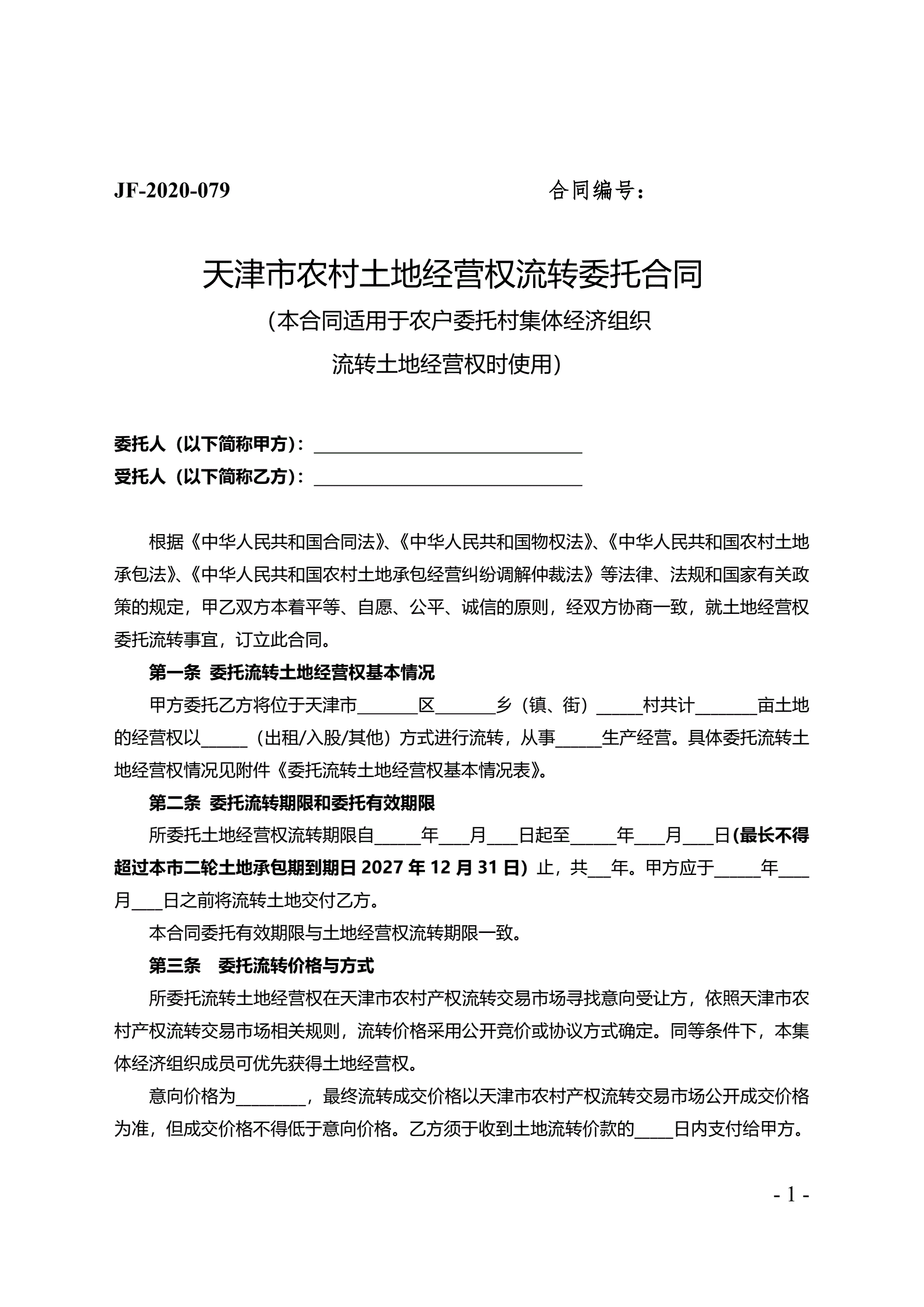 >天津市农村土地经营权流转委托合同