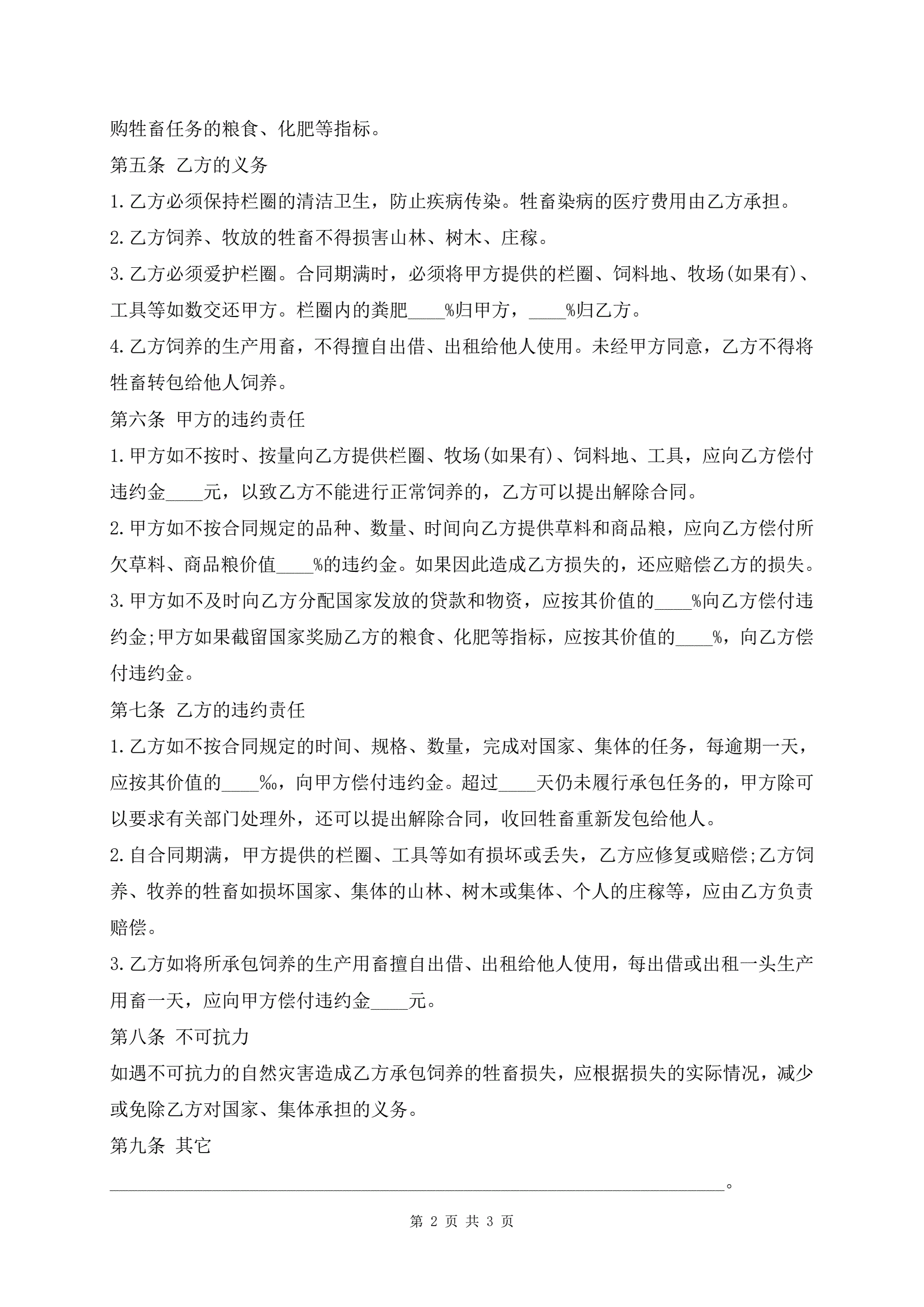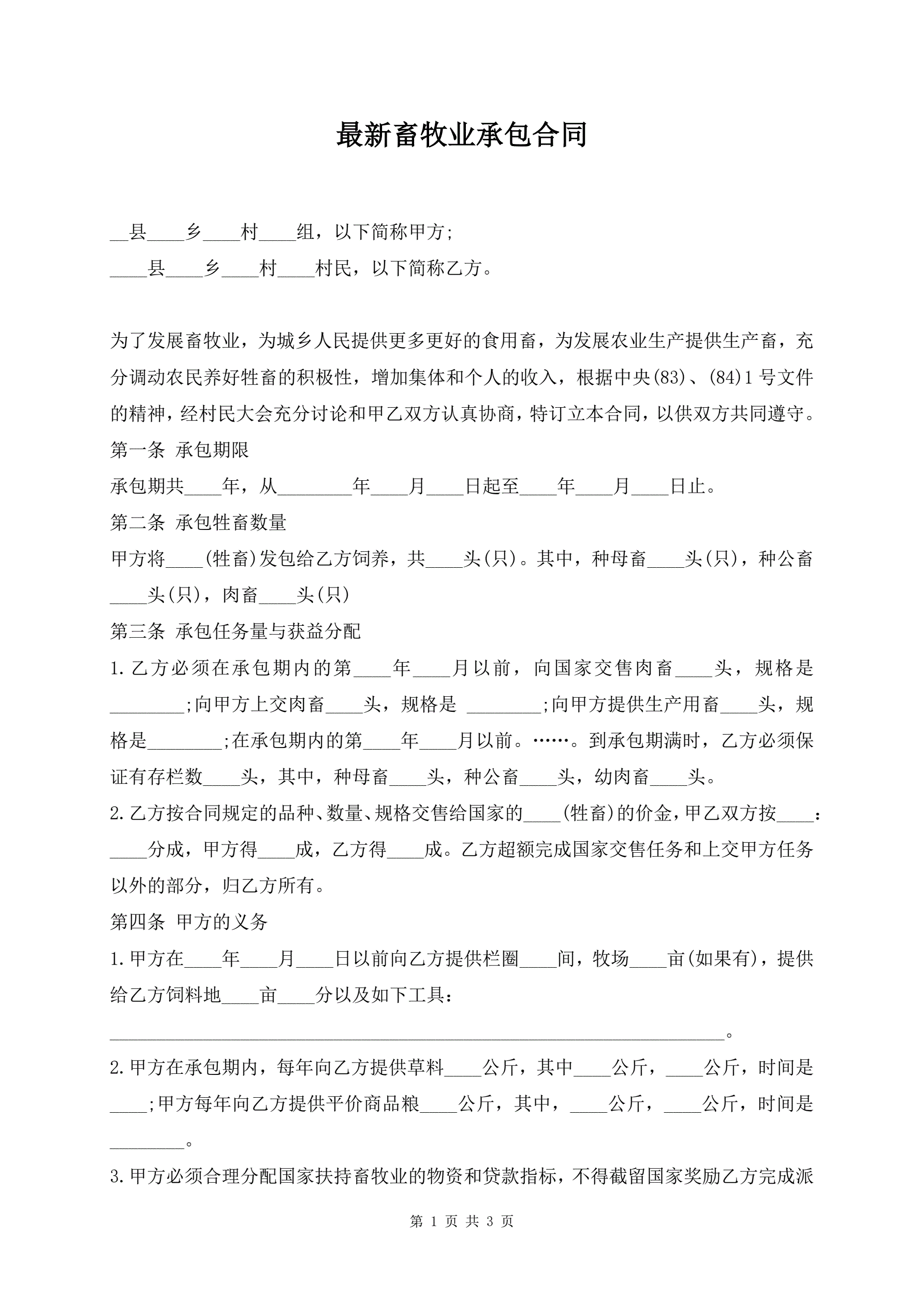 >最新畜牧业承包合同