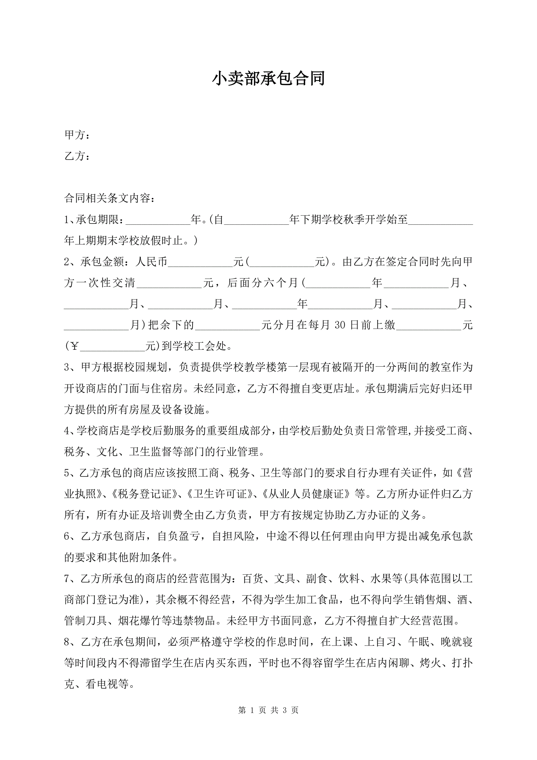 小卖部承包合同