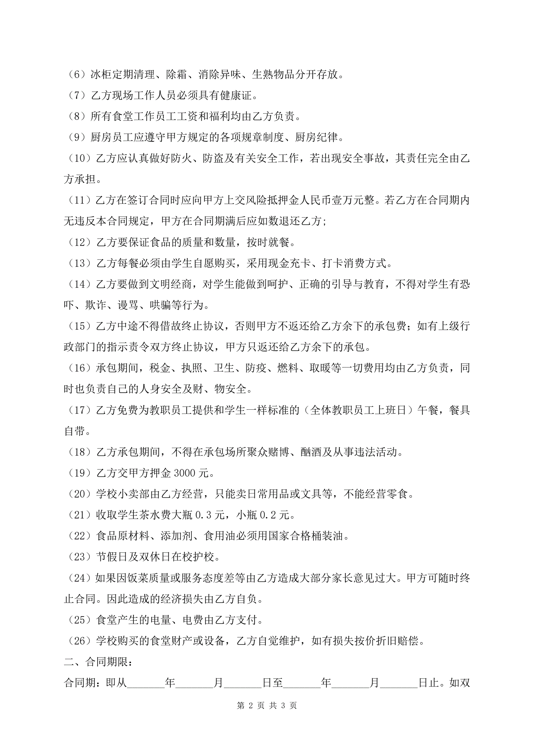 >新版学校食堂承包合同书范文