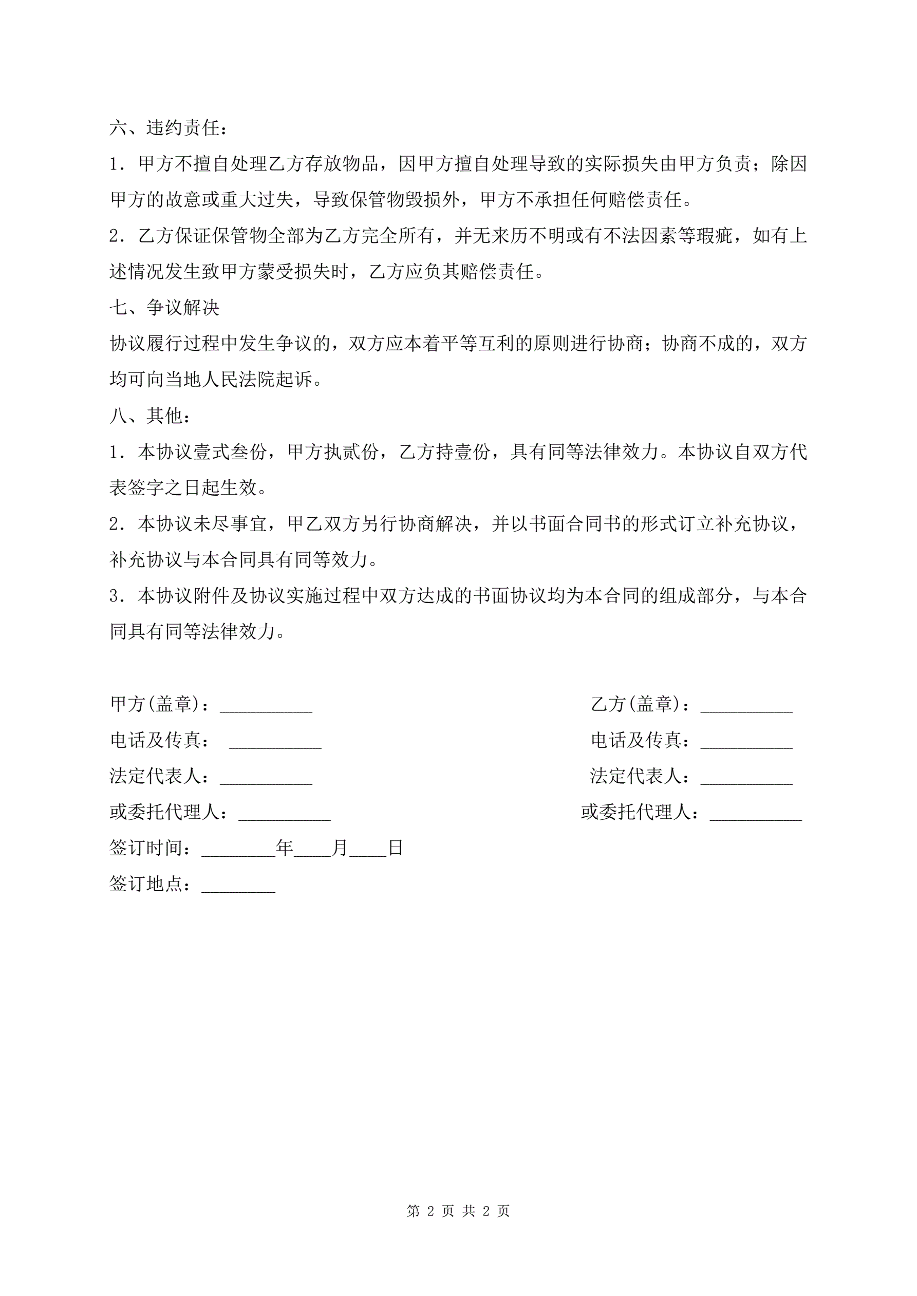 >货品无偿保管协议专业版