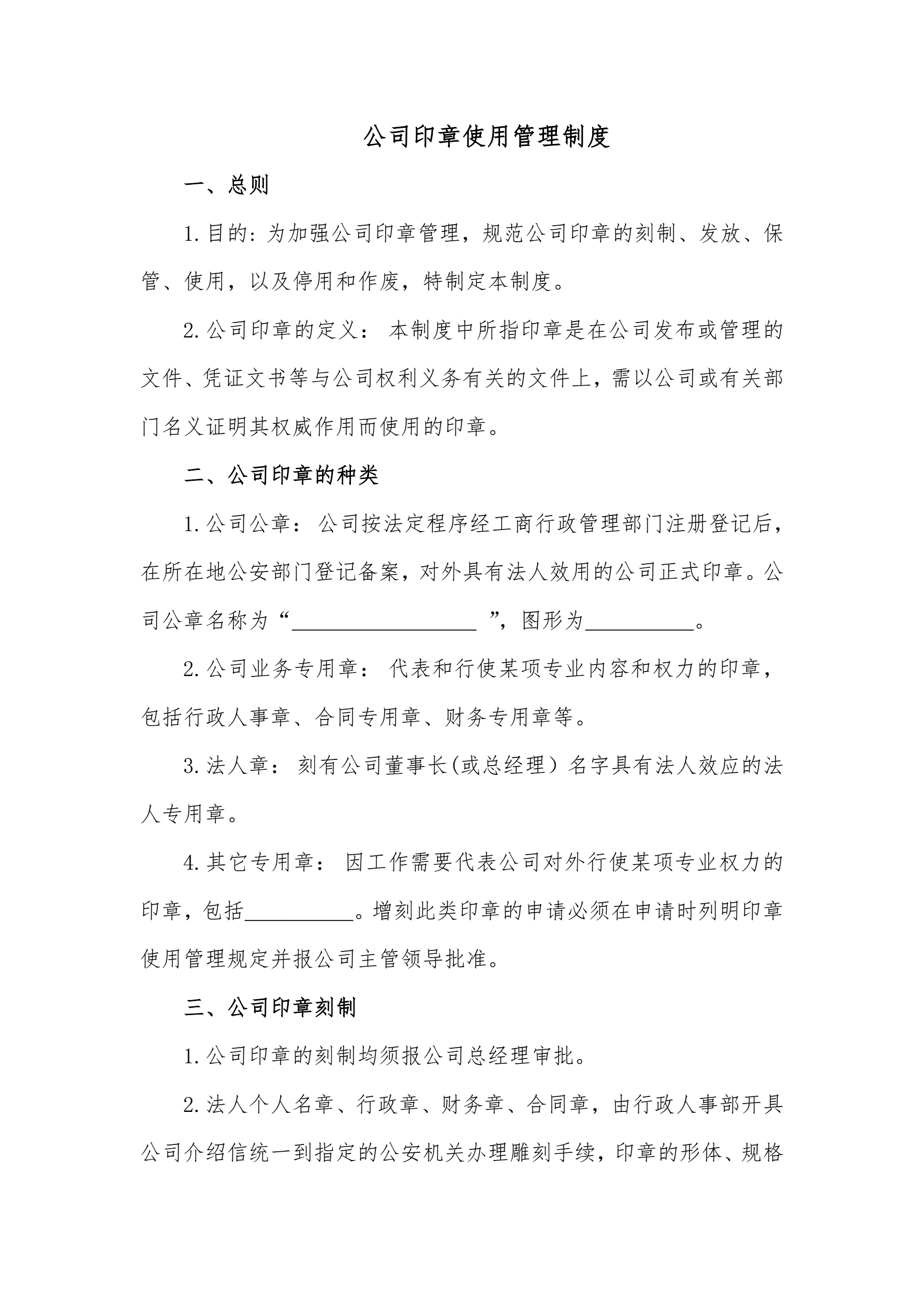 >公司印章使用管理制度