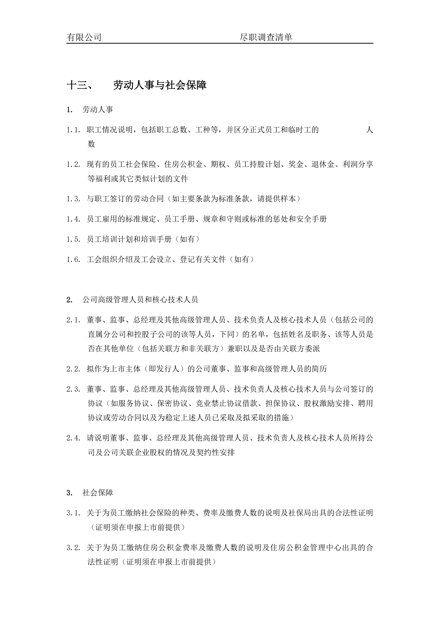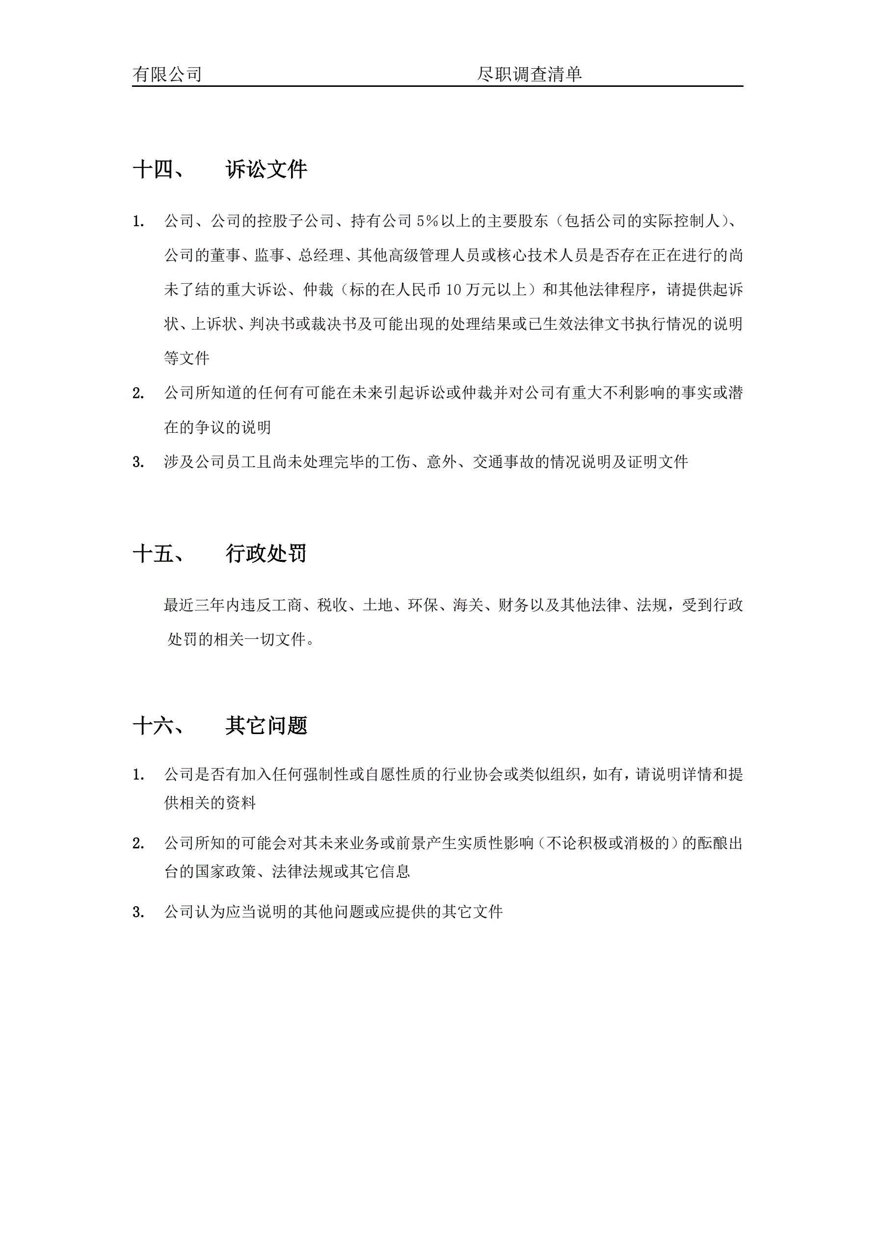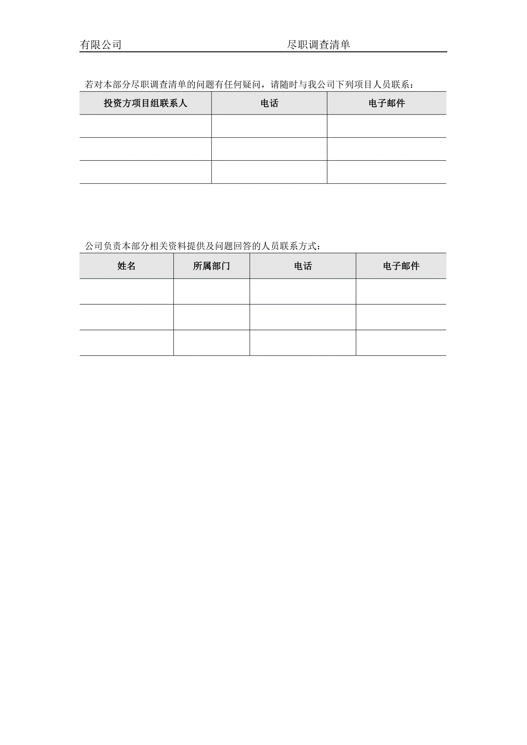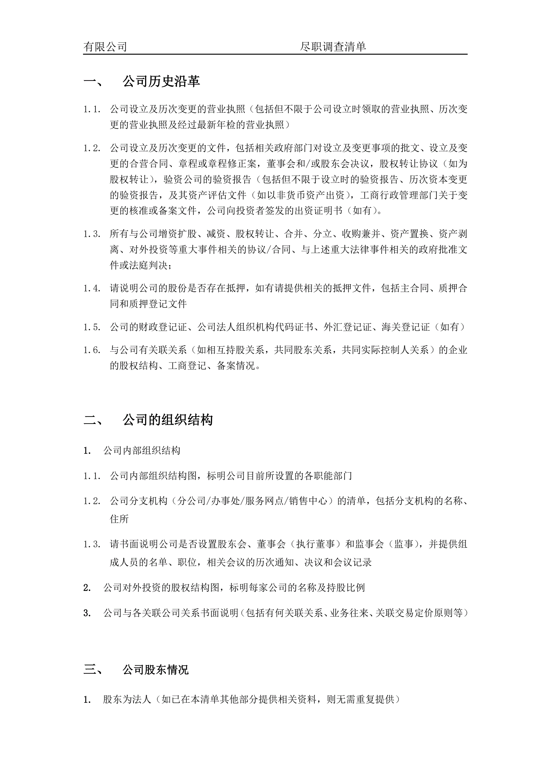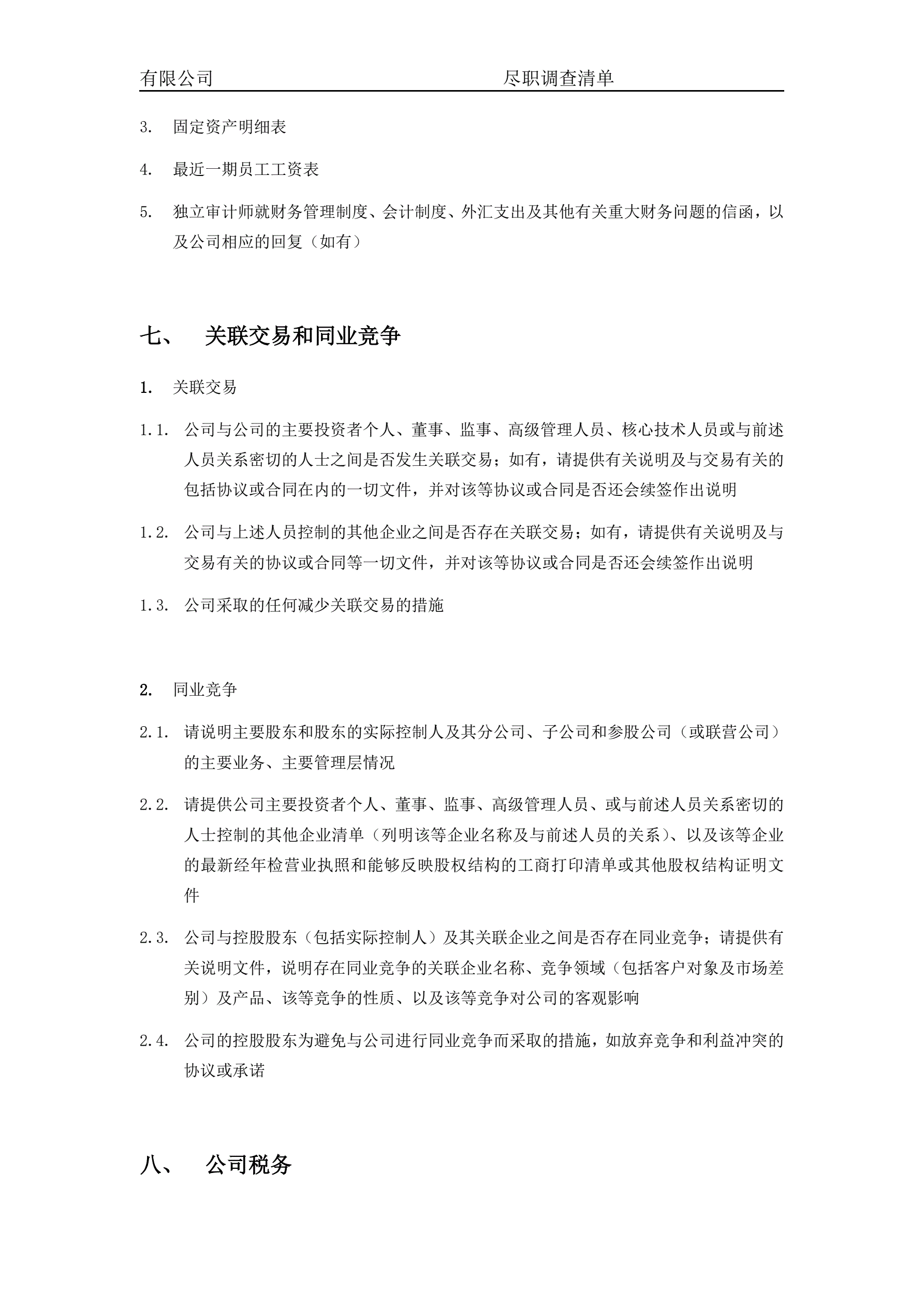 关于XXX有限公司的尽职调查