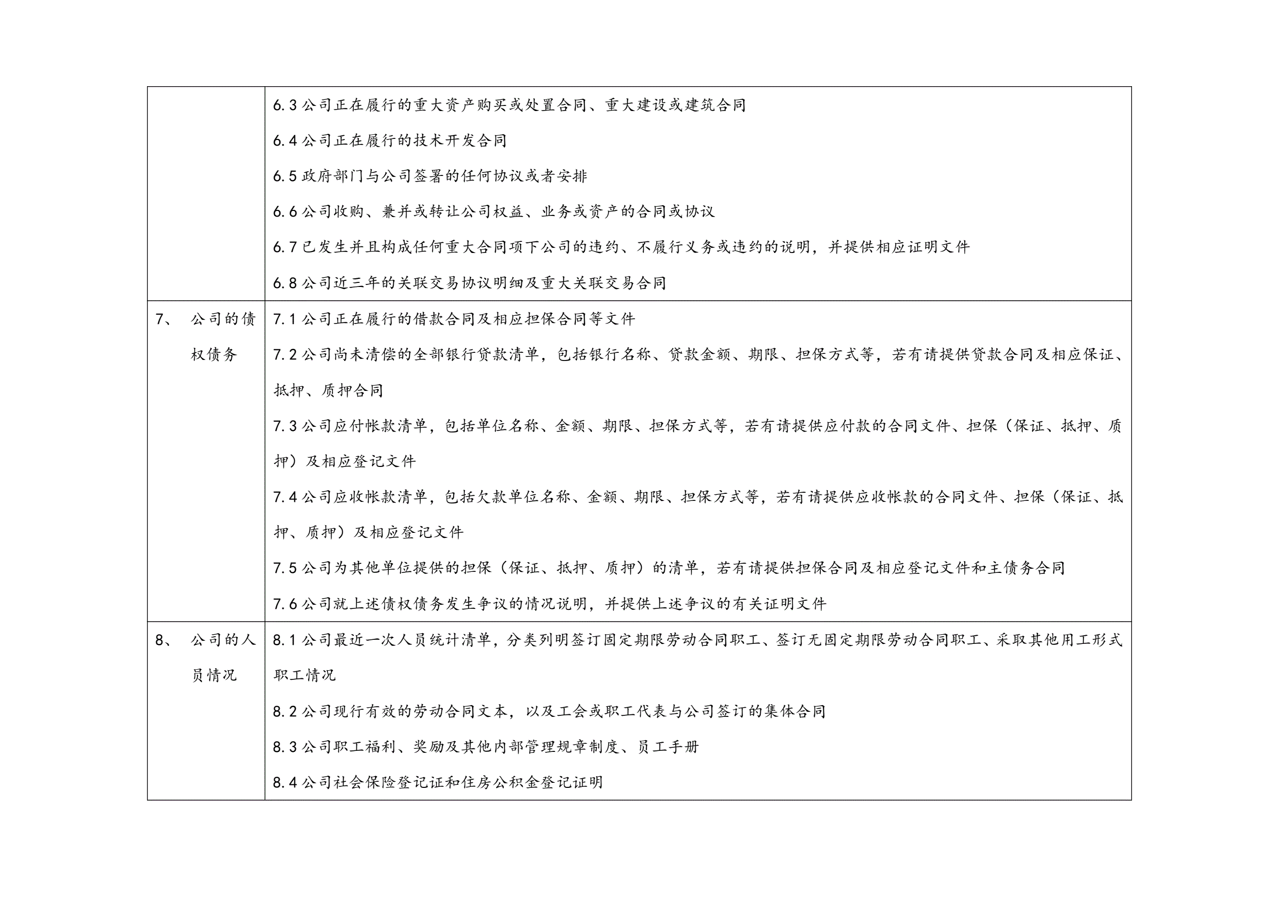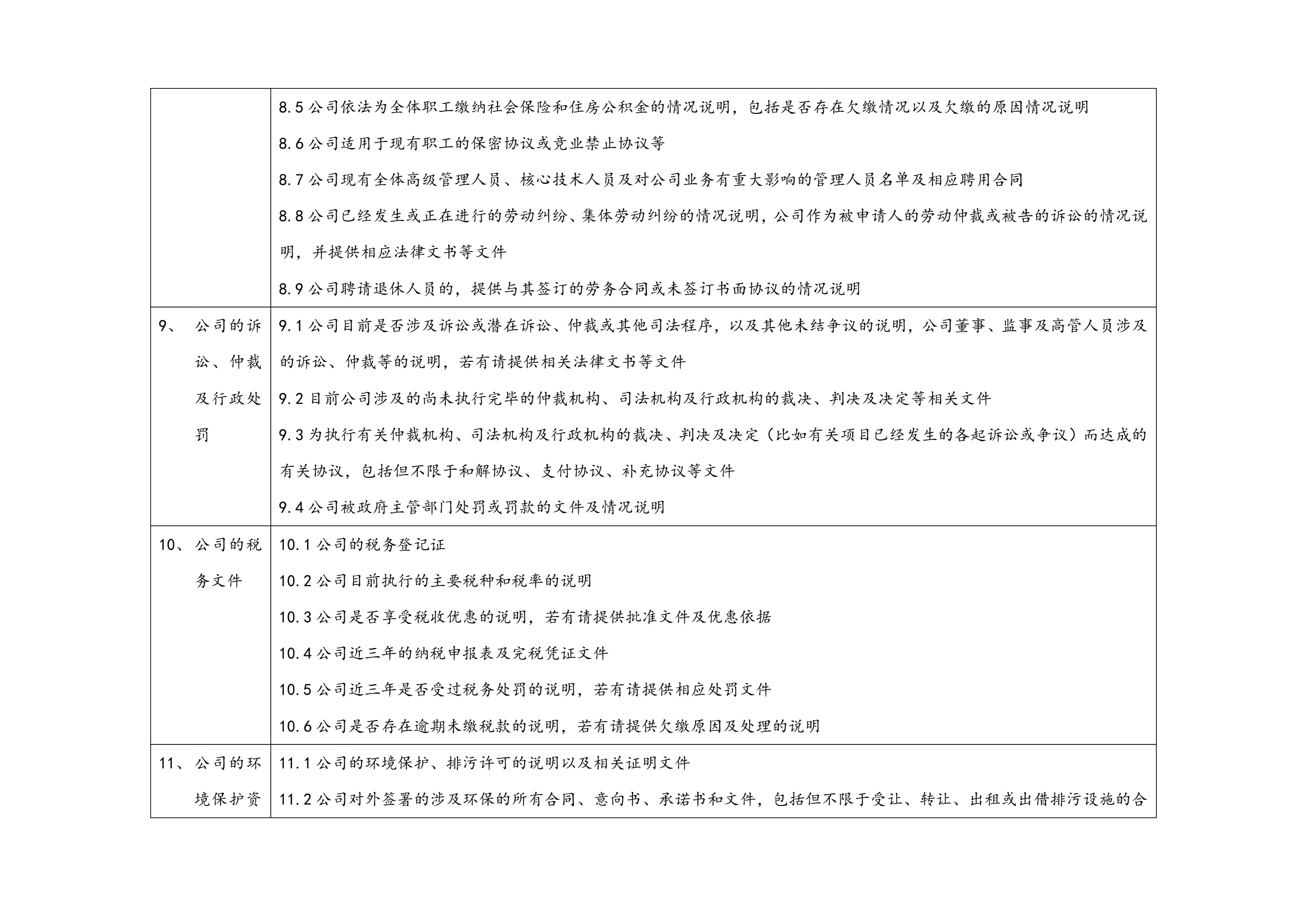新三板挂牌法律尽职调查清单