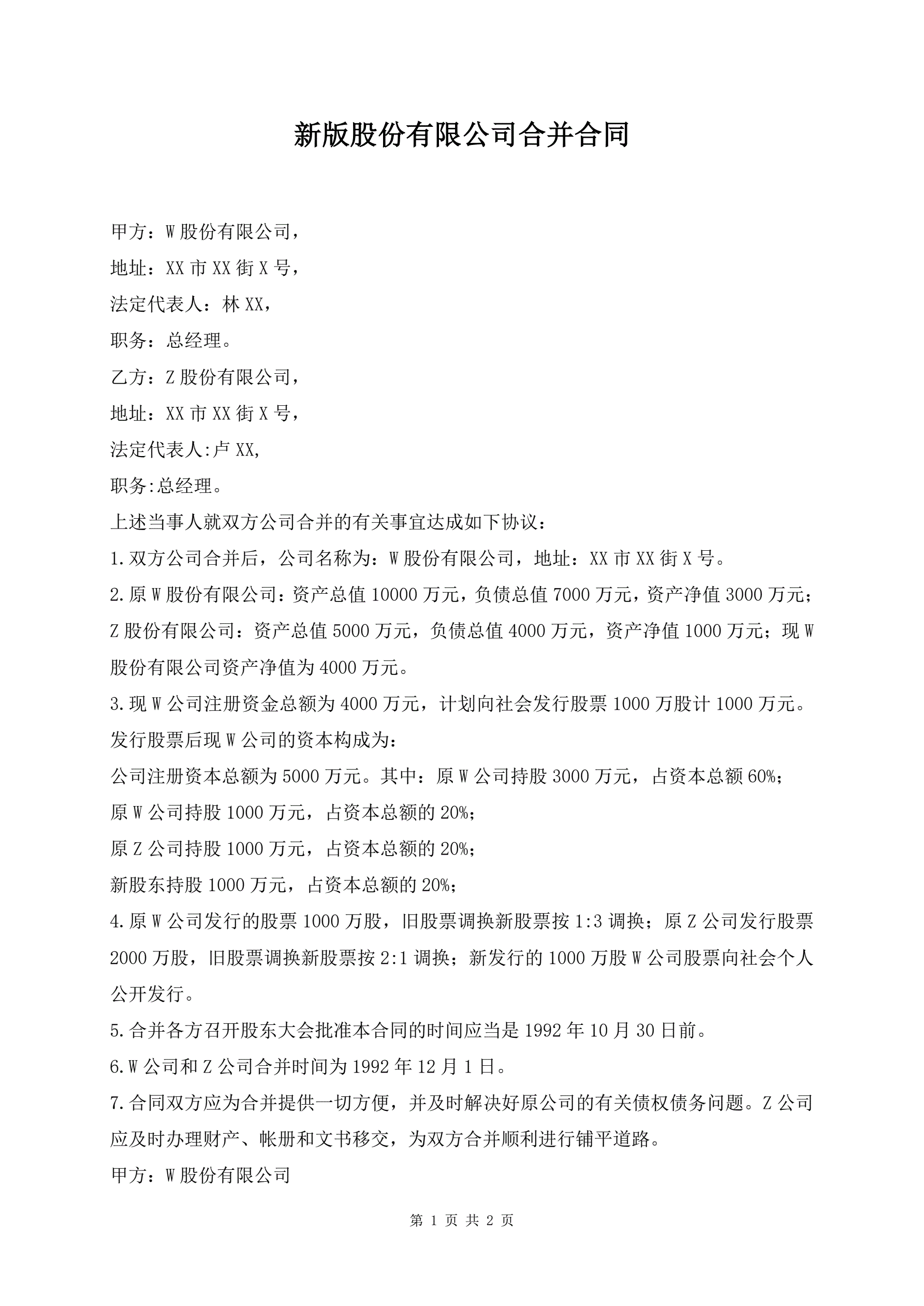 新版股份有限公司合并合同