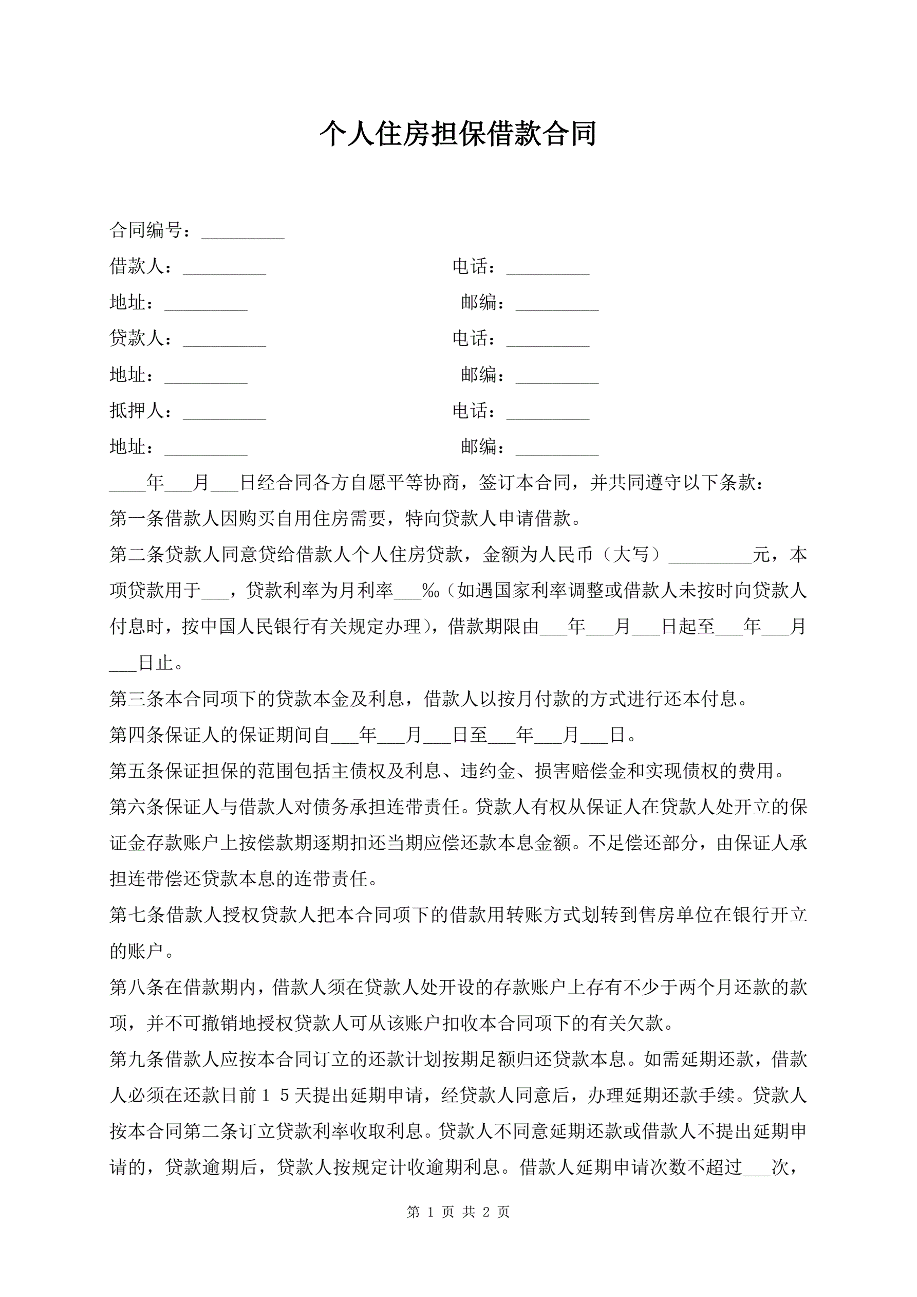 个人住房担保借款合同