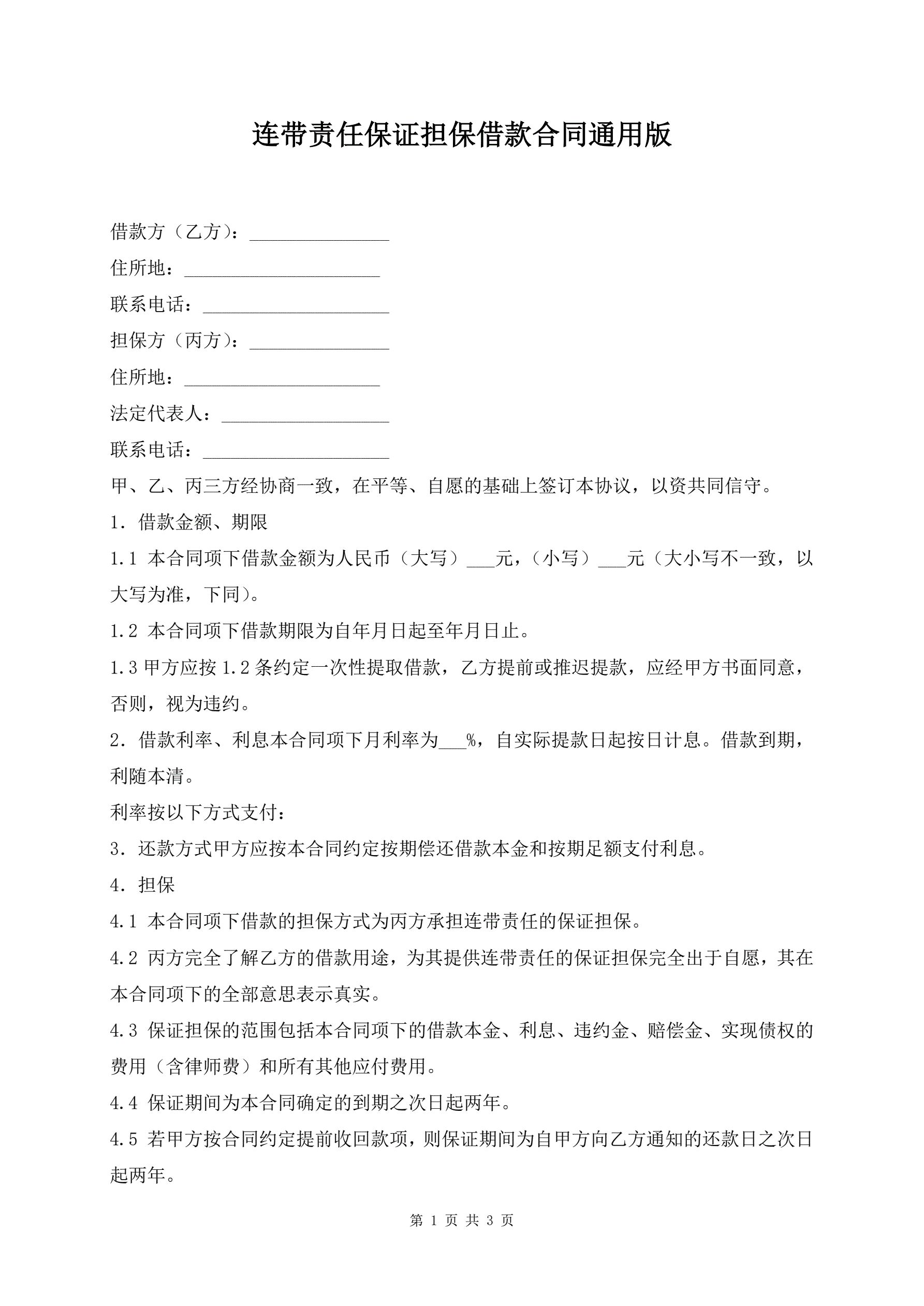连带责任保证担保借款合同通用版