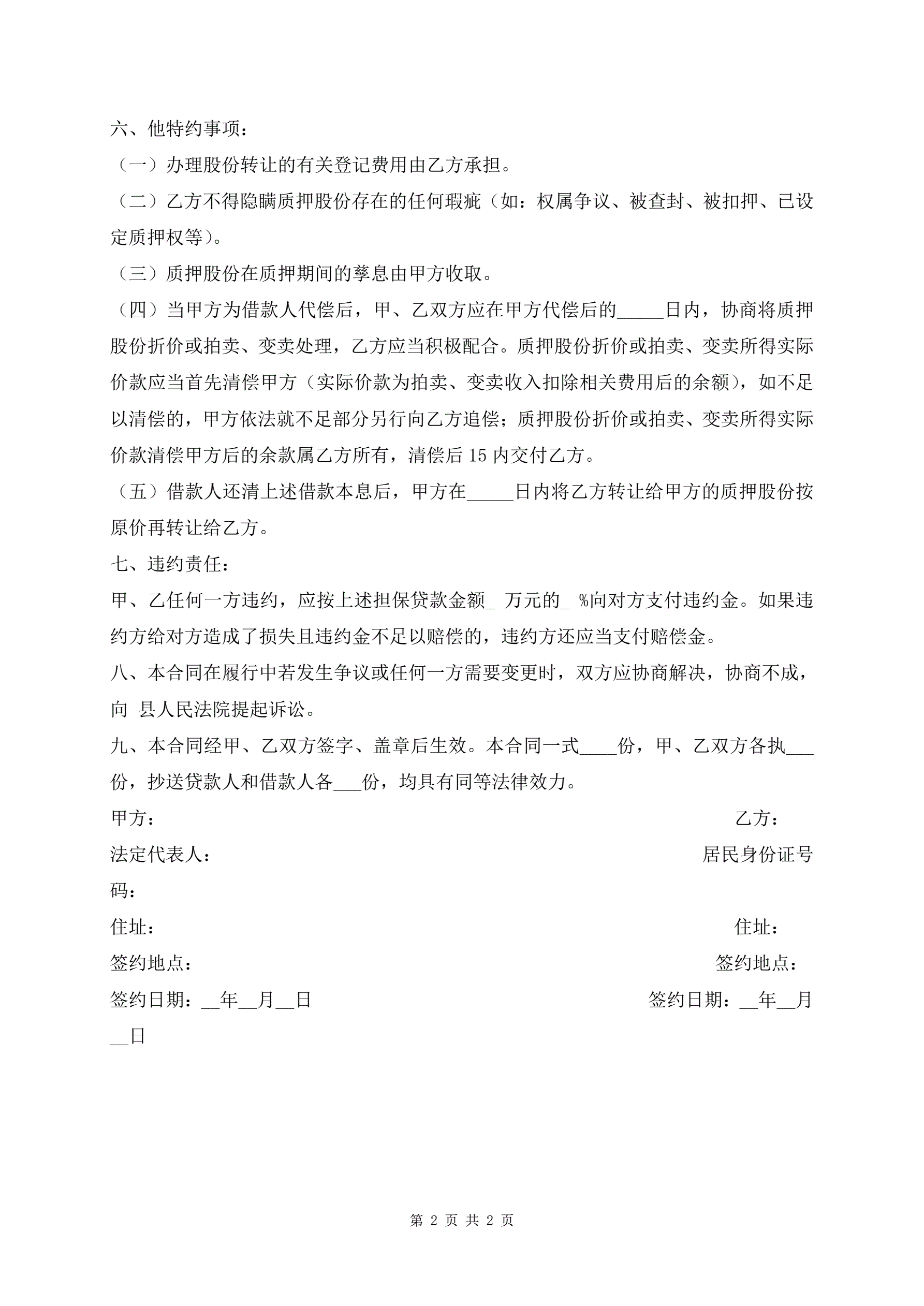 正规版反担保股份抵押合同