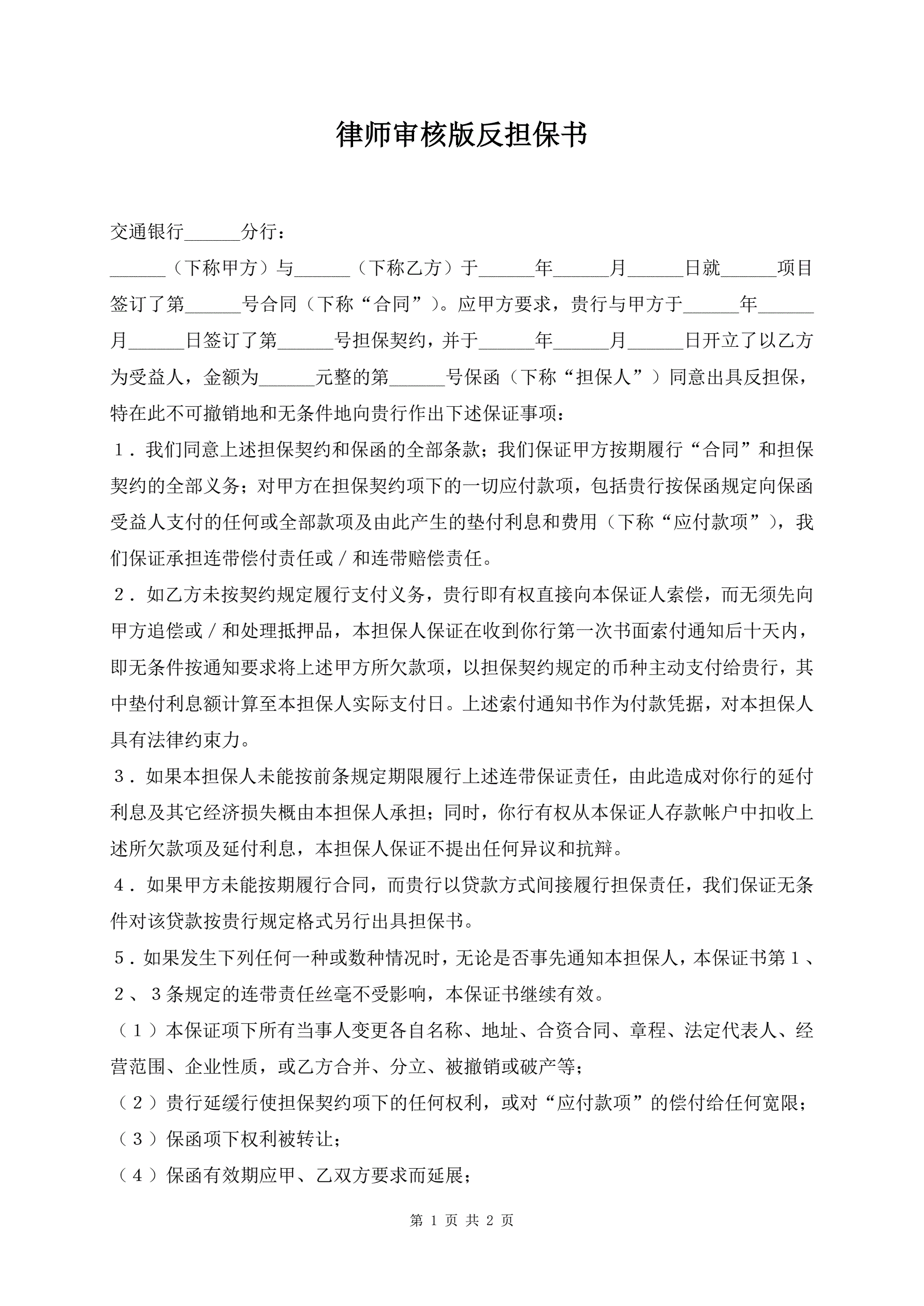 >律师审核版反担保书