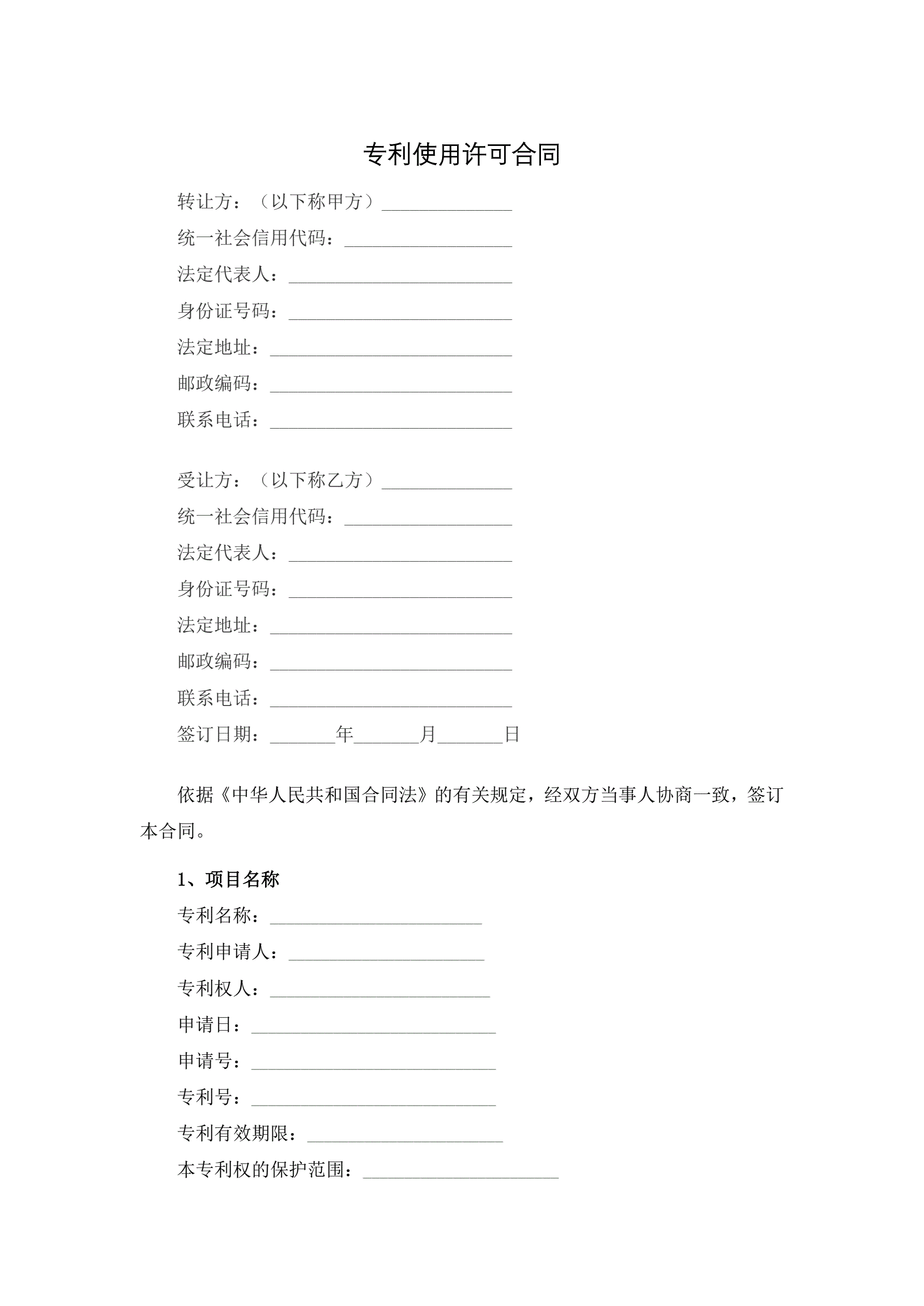 专利使用许可合同