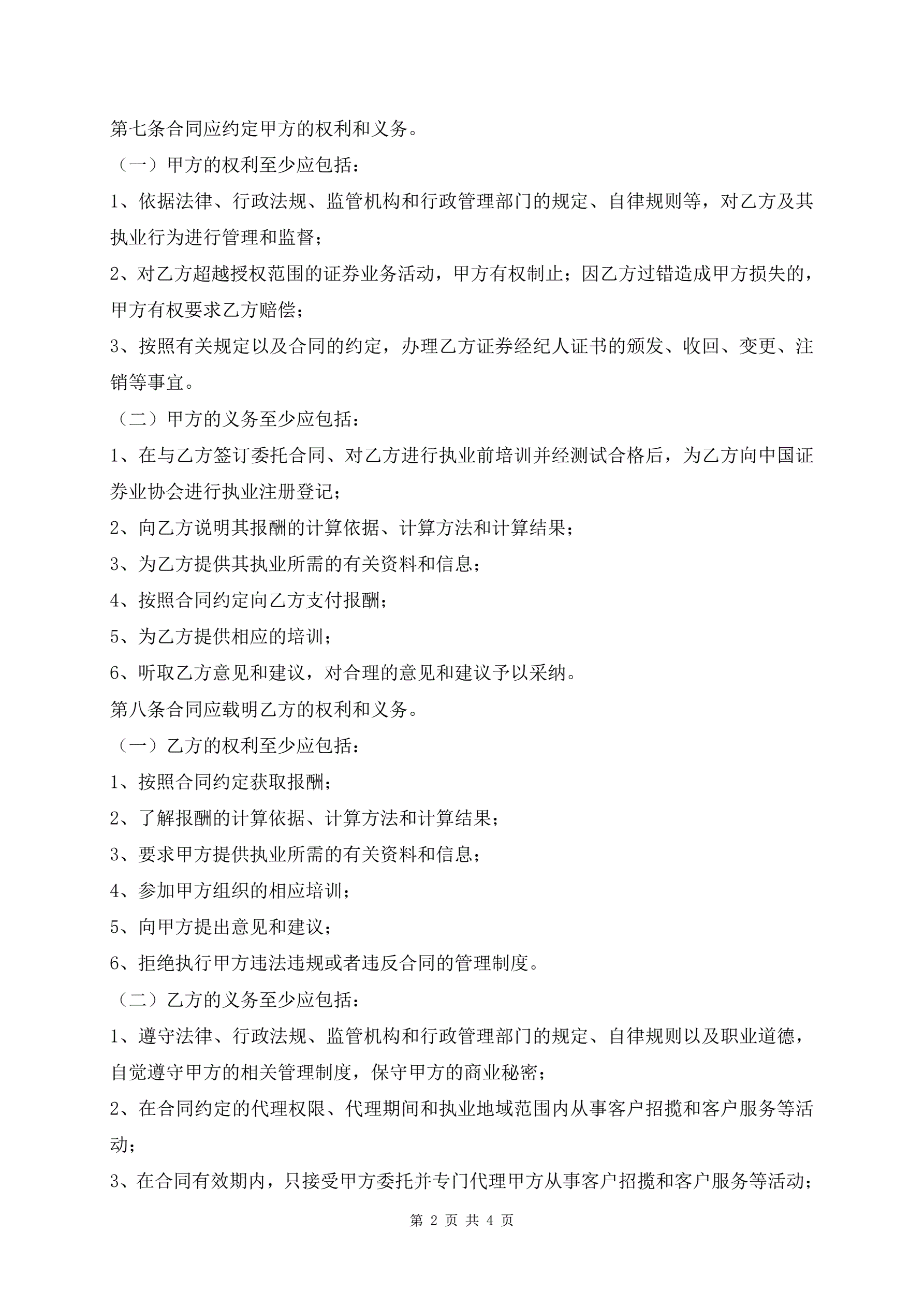 证券经纪人委托合同范文标准版