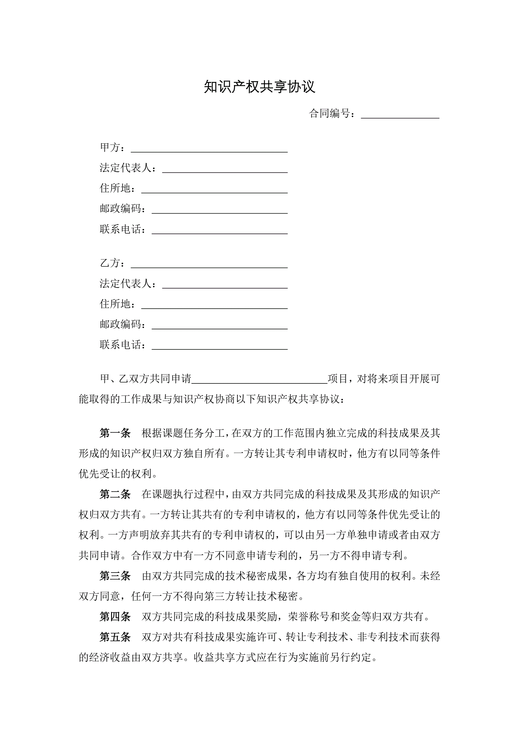 知识产权共享协议