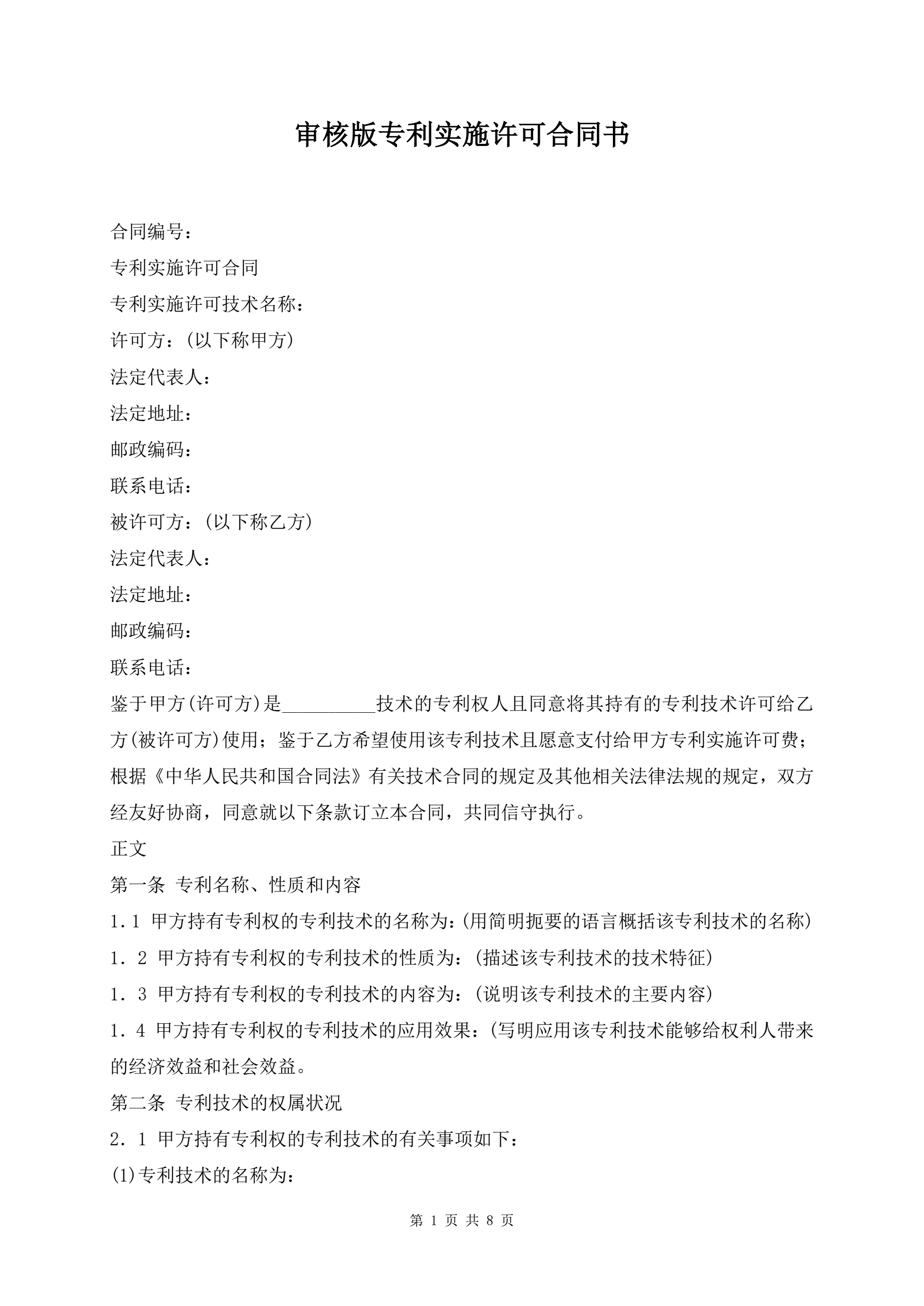 >审核版专利实施许可合同书