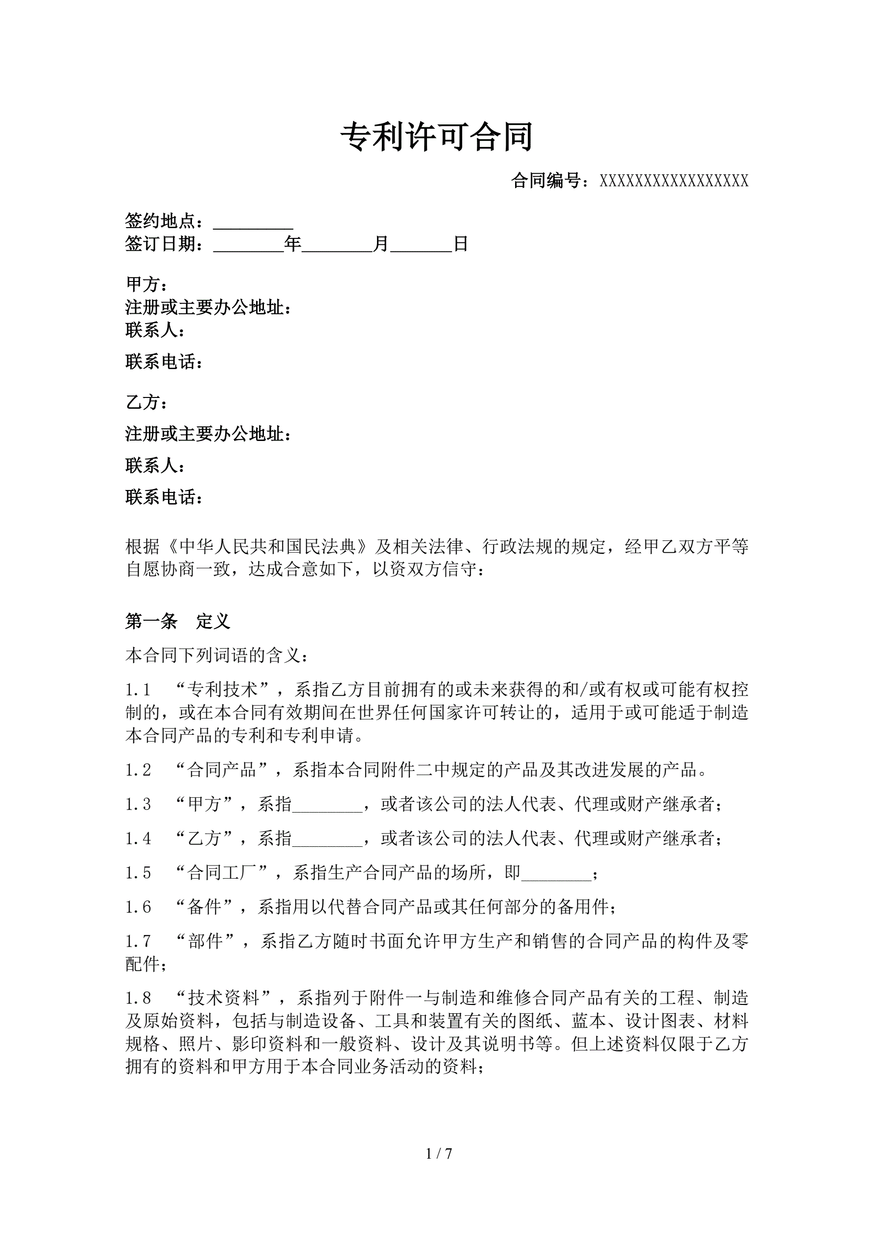 专利许可合同