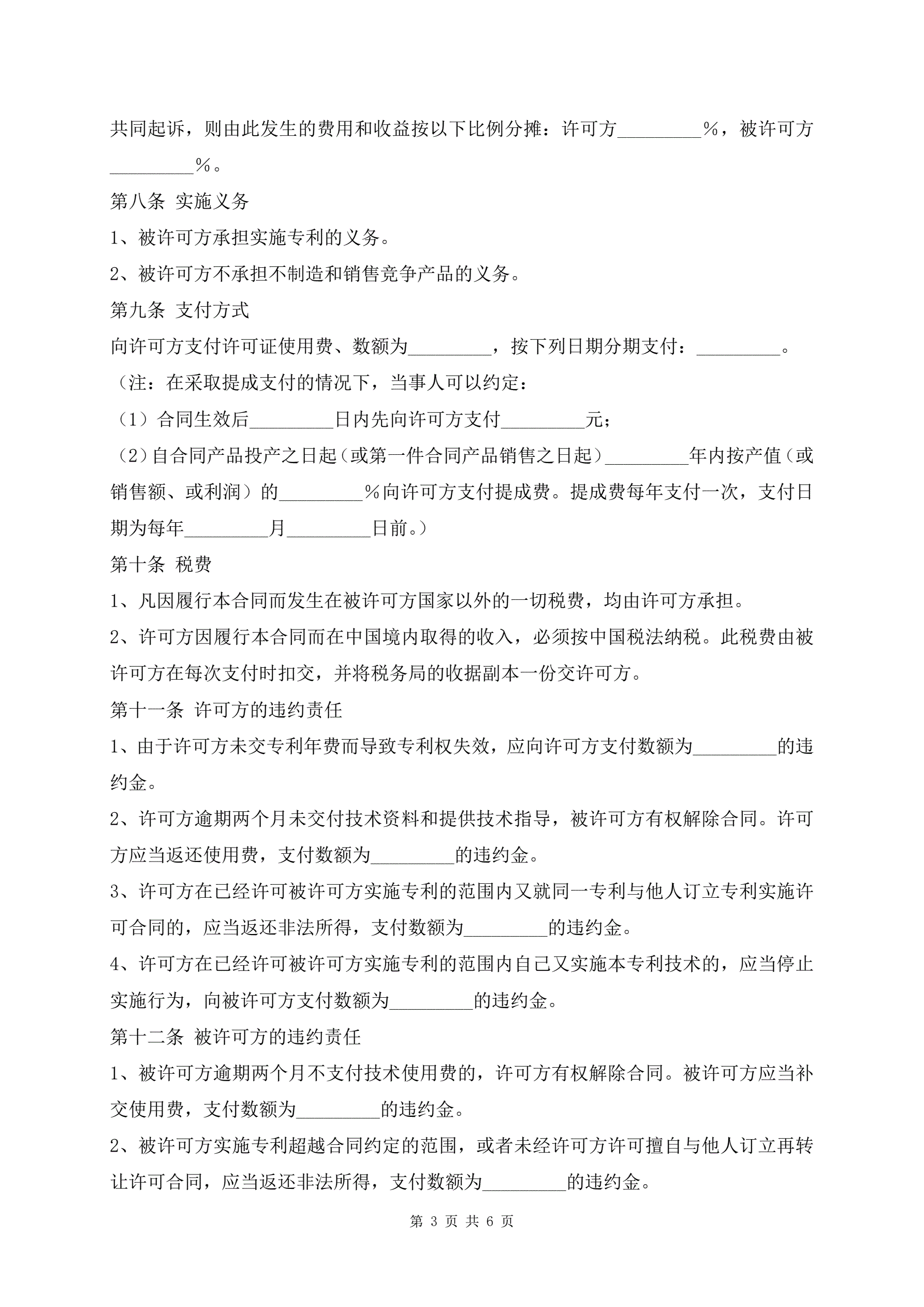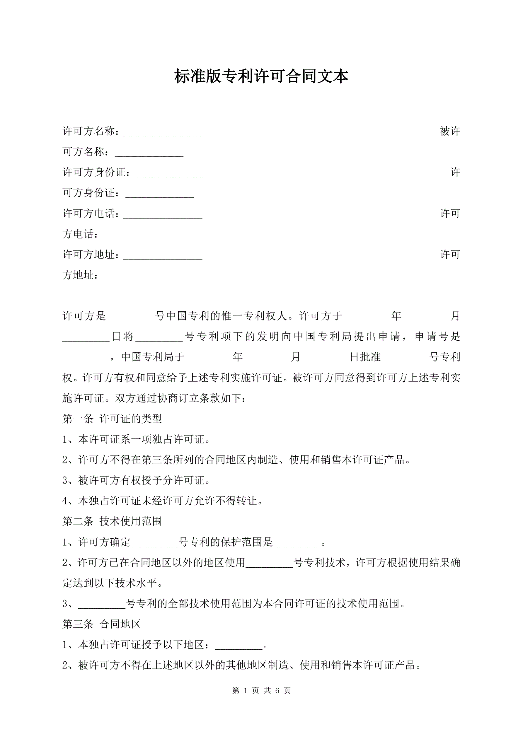>标准版专利许可合同文本