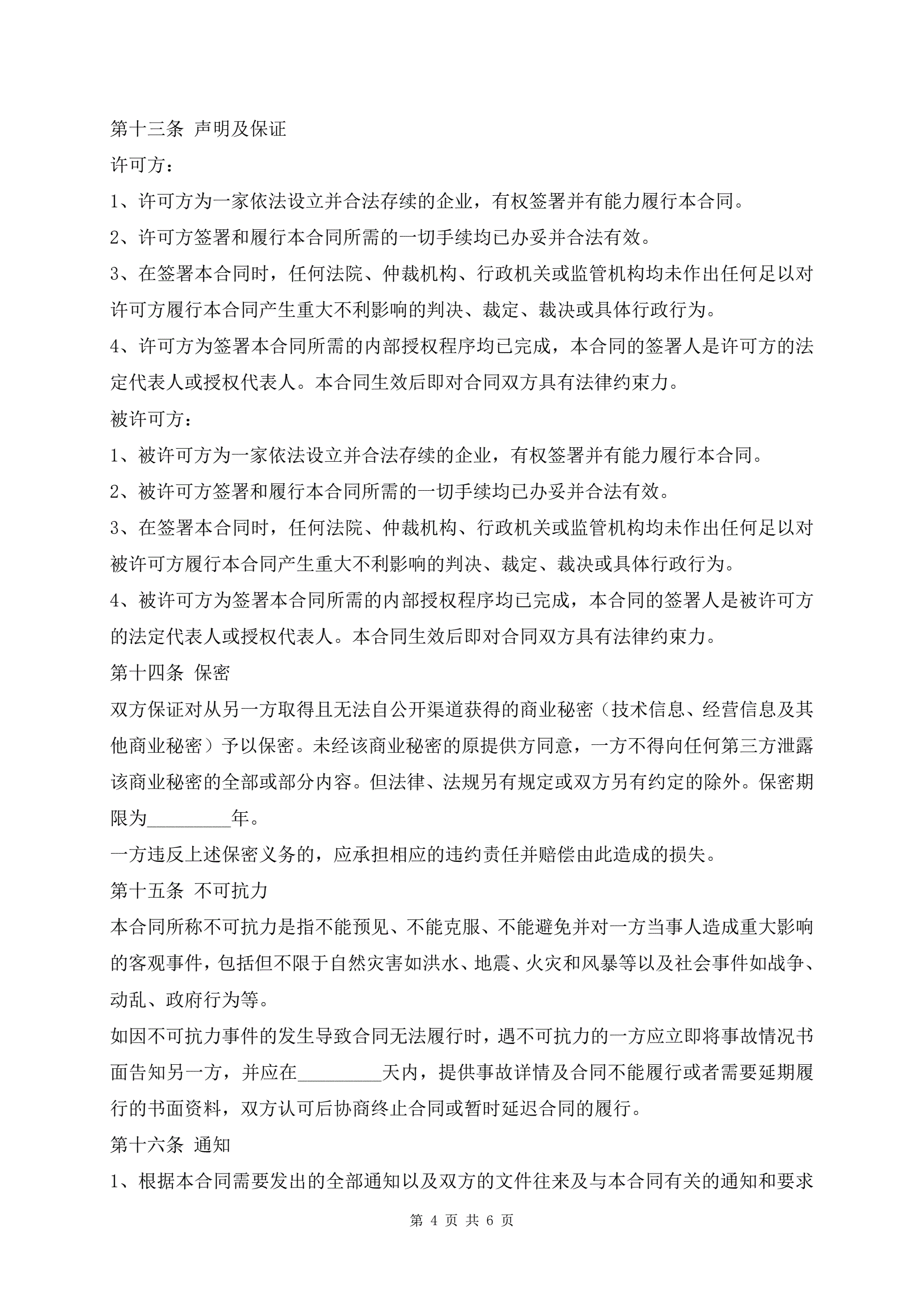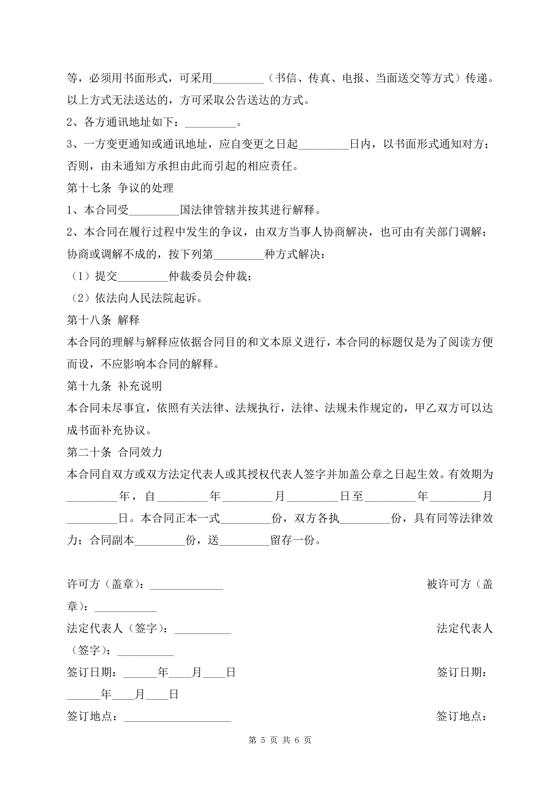 标准版专利许可合同文本