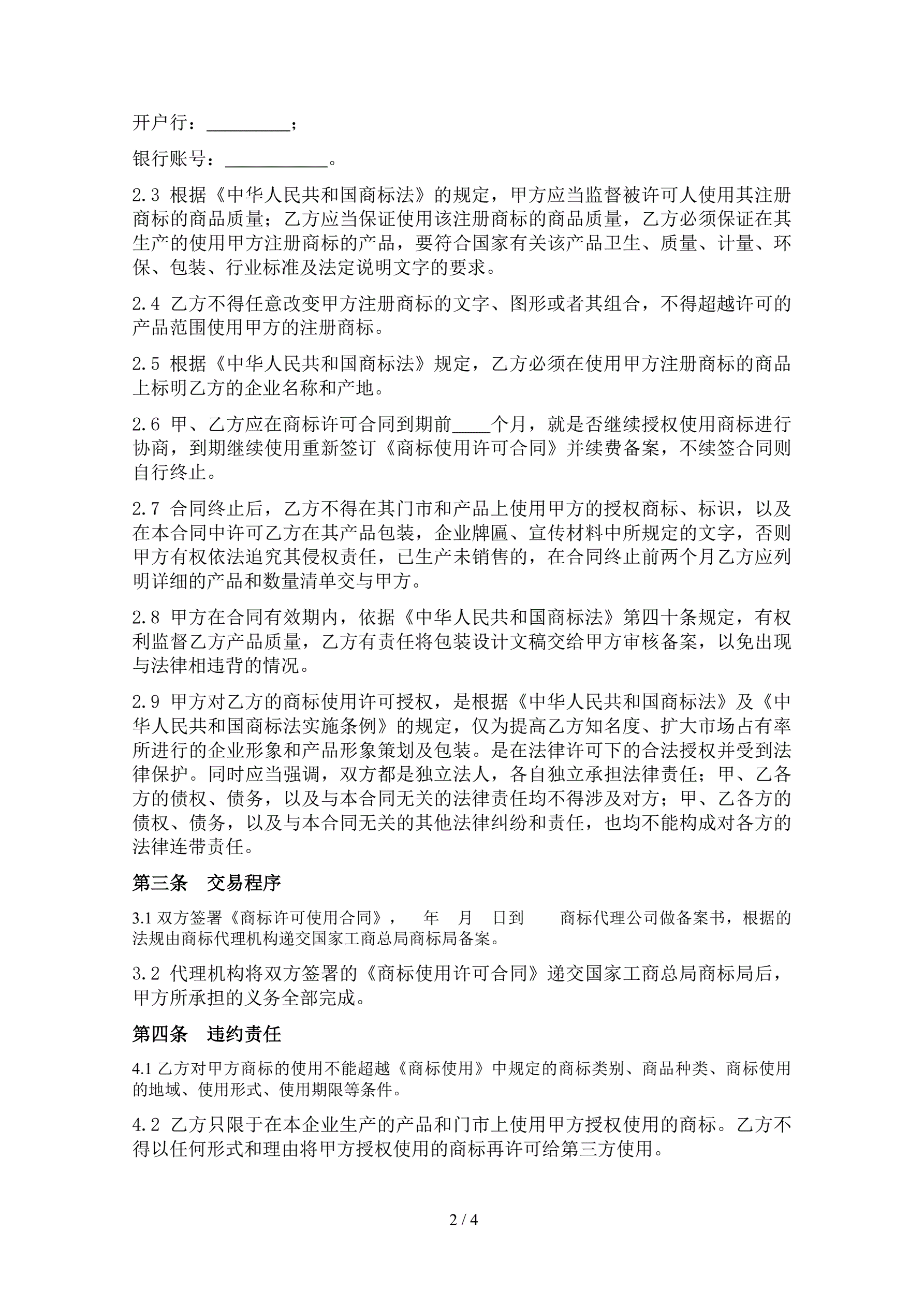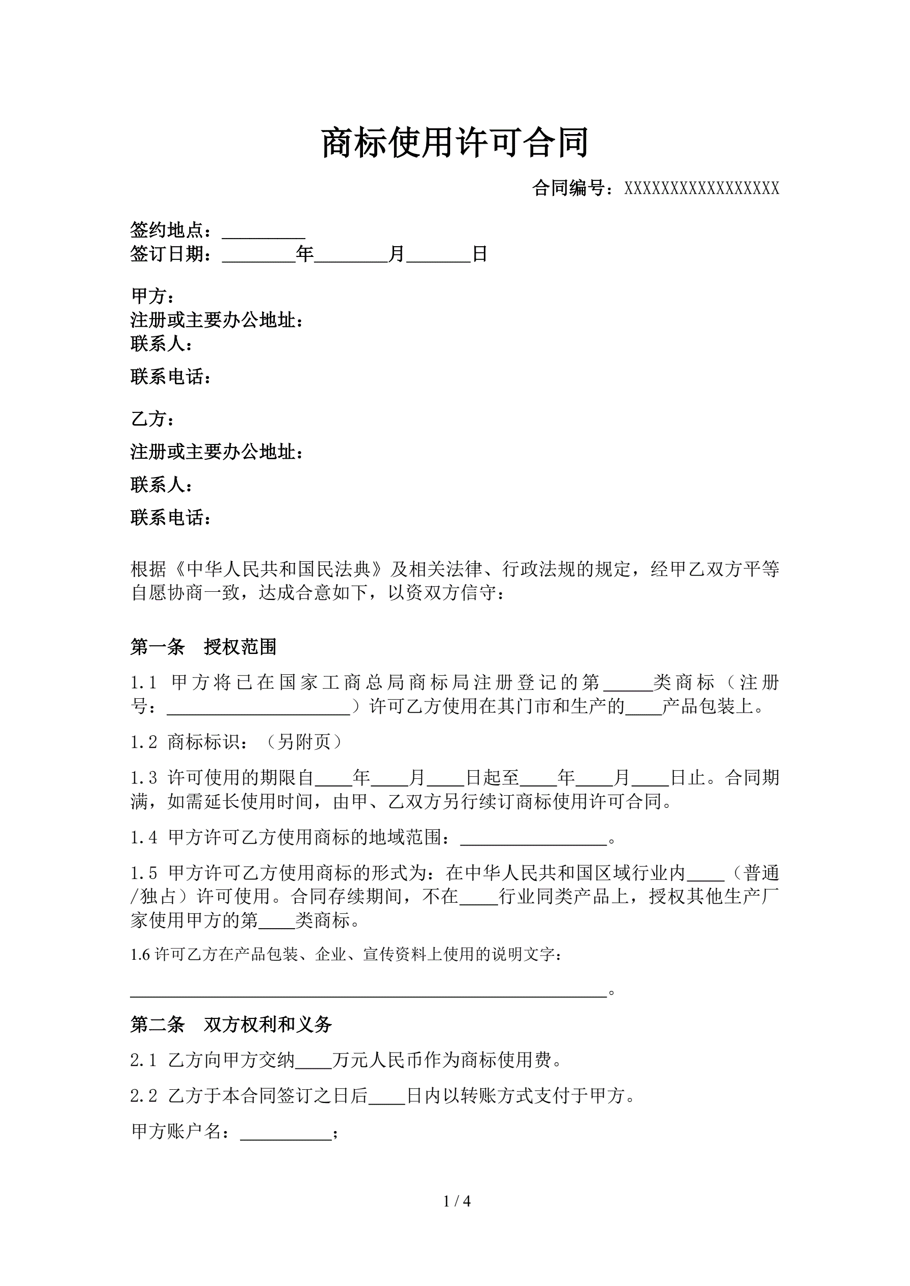>商标使用许可合同
