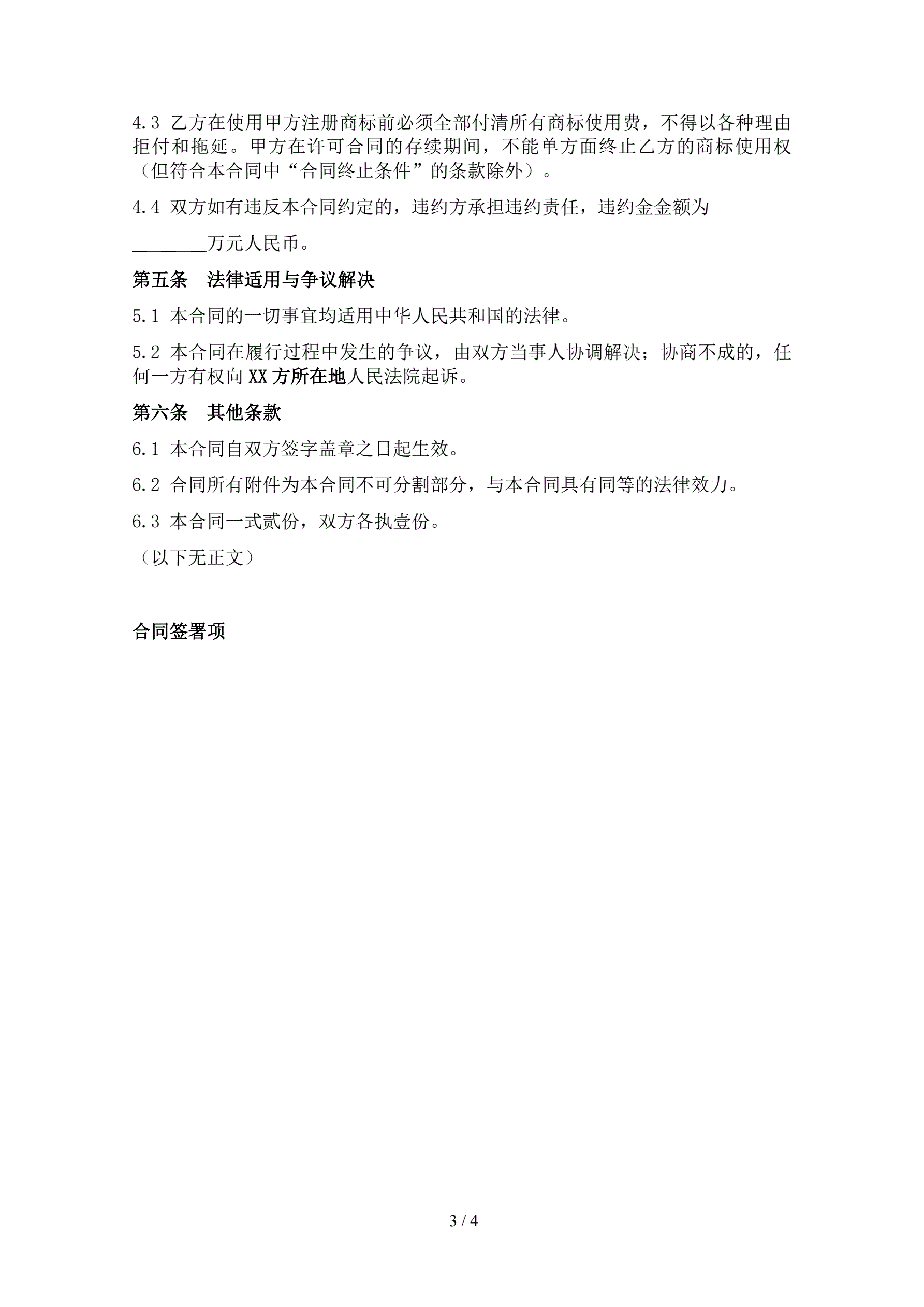 商标使用许可合同