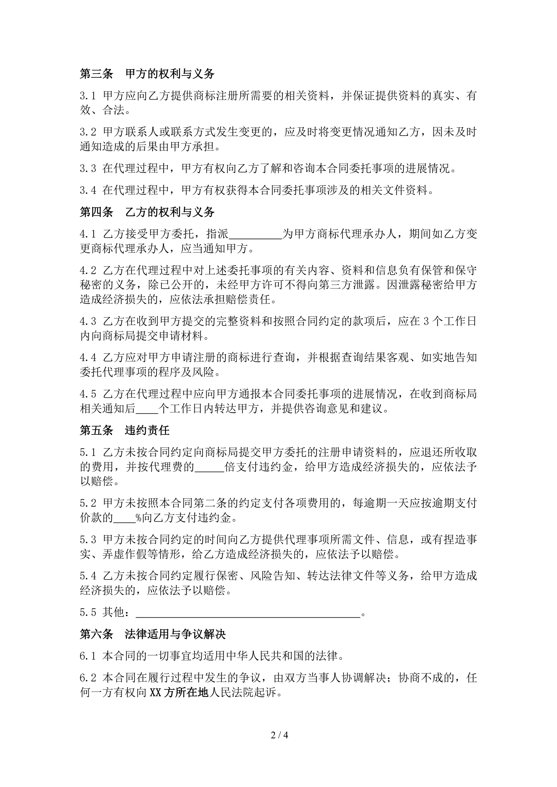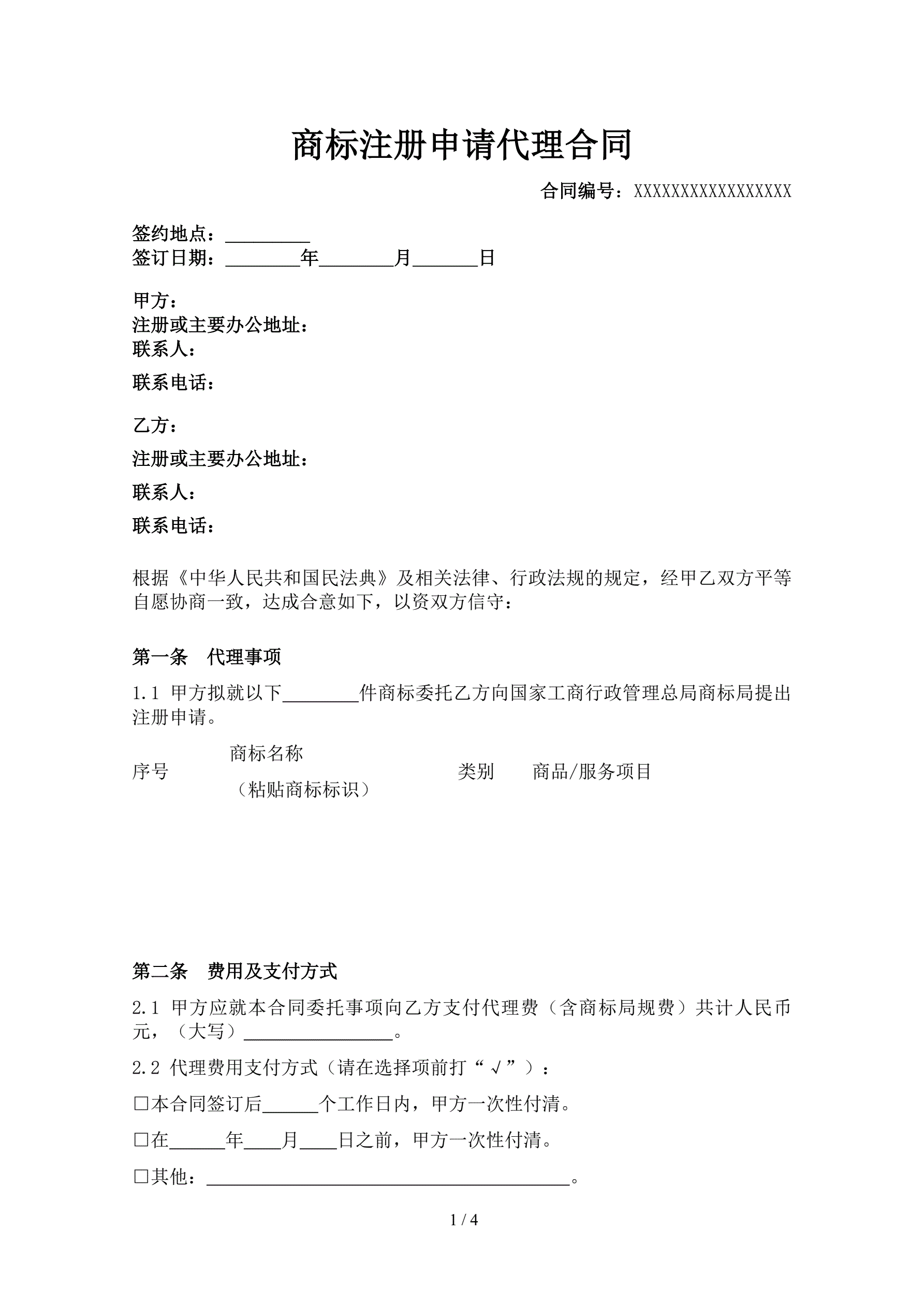 商标注册申请代理合同
