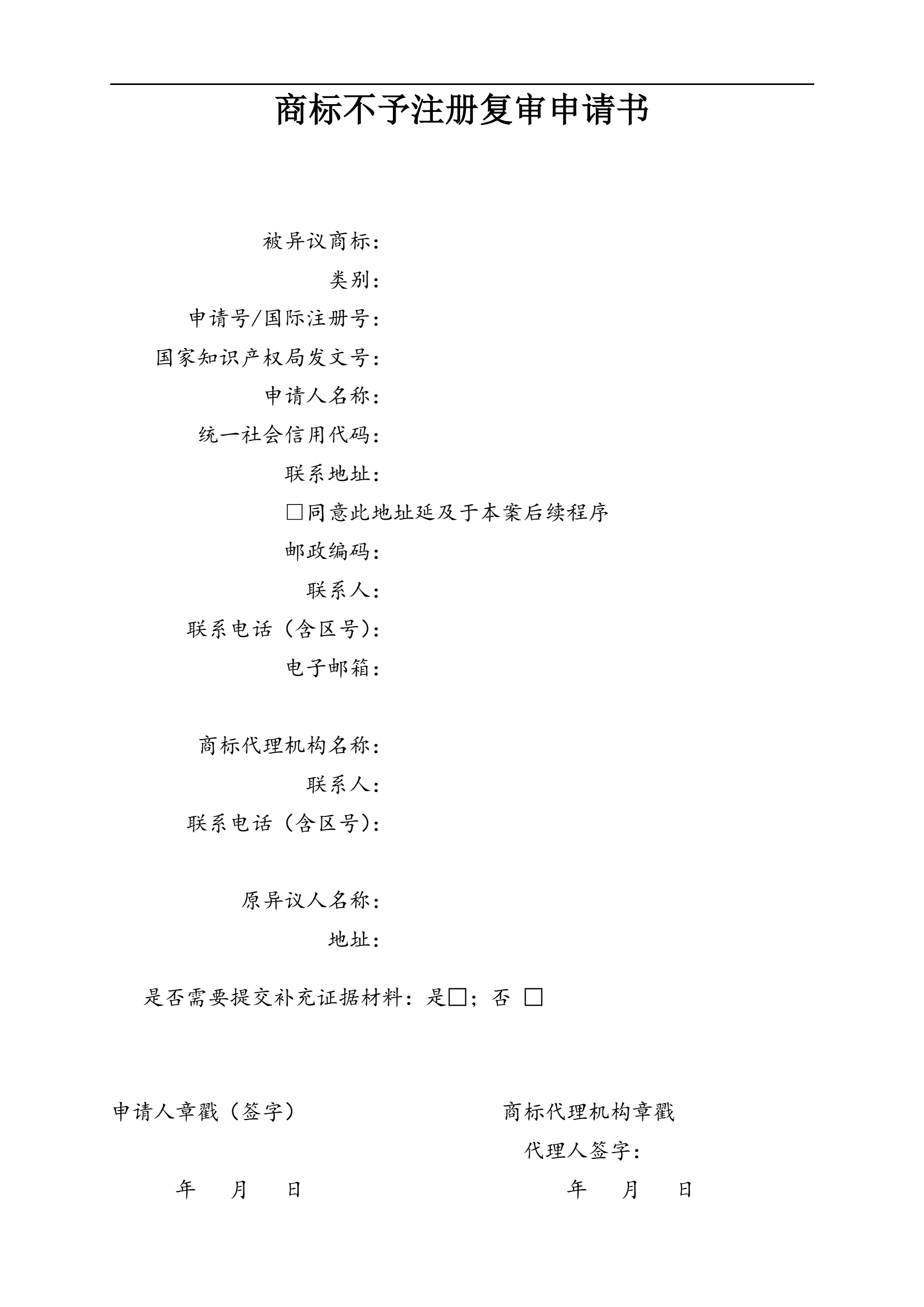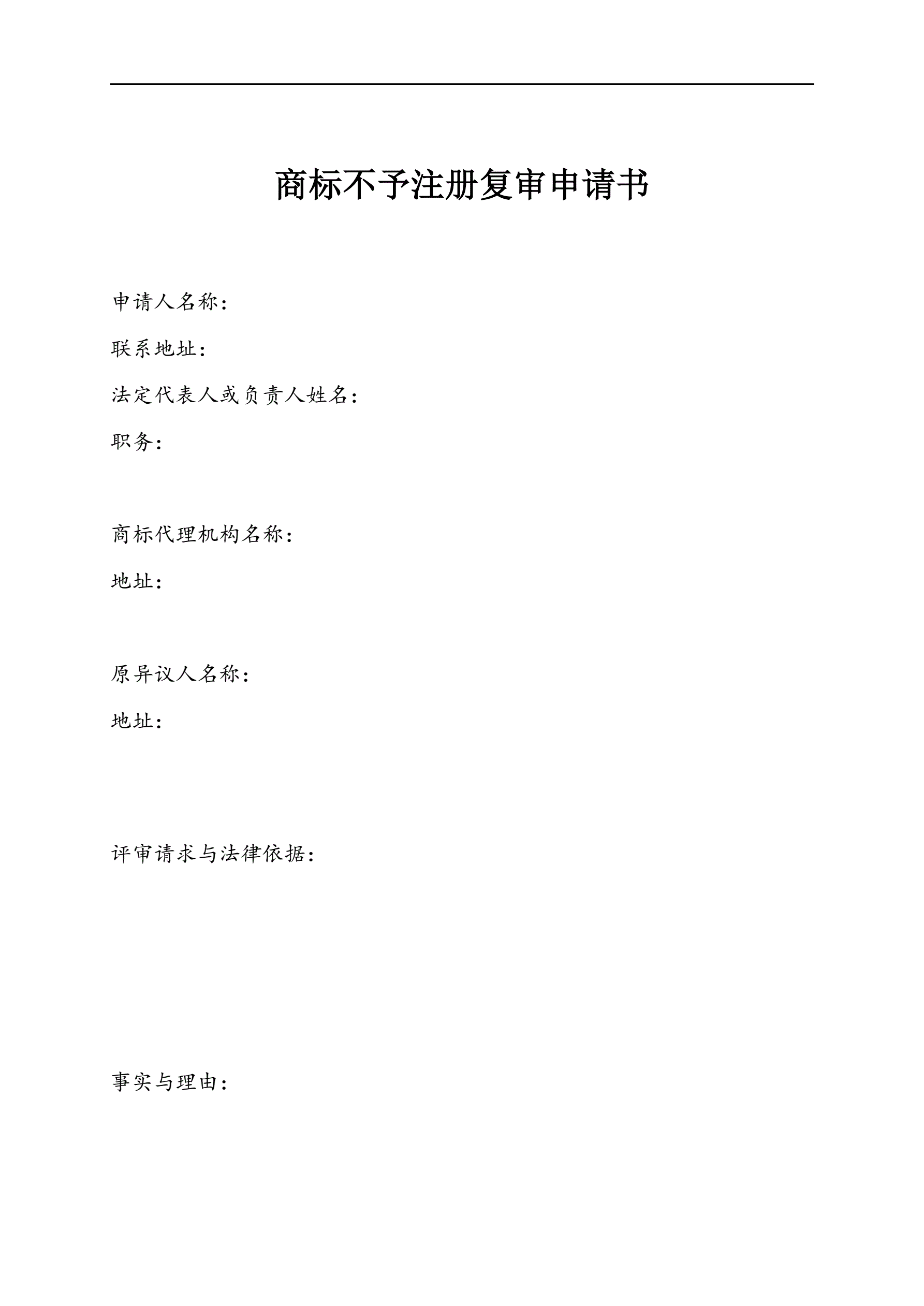 商标不予注册复审申请书(指导版)