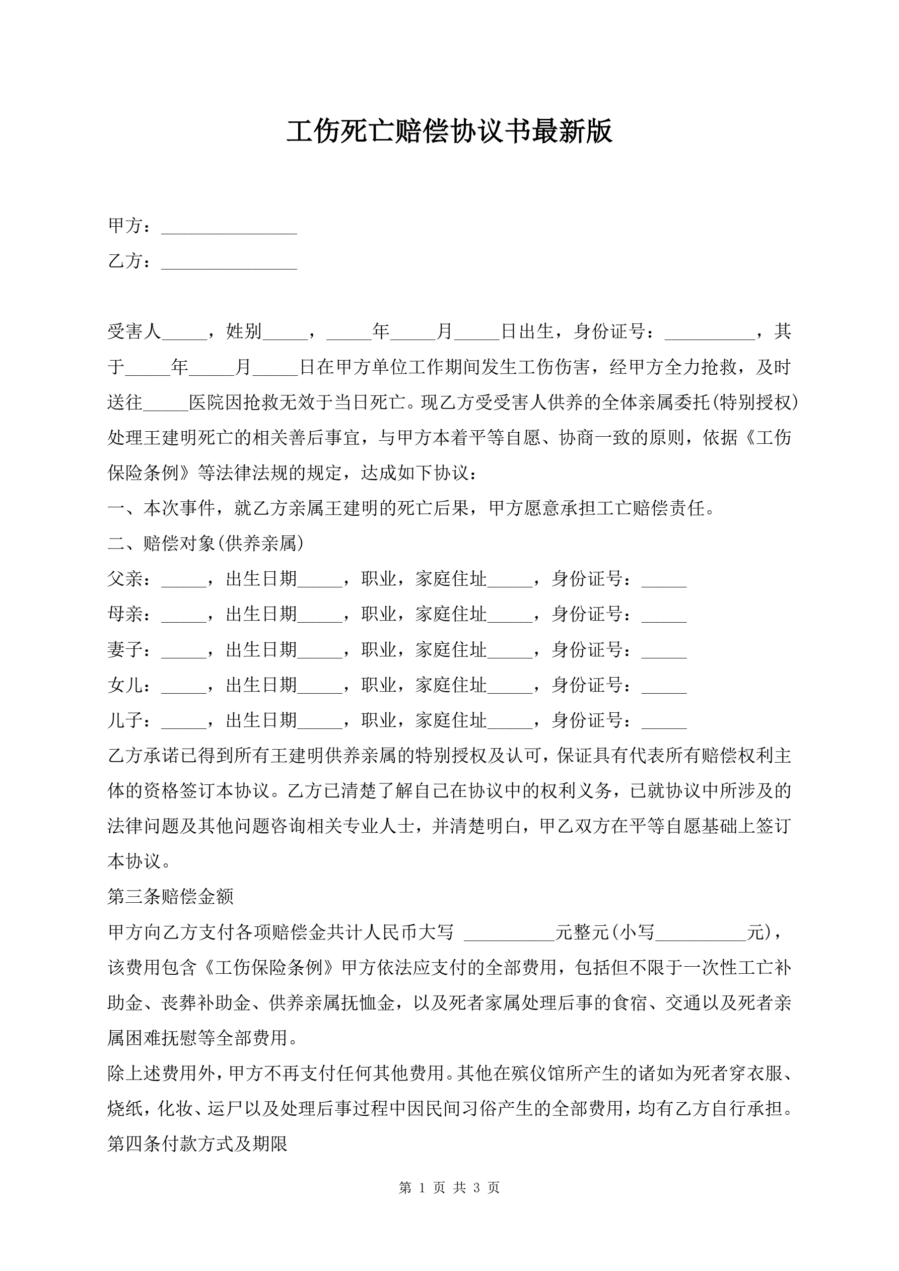 工伤死亡赔偿协议书最新版