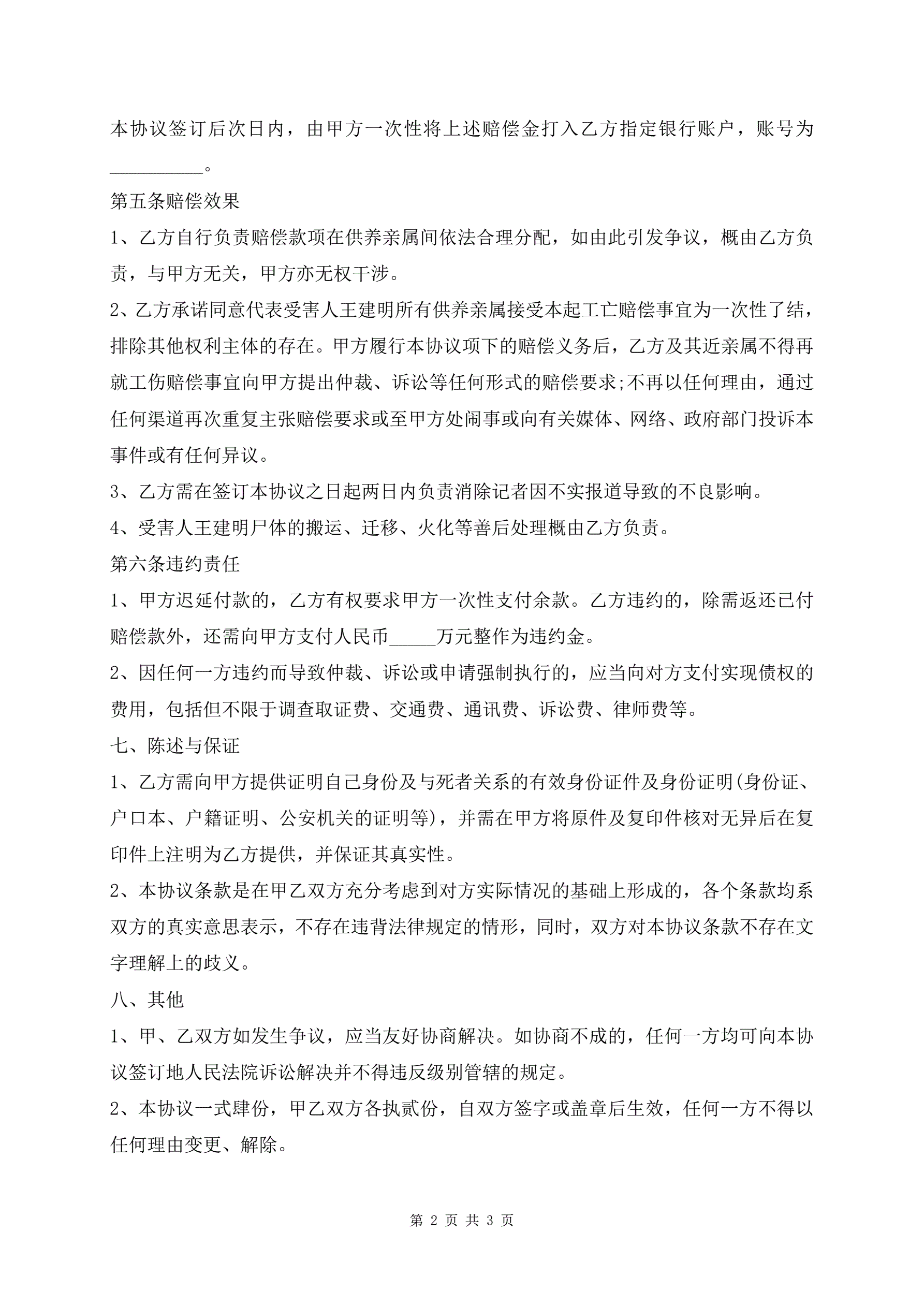 赔偿协议