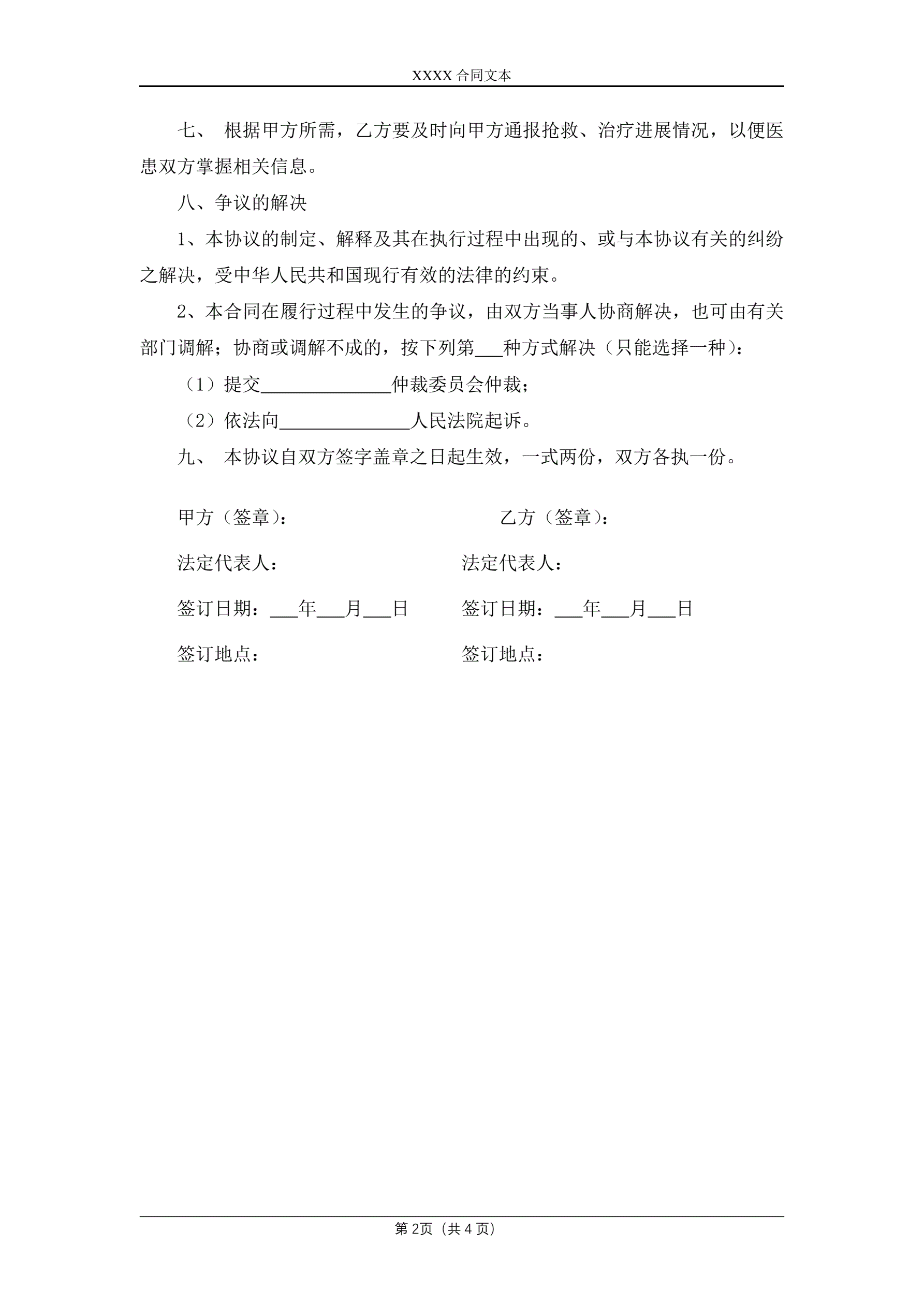 >医疗服务协议(职工定点)