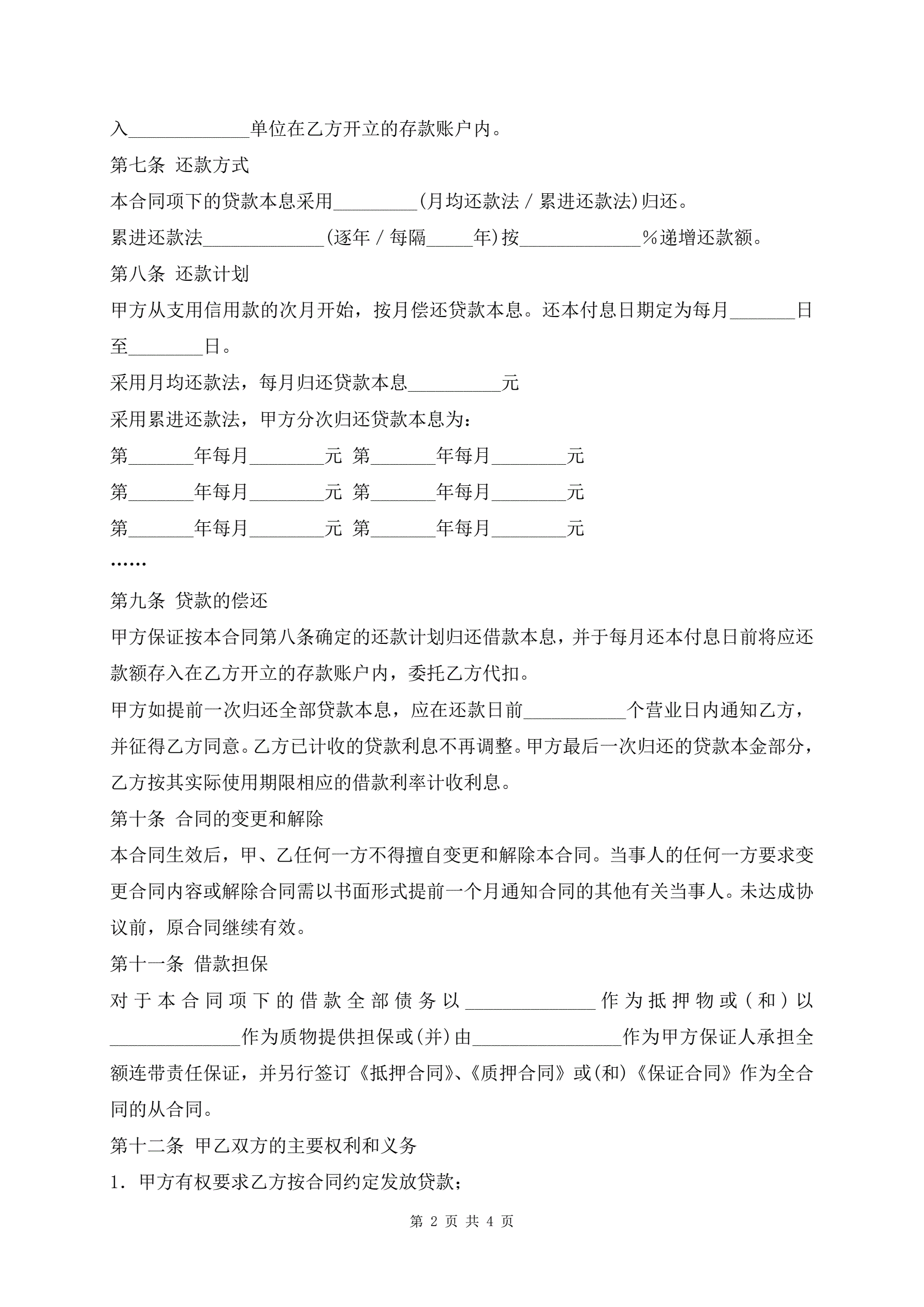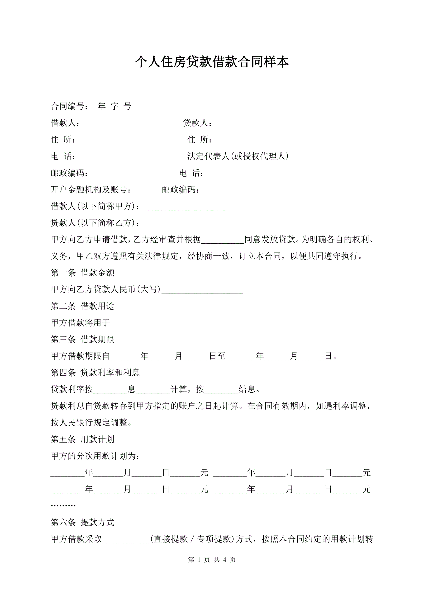 个人住房贷款借款合同样本