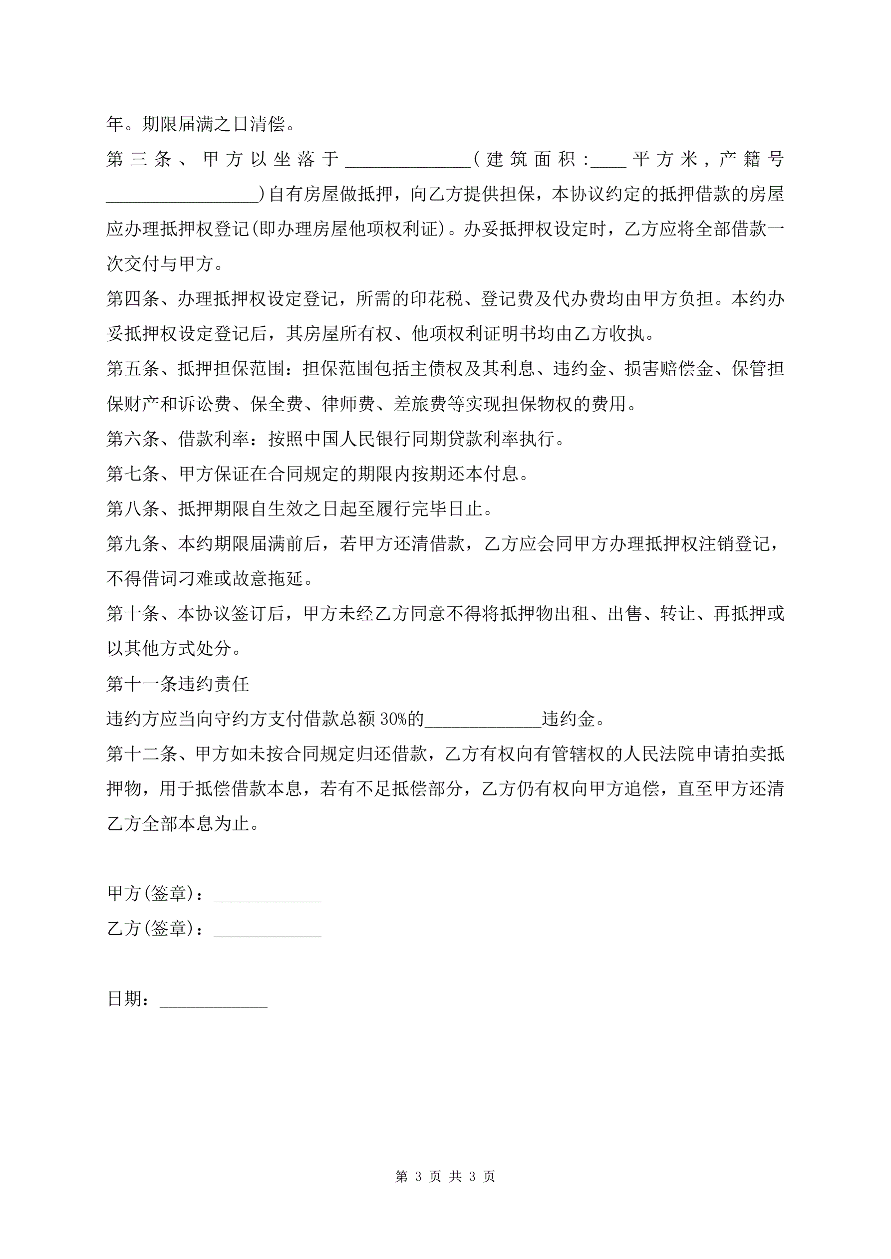 >最新房屋抵押借款协议书范本