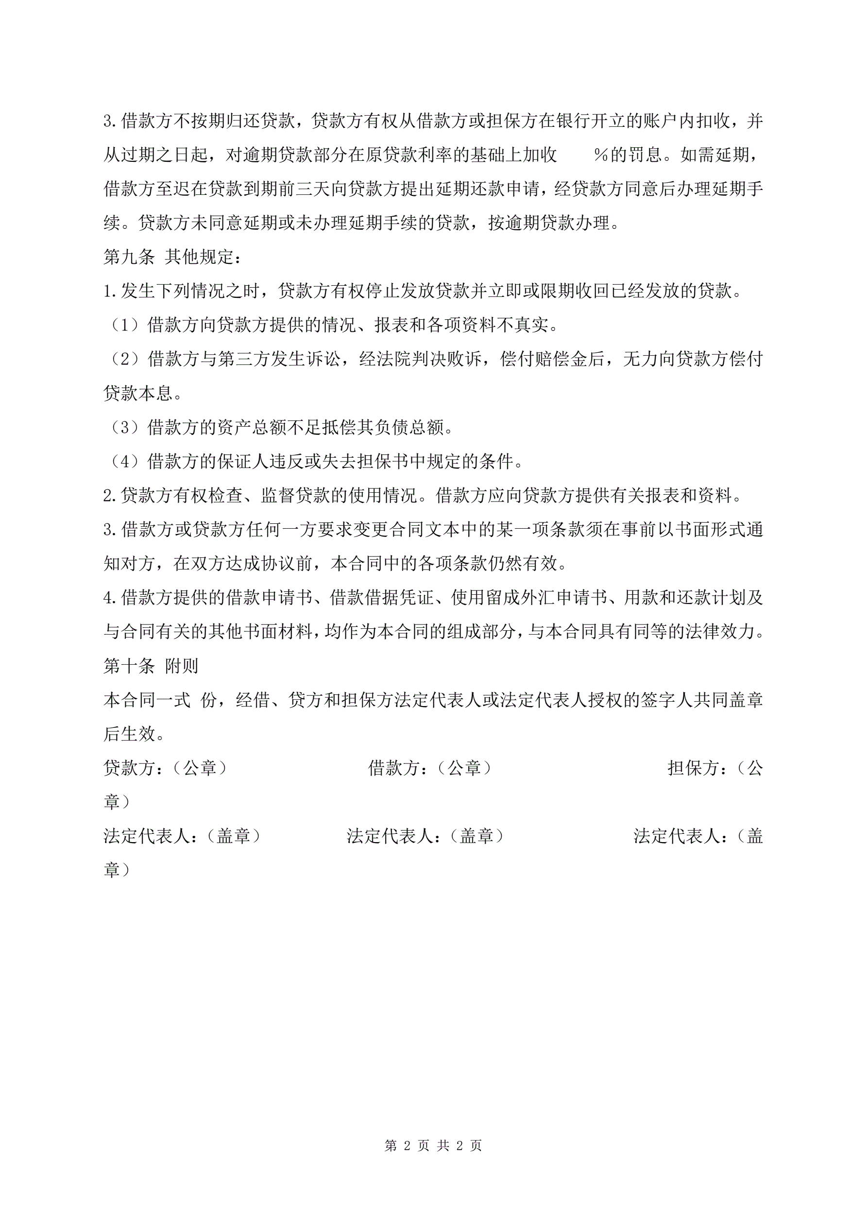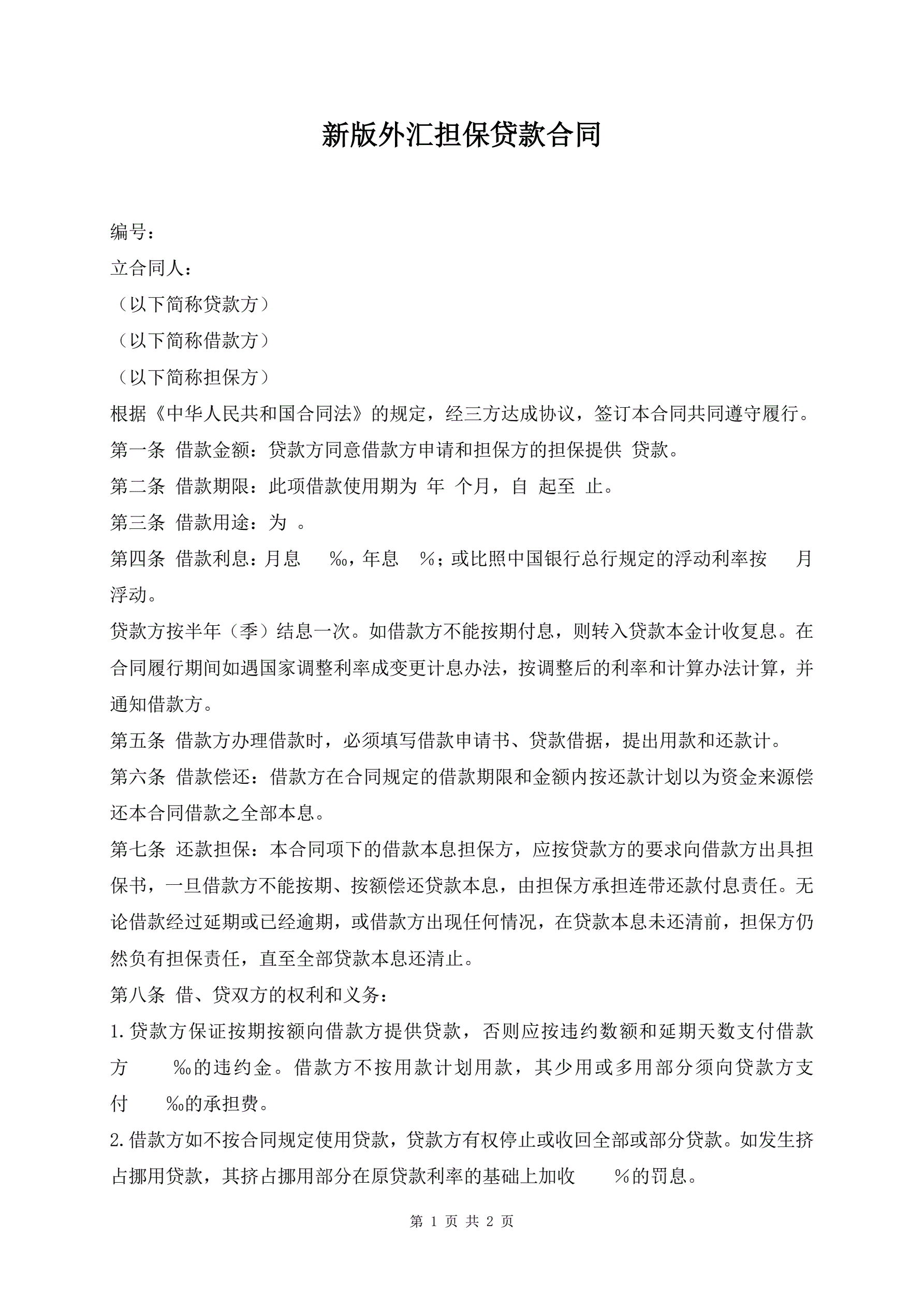 >新版外汇担保贷款合同
