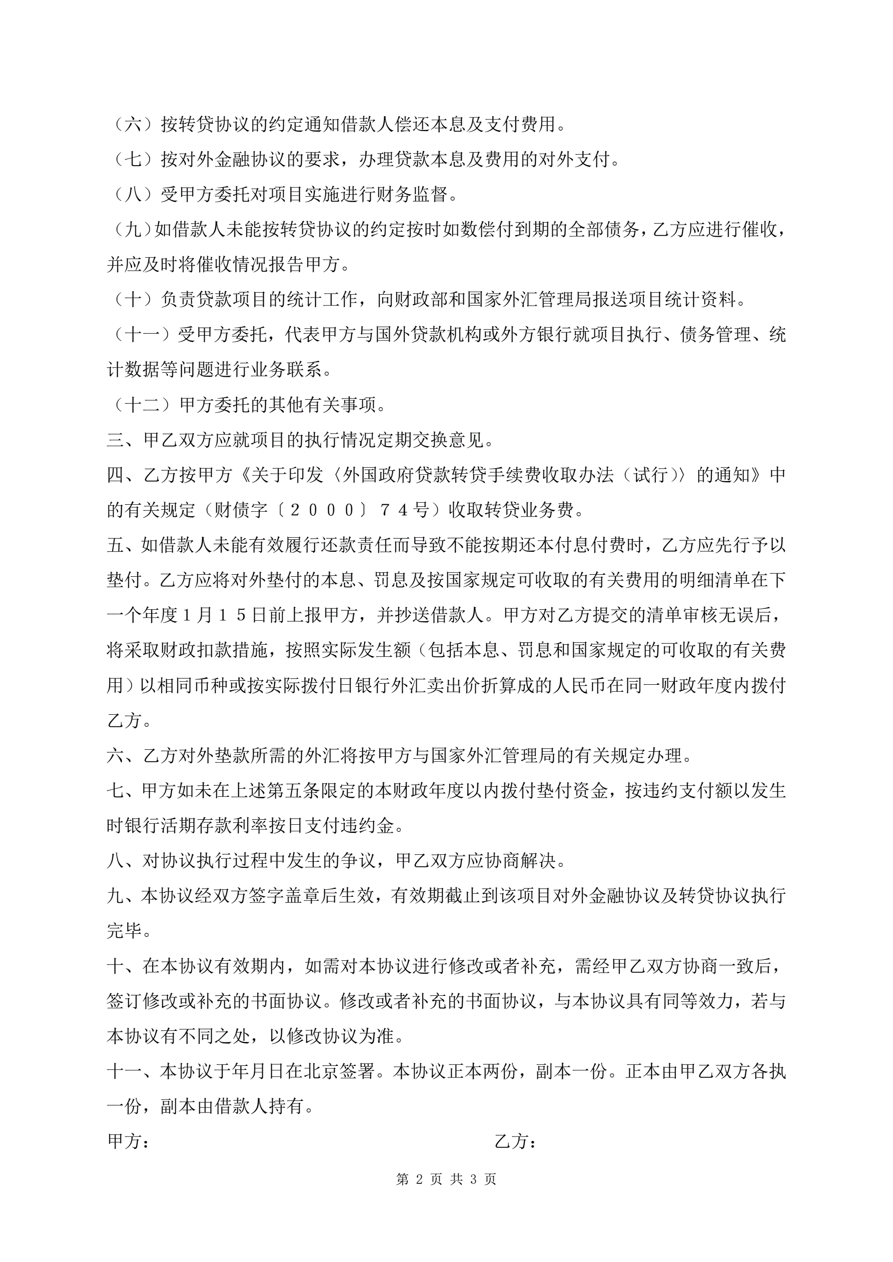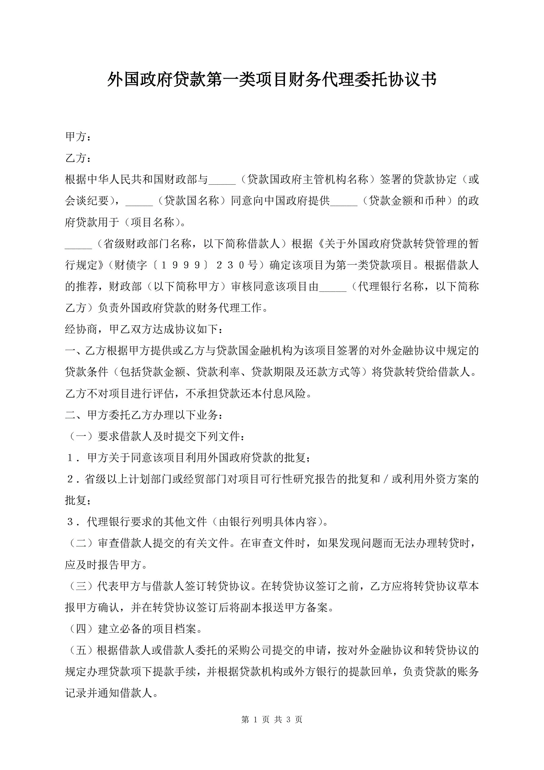 >外国政府贷款第一类项目财务代理委托协议书