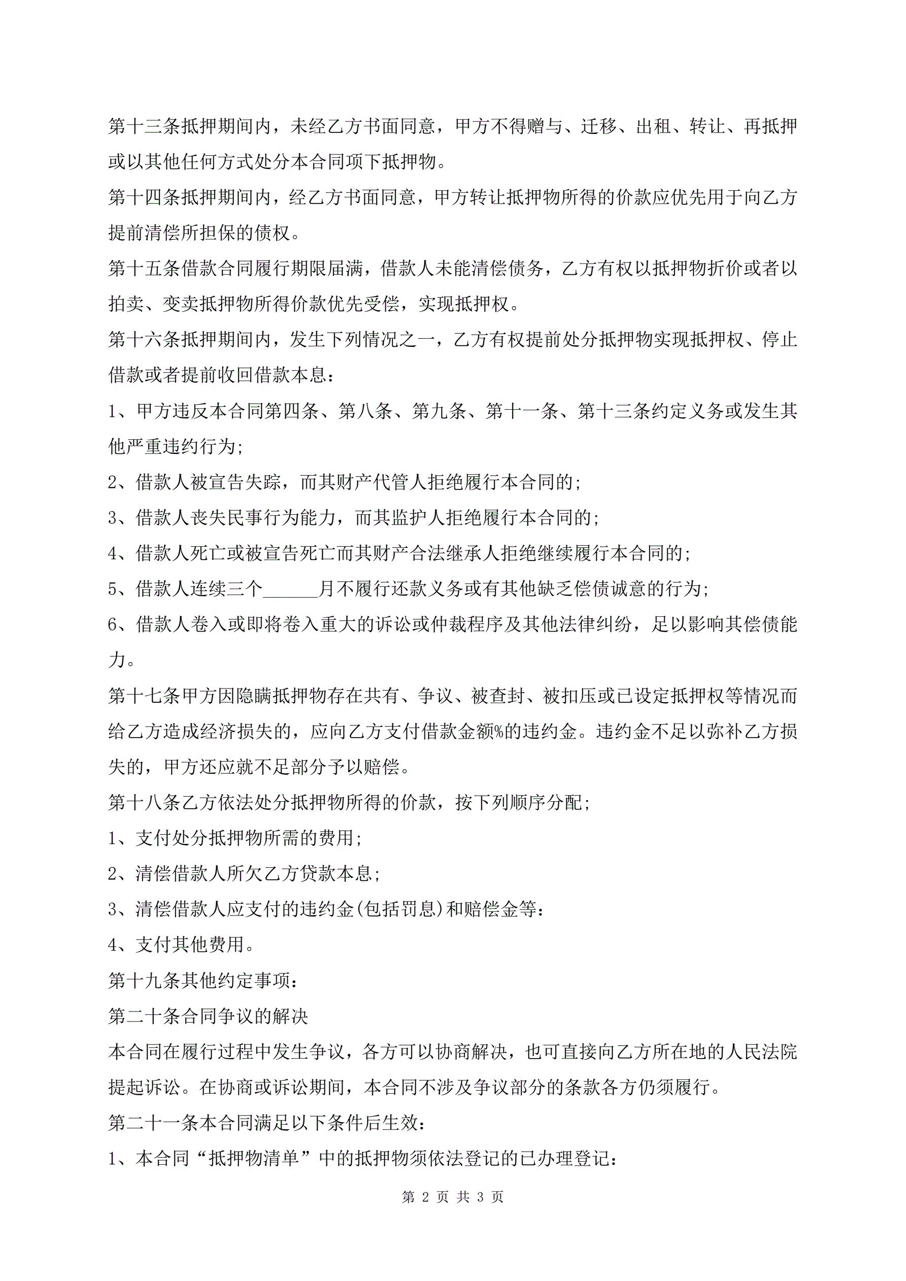 抵押借款合同范本(下载版)