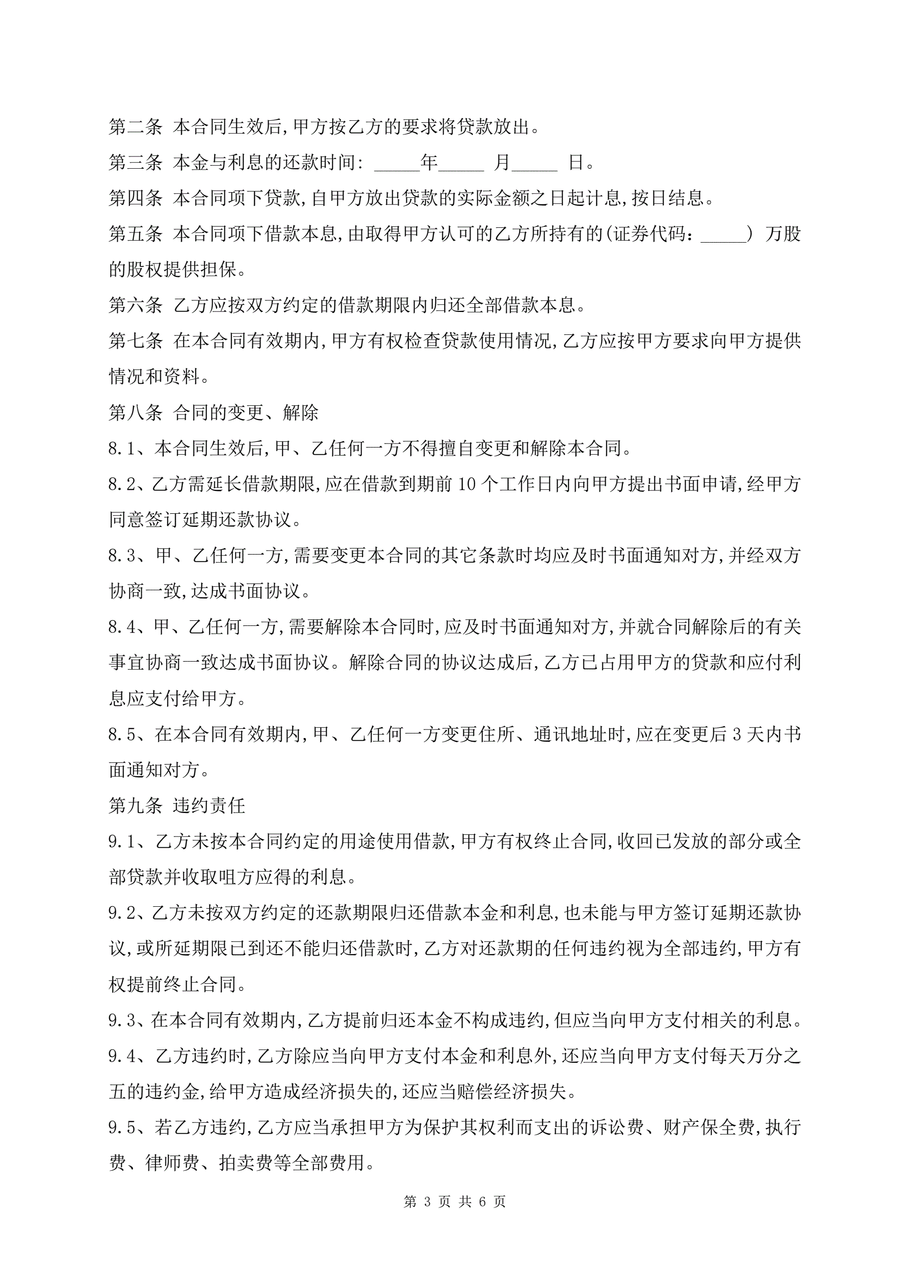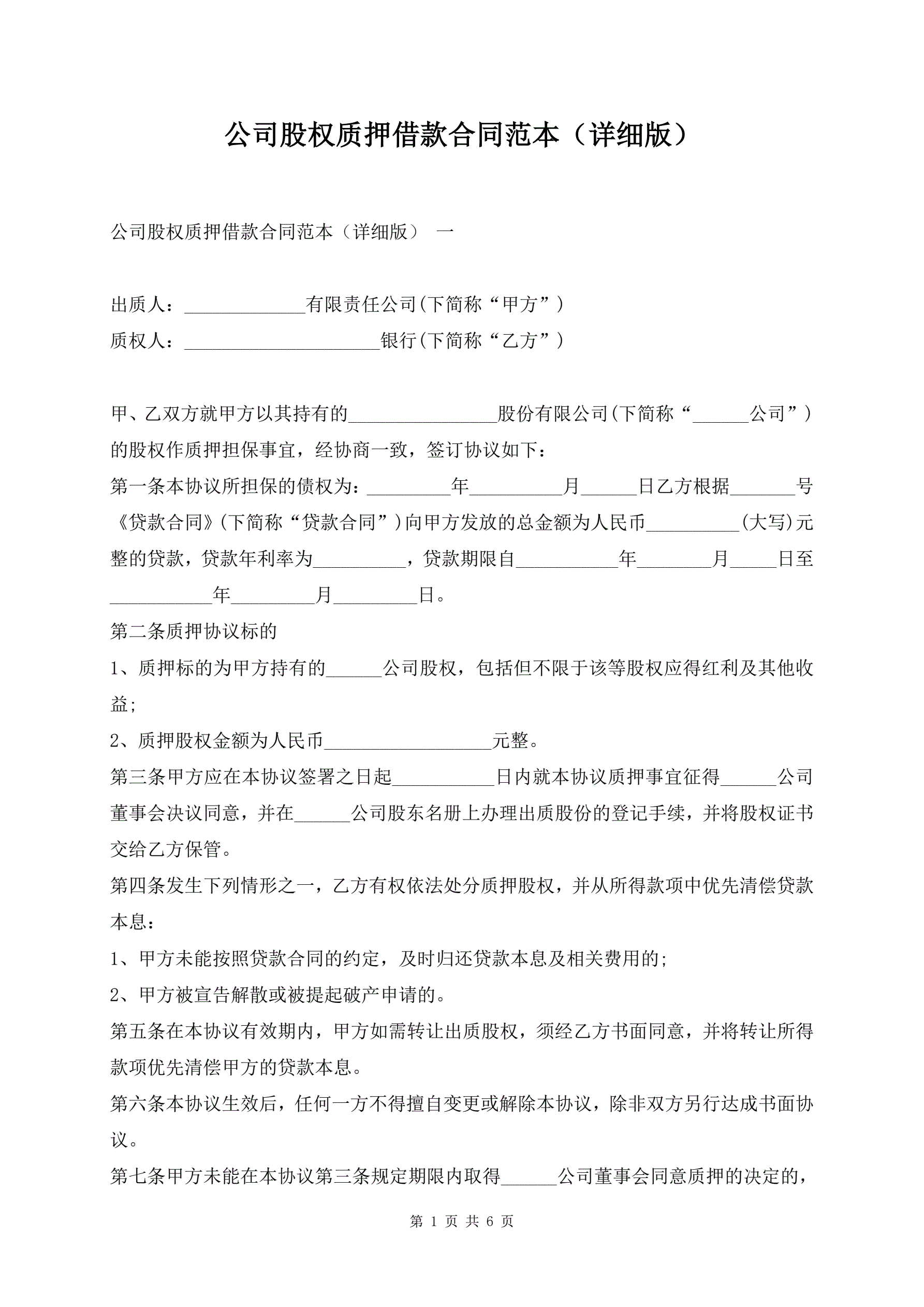 公司股权质押借款合同范本(详细版)