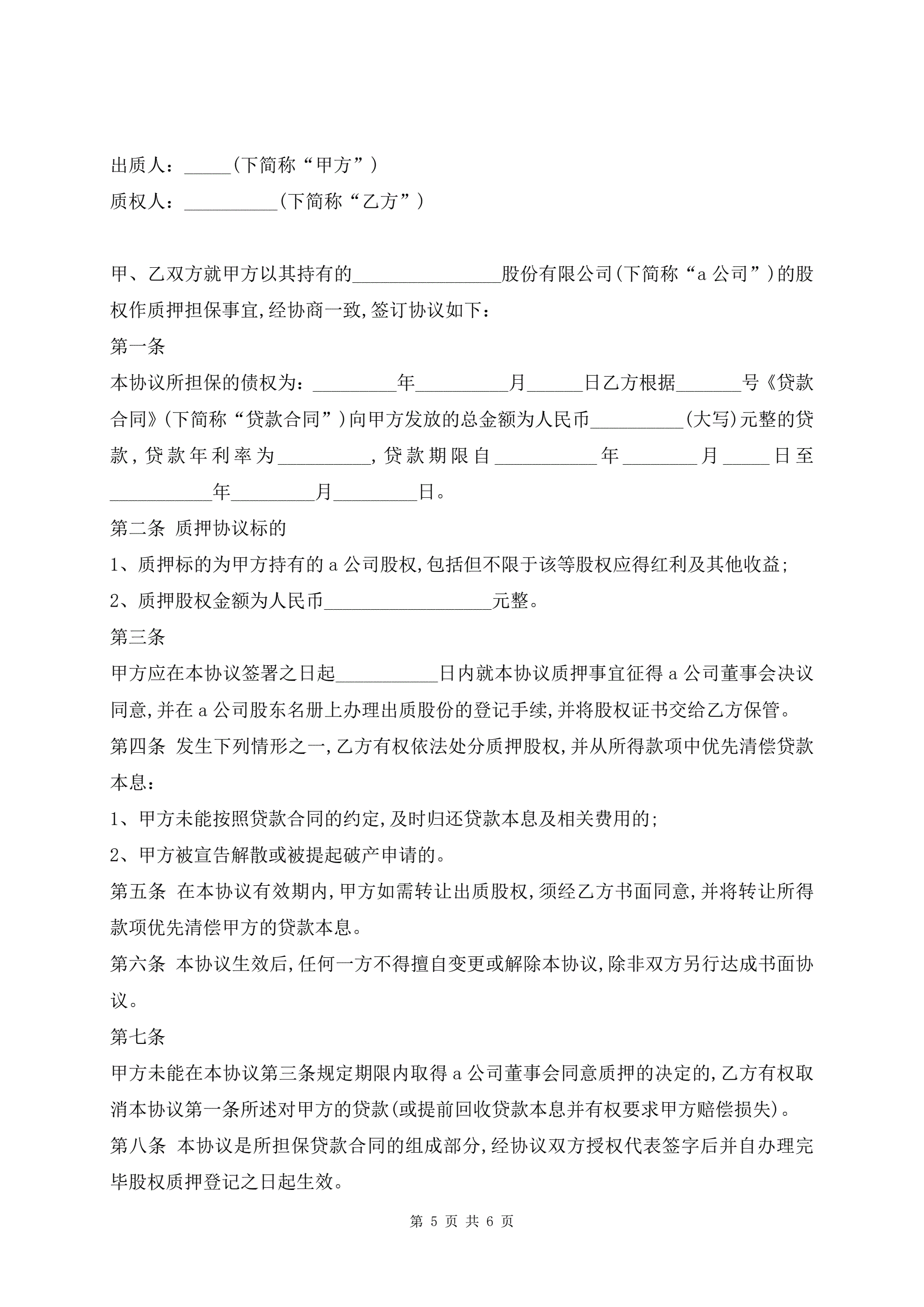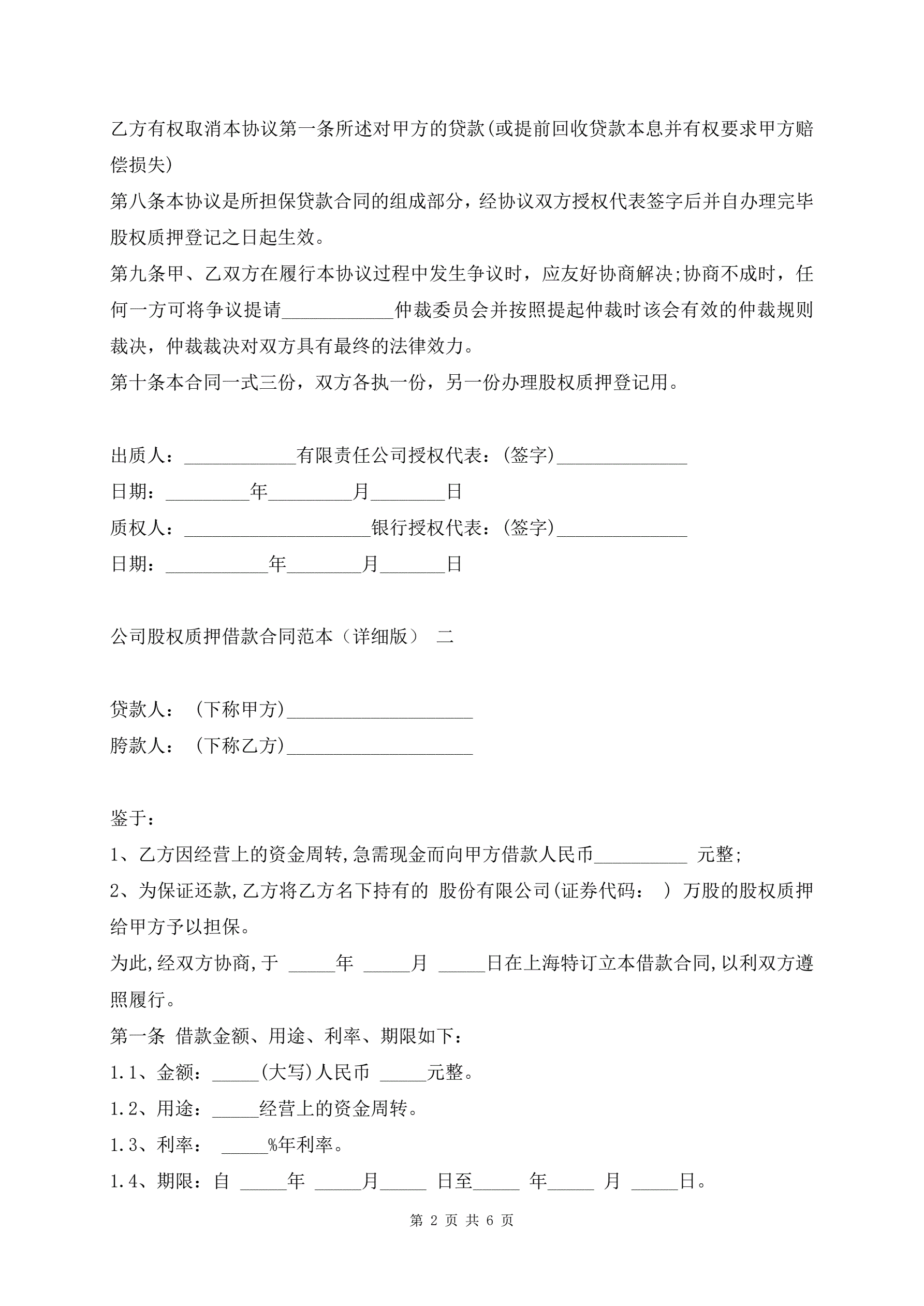 >公司股权质押借款合同范本(详细版)