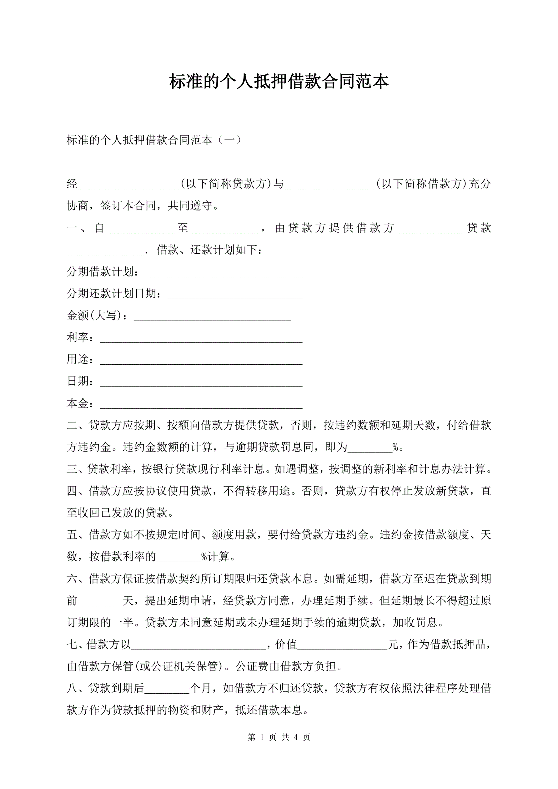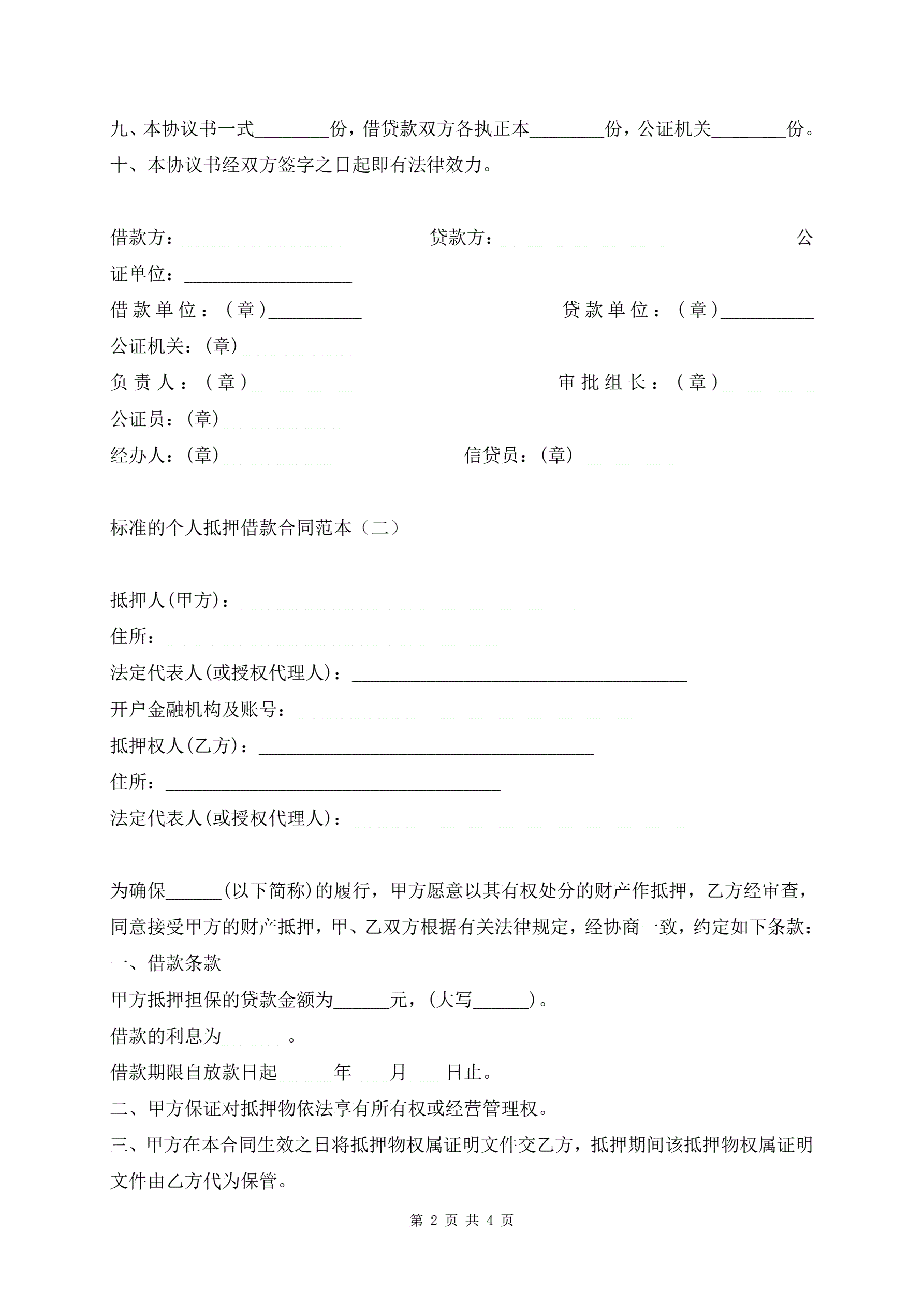 标准的个人抵押借款合同范本