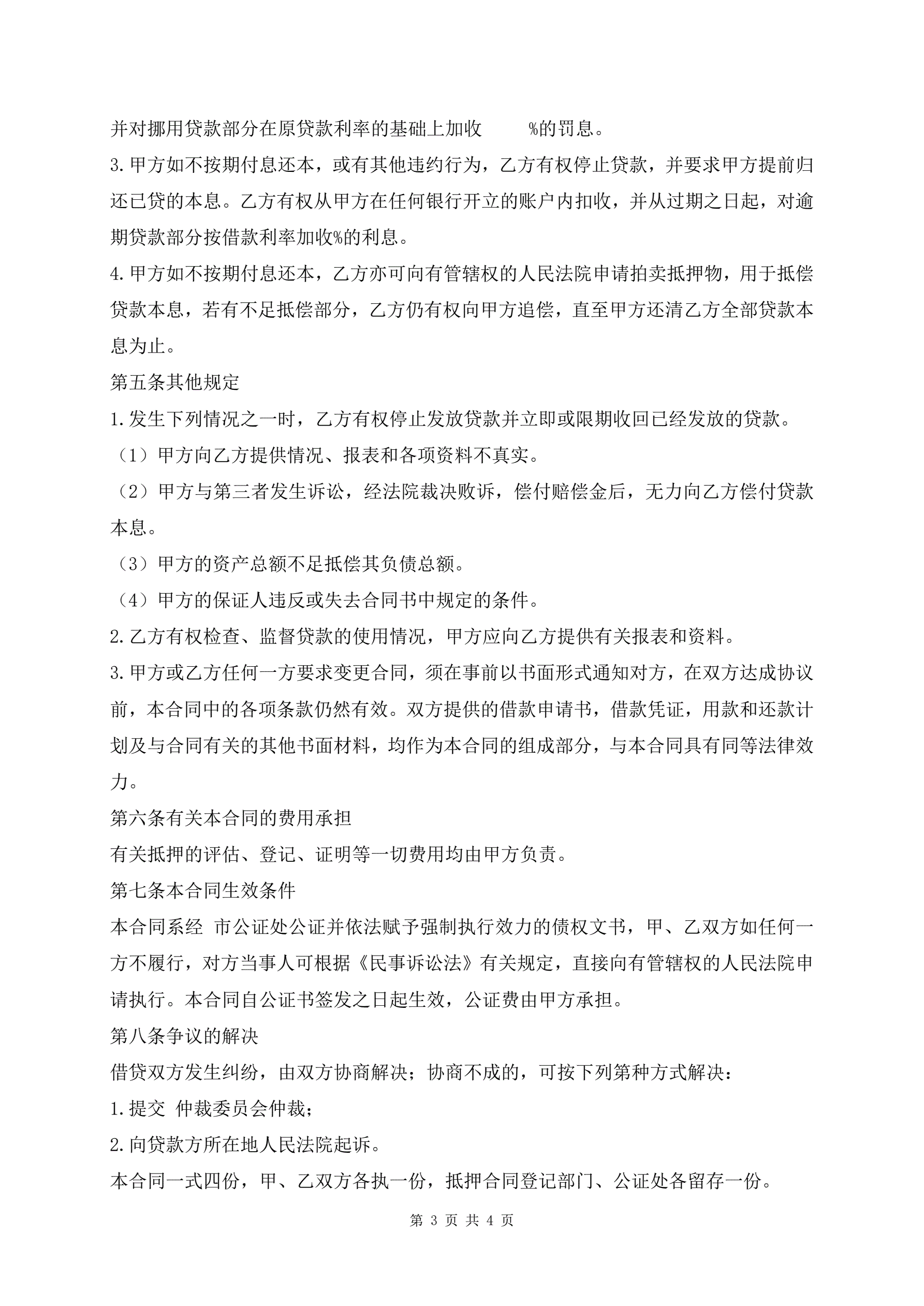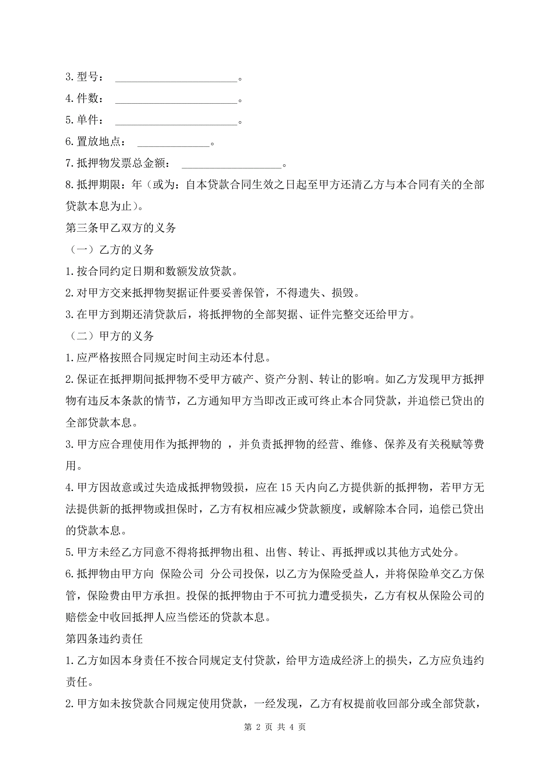最新版质押担保贷款合同